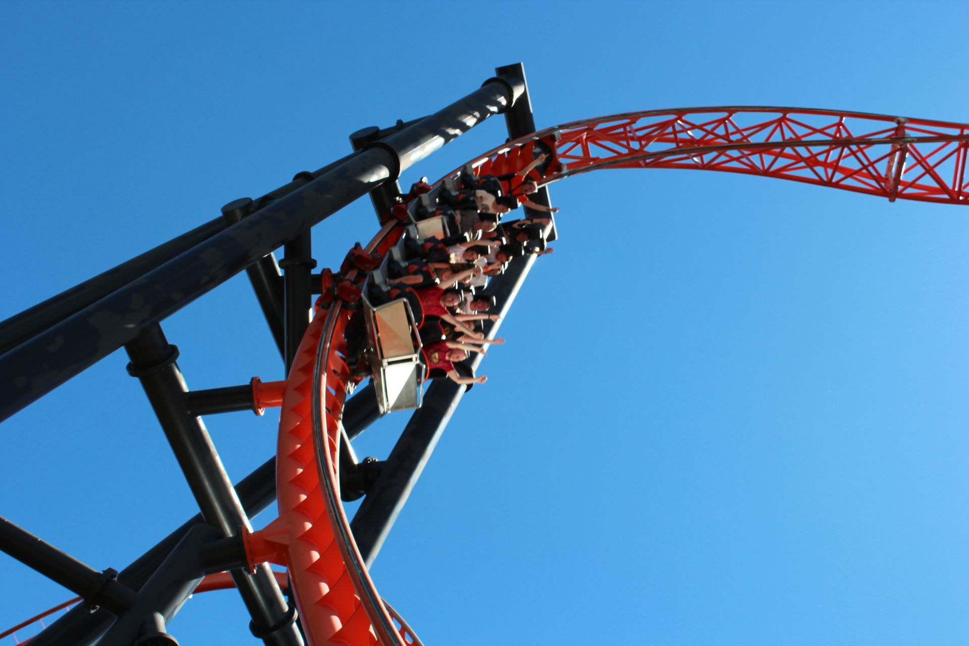 Inversion macht das ganze noch umso spaßiger. Danach die Abfahrt, welche einen auf 105 km/h beschleunigt und die darauffolgende Wende die einen direkt in den nächsten