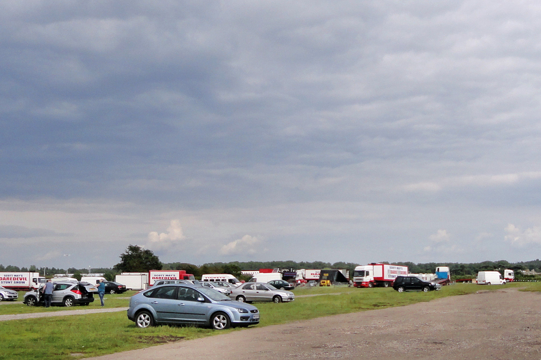 Der Park ist recht unscheinbar und hätte ich nicht vorher schon mehrere Karten betrachtet, wären wir an ihm wohl vorbei gegangen. Hinzu kommt noch, dass der Park sich den Parkplatz mit einem Flugmuseum teilt. Außerdem baute auf dem Parkplatz gerade noch eine reisende „Daredevil Stunt Show“ auf, die ab dem morgigen Tag hier auftreten wollte, auf.