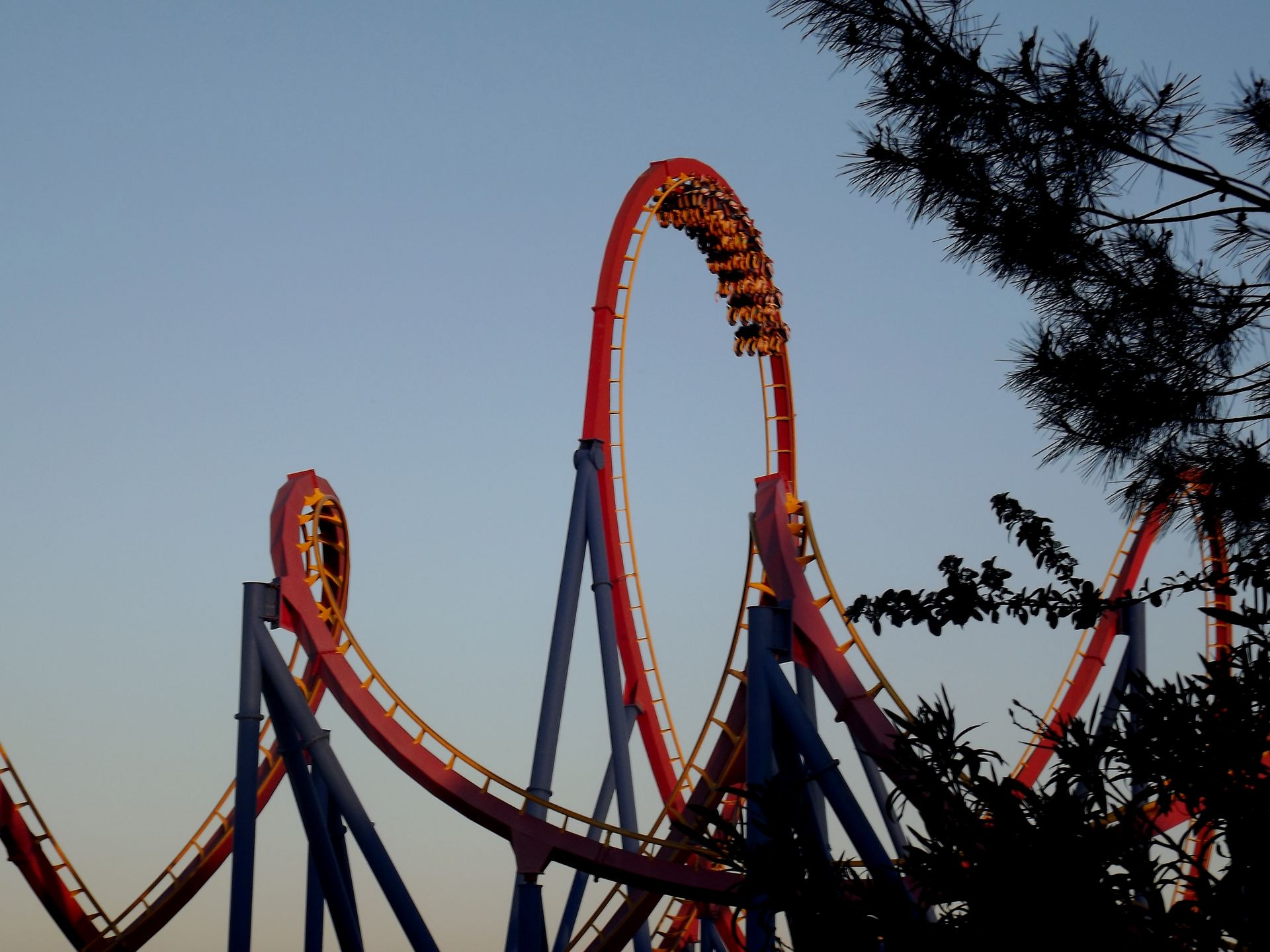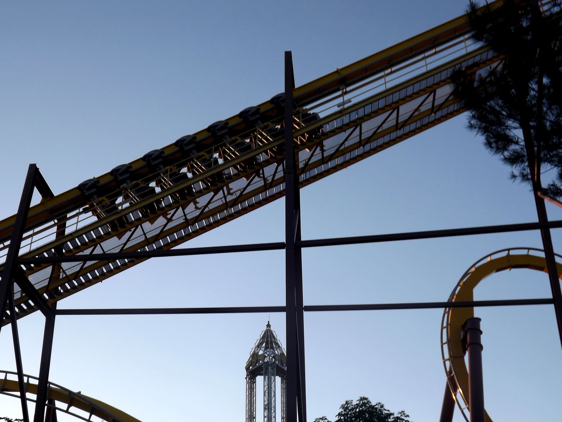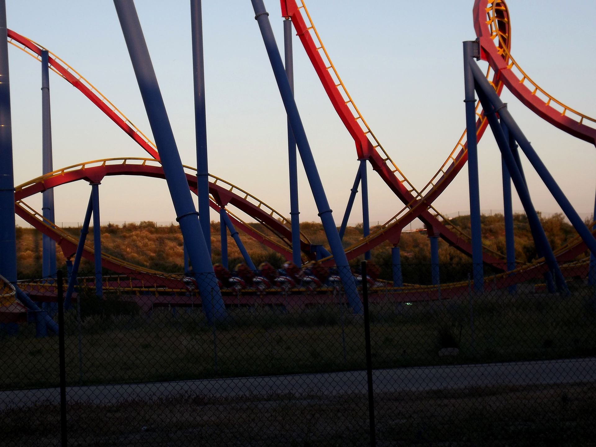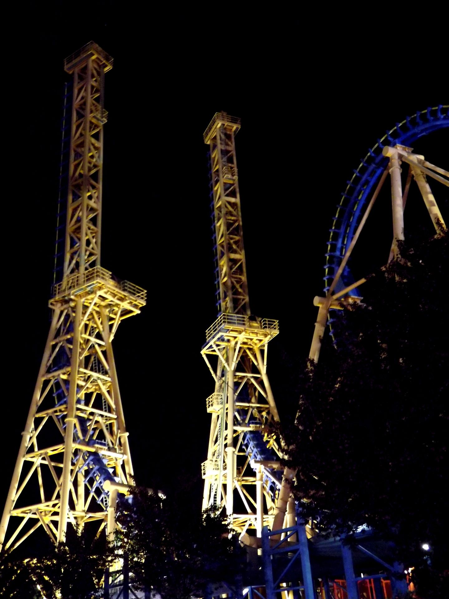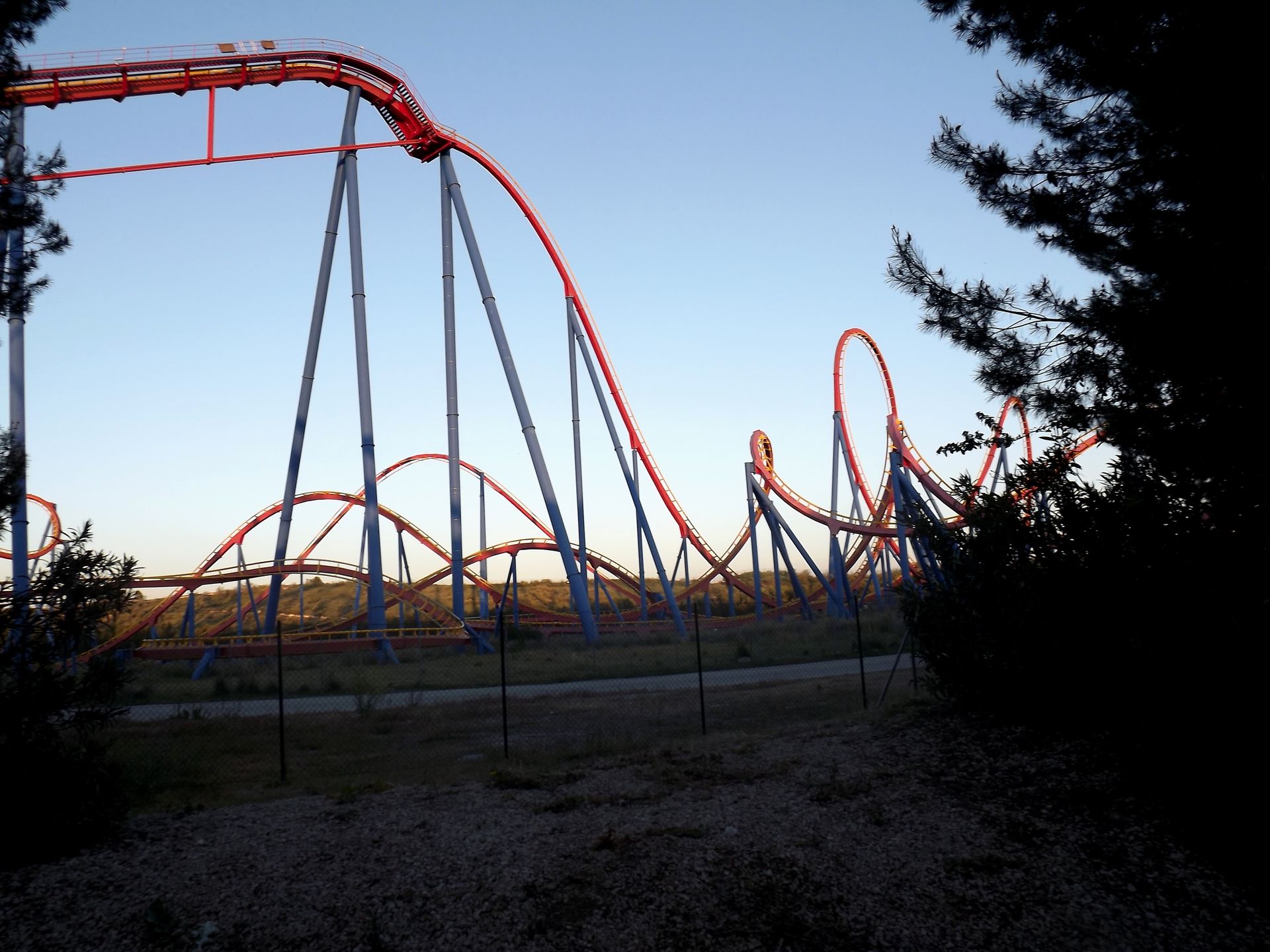 Es wird dunkel im Parque Warner! Die meisten anderen haben den Park ja schon gegen 19 Uhr verlassen, nur der harte Kern blieb bis Ende um 23 Uhr!