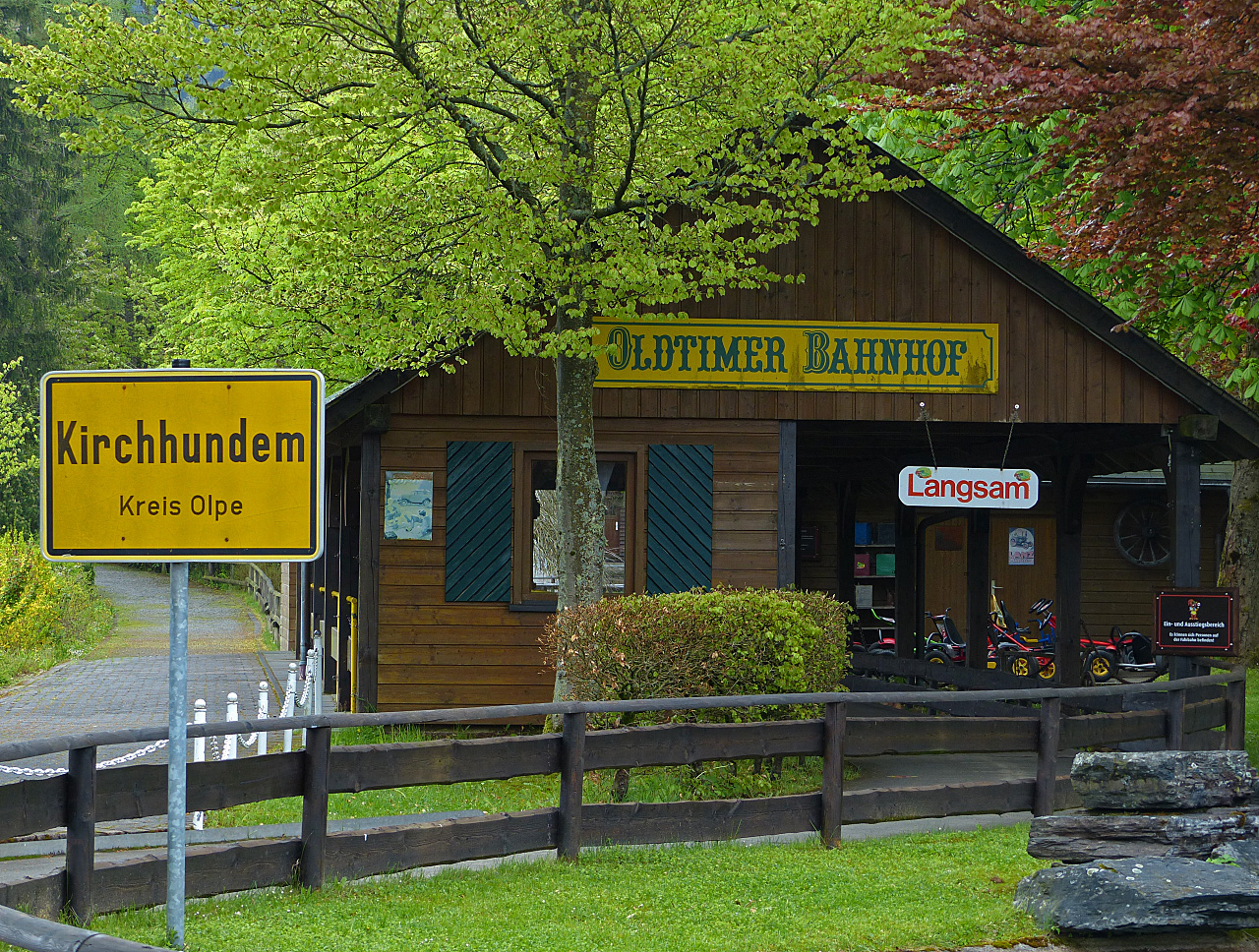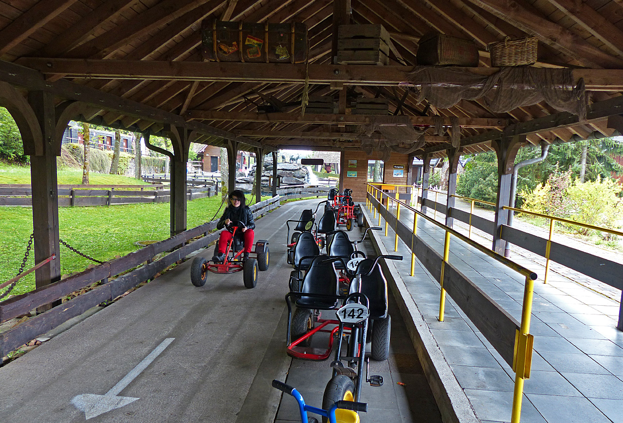 Blick auf die Station der GoKart-Bahn. Die Idee mit den Ortschildern finde ich ganz nett.