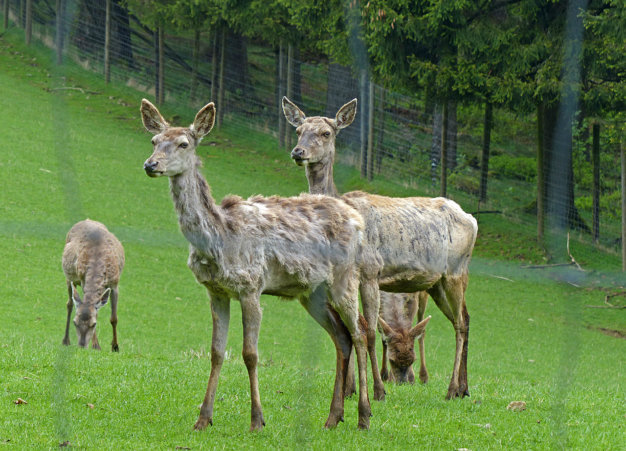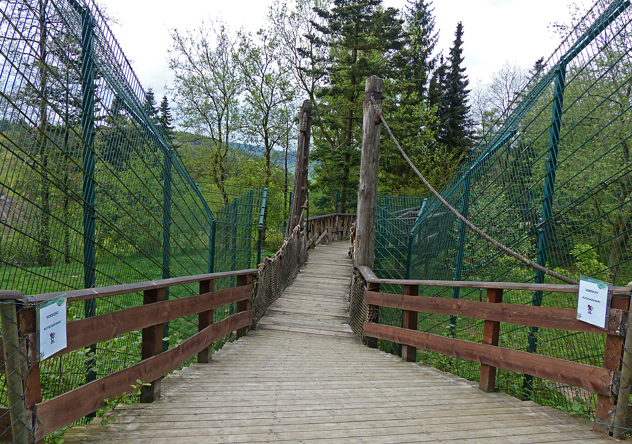 Die Tiere scheinen schon so umerzogen zu sein, dass sie tagsüber gar nicht mehr im eigentlichen Gehege unterwegs sind. Zumindest die nette Holzbrücke über das Gelande wird dann irgendwie überflüssig. Naja, immerhin konnten wir die hübschen Tiere so in direkter Nähe betrachten.