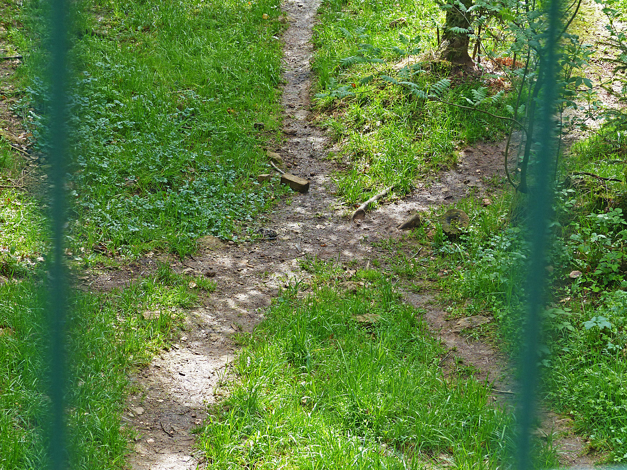 Blick in den Waschbörbereich. Leider ist an zahlreichen Stellen der E-Zaun deftekt und gibt Geräusche von sich (oder ist das richtig so?).