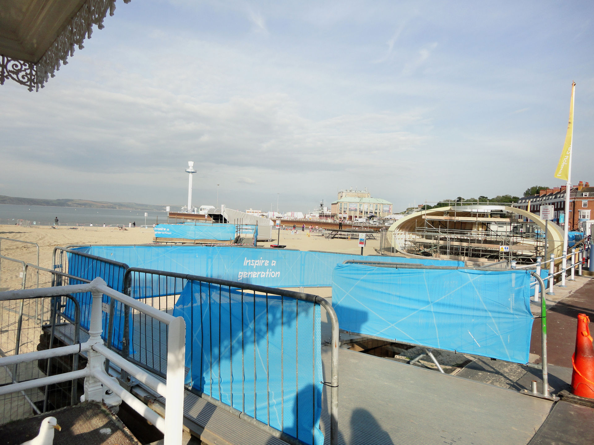 Paar Meter weiter fanden dann am Strand große Aufbau-Arbeiten für die Bühnen und Zuschauerbereiche der Spiele statt.