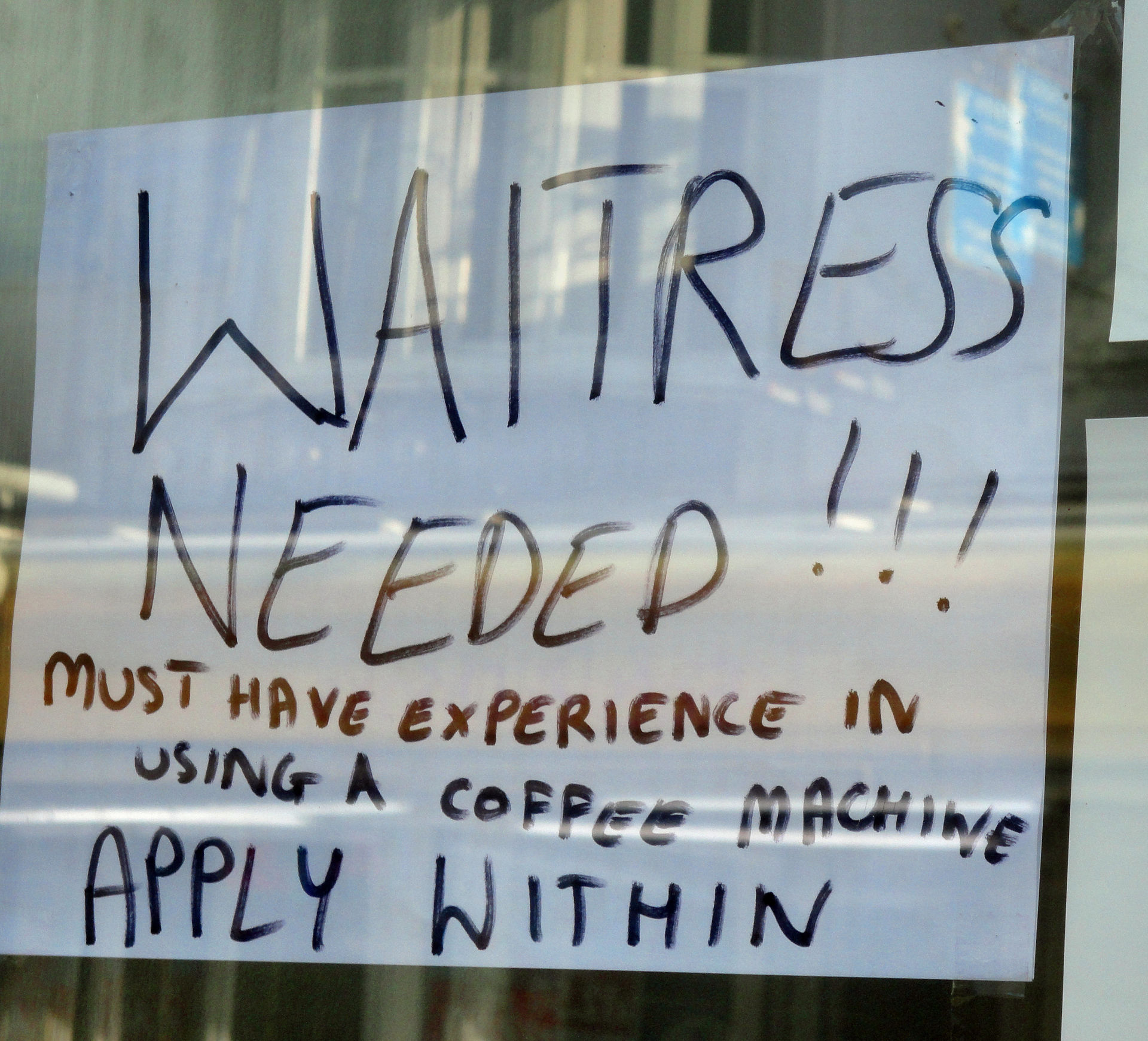 In den Geschäften wird übrigens Fachpersonal gesucht.