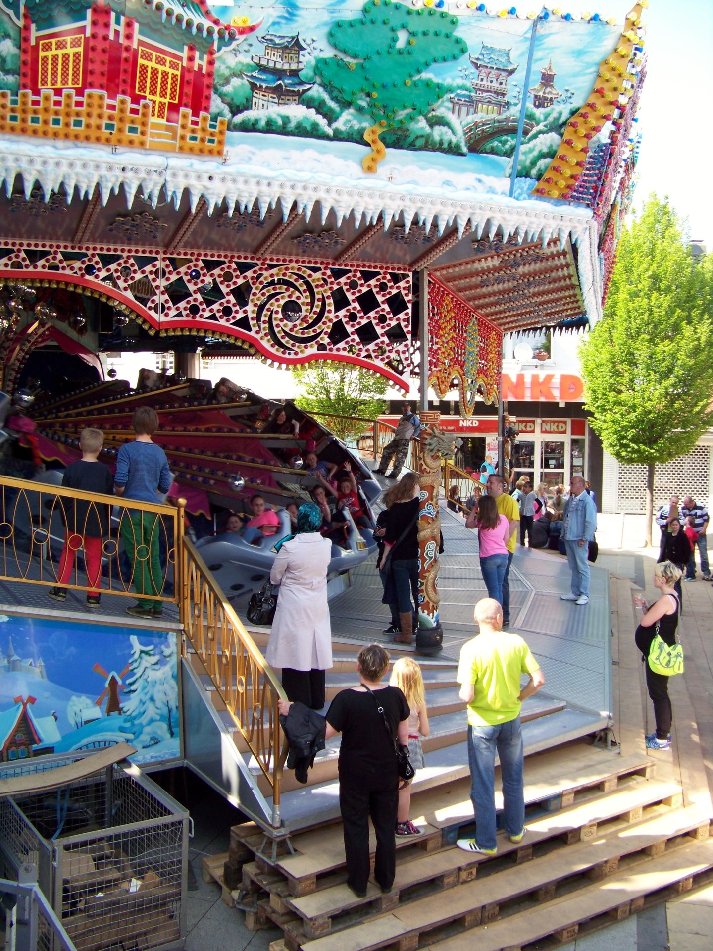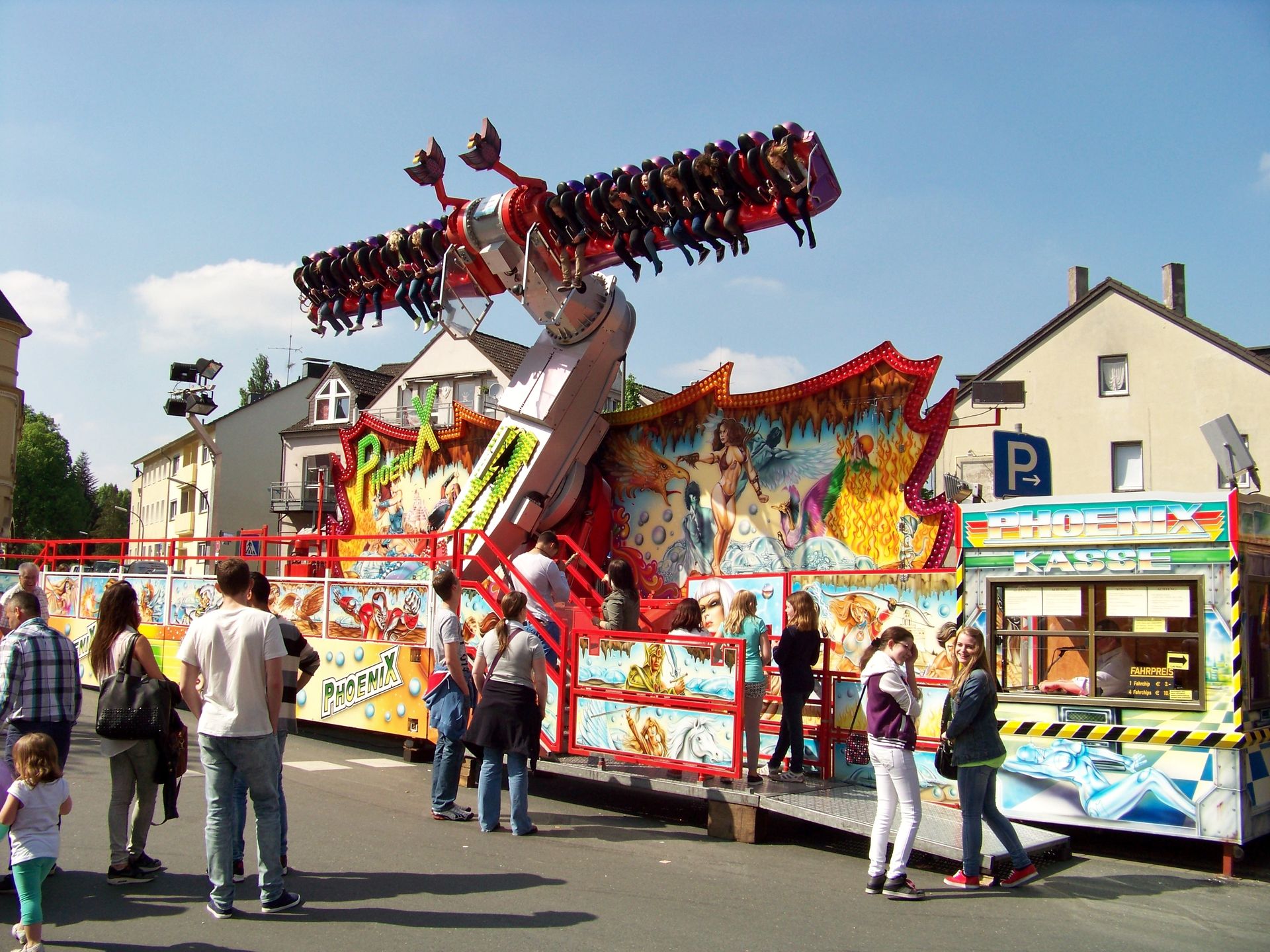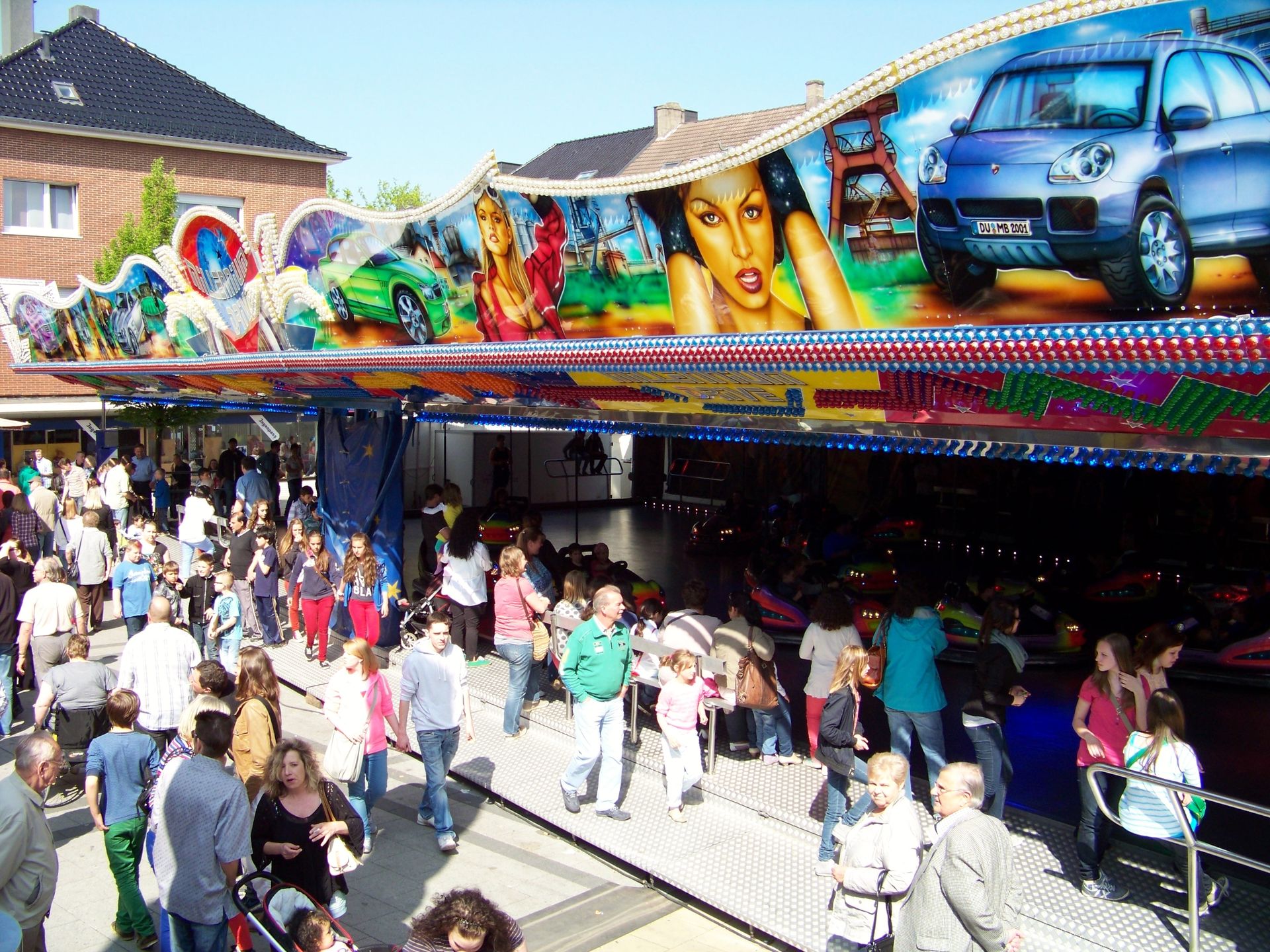 Da schönes, warmes und sonniges Wetter in diesem Jahr eher rar gesäht ist, sollte eben diese Wetterlage am Pfingstsonntag für eine weitere Kirmestour genutzt werden. Meine Entscheidung fiel dabei auf die Pfingstkirmes in Dortmund-Huckarde, da es bei der gleichzeitig laufenden Veranstaltung in Menden, die zwar wirklich eine sehr schöne ist, leider nichts wirklich Neues zu sehen gab für mich. So entschloss ich mich, der mir bis dahin noch nicht bekannten kleineren Stadtteilveranstaltung Dortmunds einen Besuch abzustatten, zumal hier mit Langhoffs - zu dieser Saison neuerworbenen - Schlittenfahrt ein Fahrgeschäft stand, das mit bislang noch nicht vor die Kameralinse getreten ist (auch wenn diese letztendlich auf dem sehr eng bebauten Marktplatz einen für gute Bilder eher ungünstigen Standort hatte).
