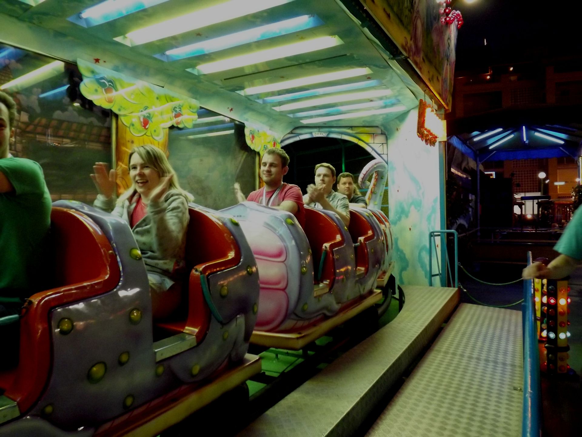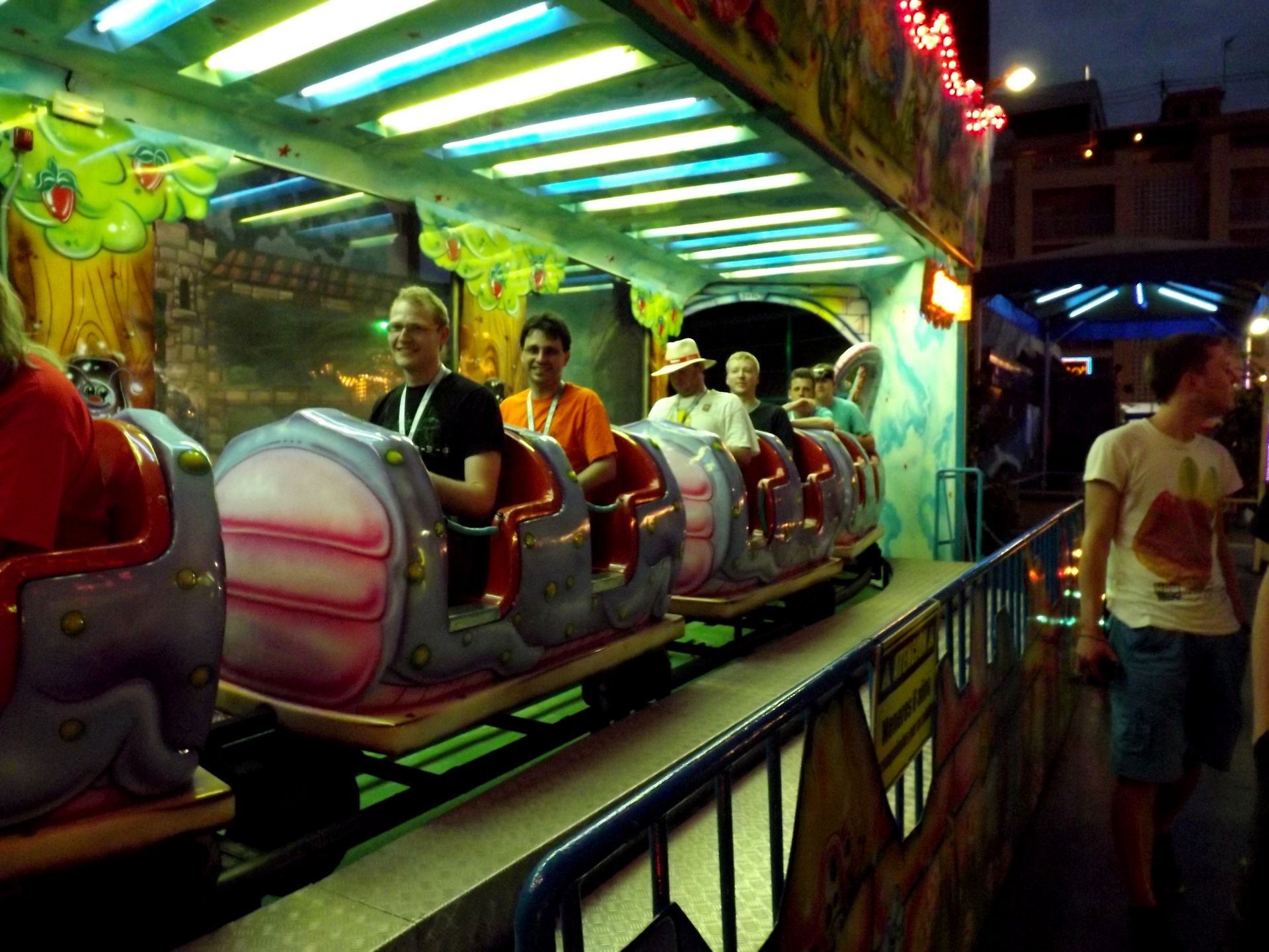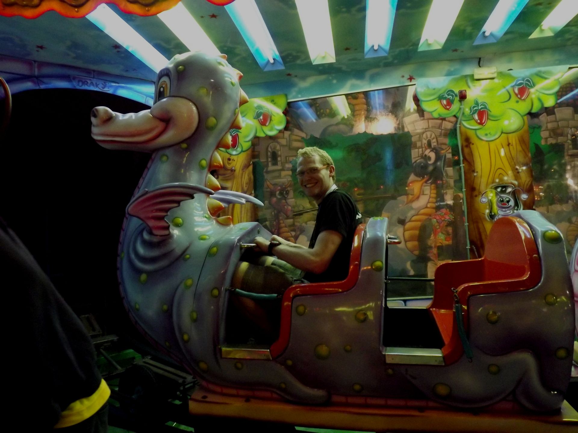 Nach der Führung durch den Darkride sind wir als Überraschung noch den kleinen Festilandia Park an der Promenade angefahren. Ich war ja letztes Jahr schon da und wusste, wie Draky abgeht. Kurze Zeit später konnten sich auch die anderen davon überzeugen, doch zunächst musste das Personal überzeugt werden, das Teil überhaupt zu öffnen. Angeblich ist er diese Saison noch nie gefahren und wird diese Saison auch nicht mehr fahren, seltsamerweise waren zwei Leute von uns Nachmittags schon da und SIND gefahren. Vor allem hatten sie die Tickets von dem gleichen Menschen, der jetzt behauptete, der war nie offen. Naja, am Ende hat es ja zum Glück funktioniert.