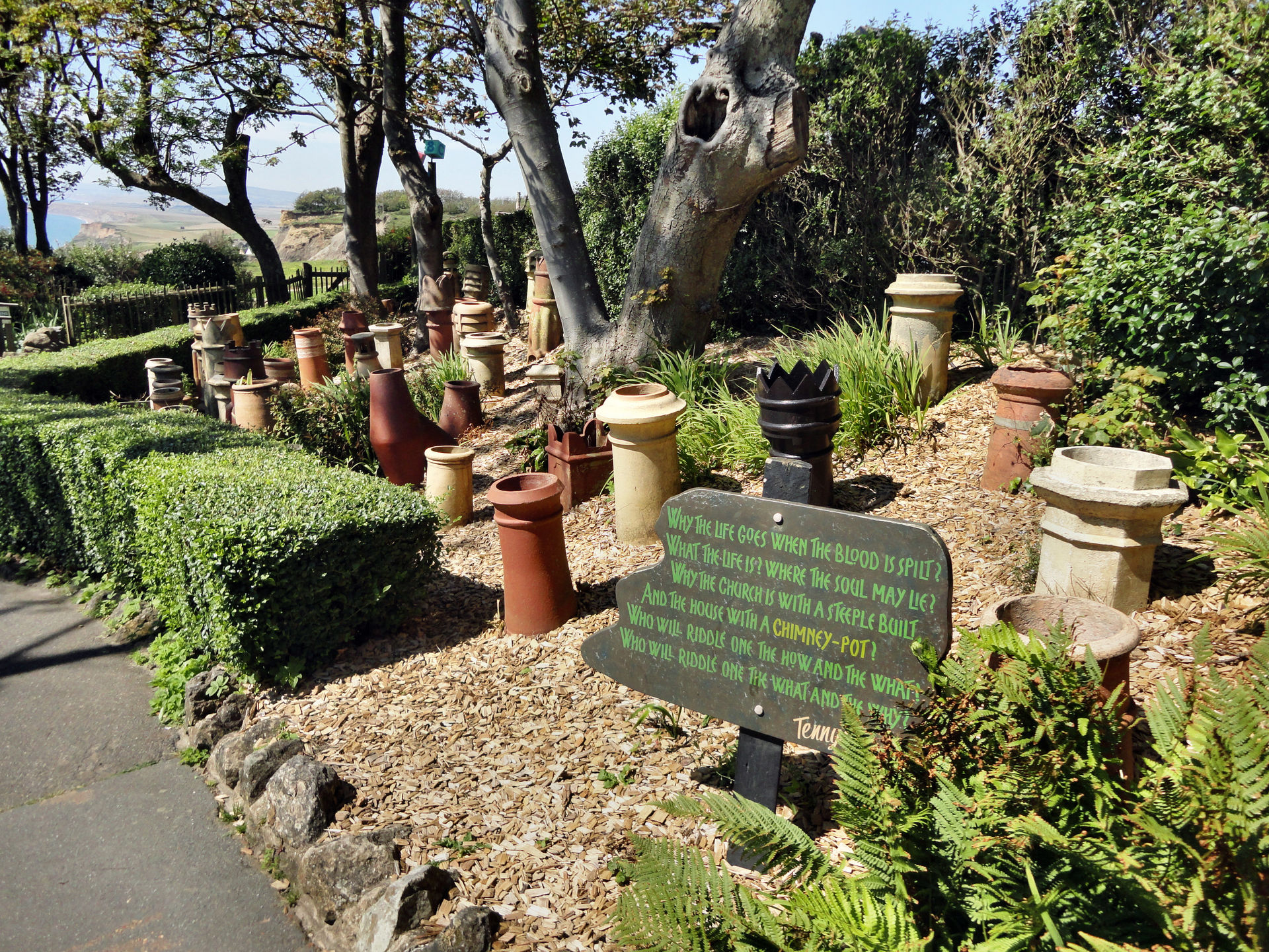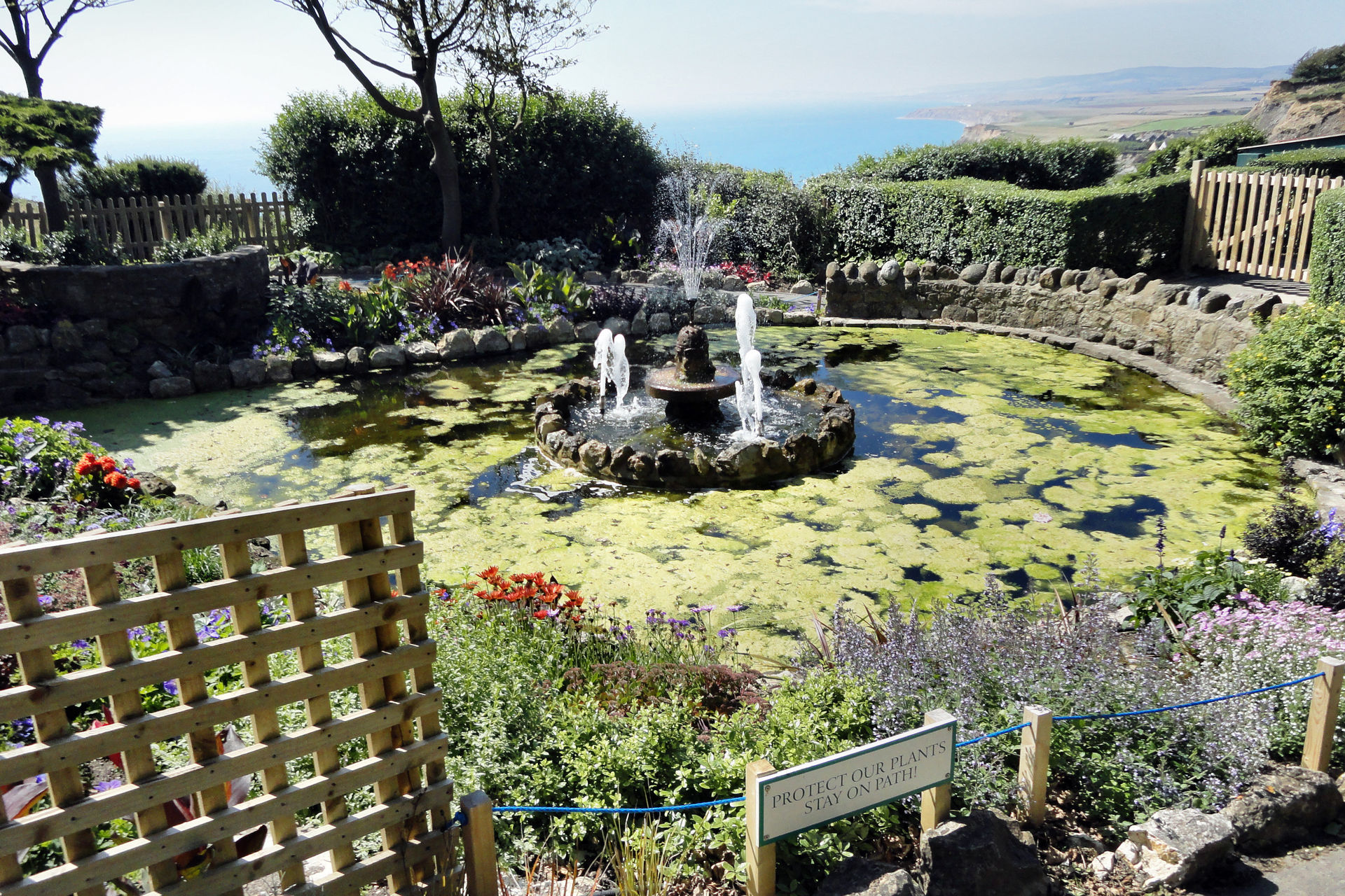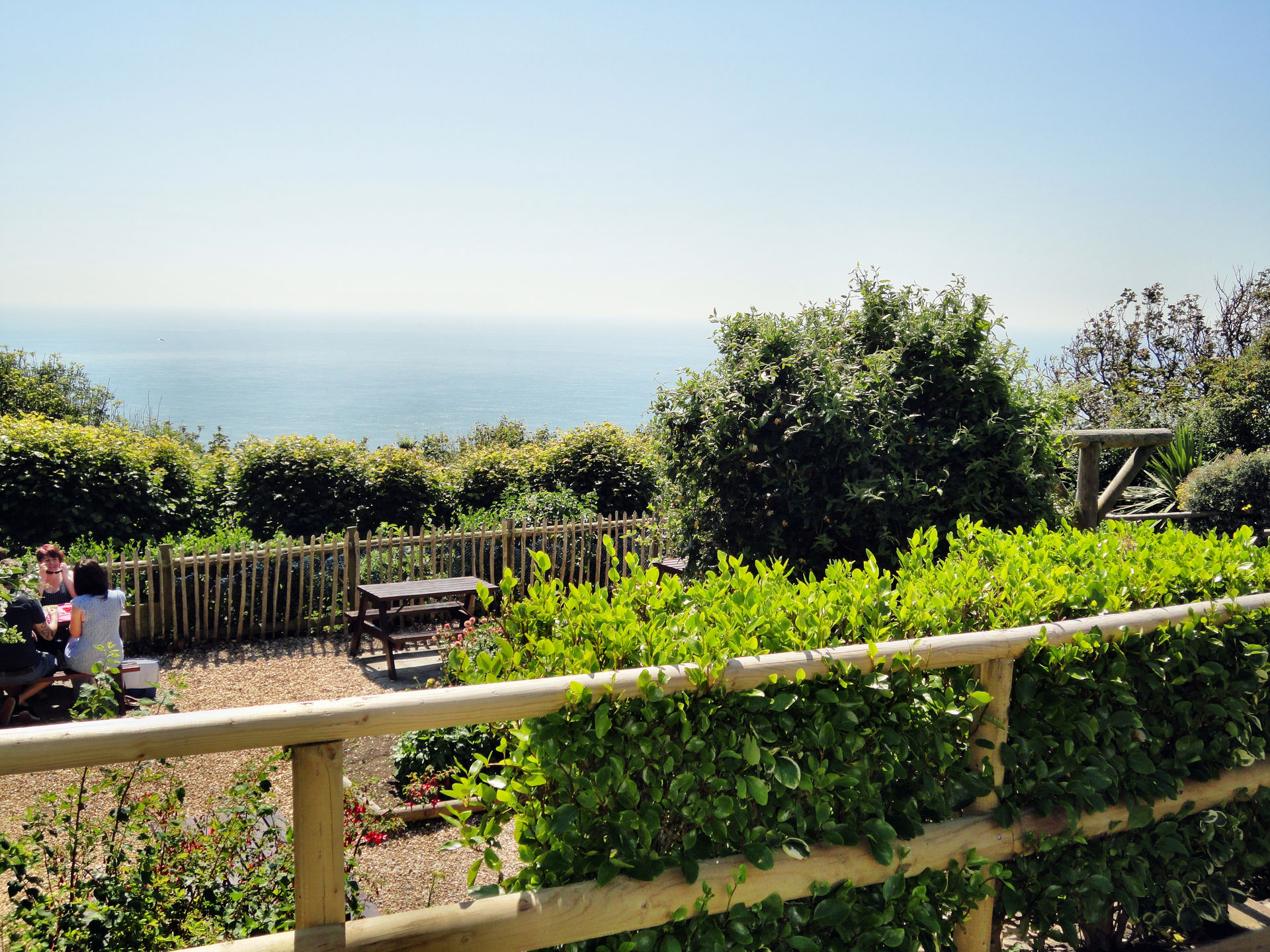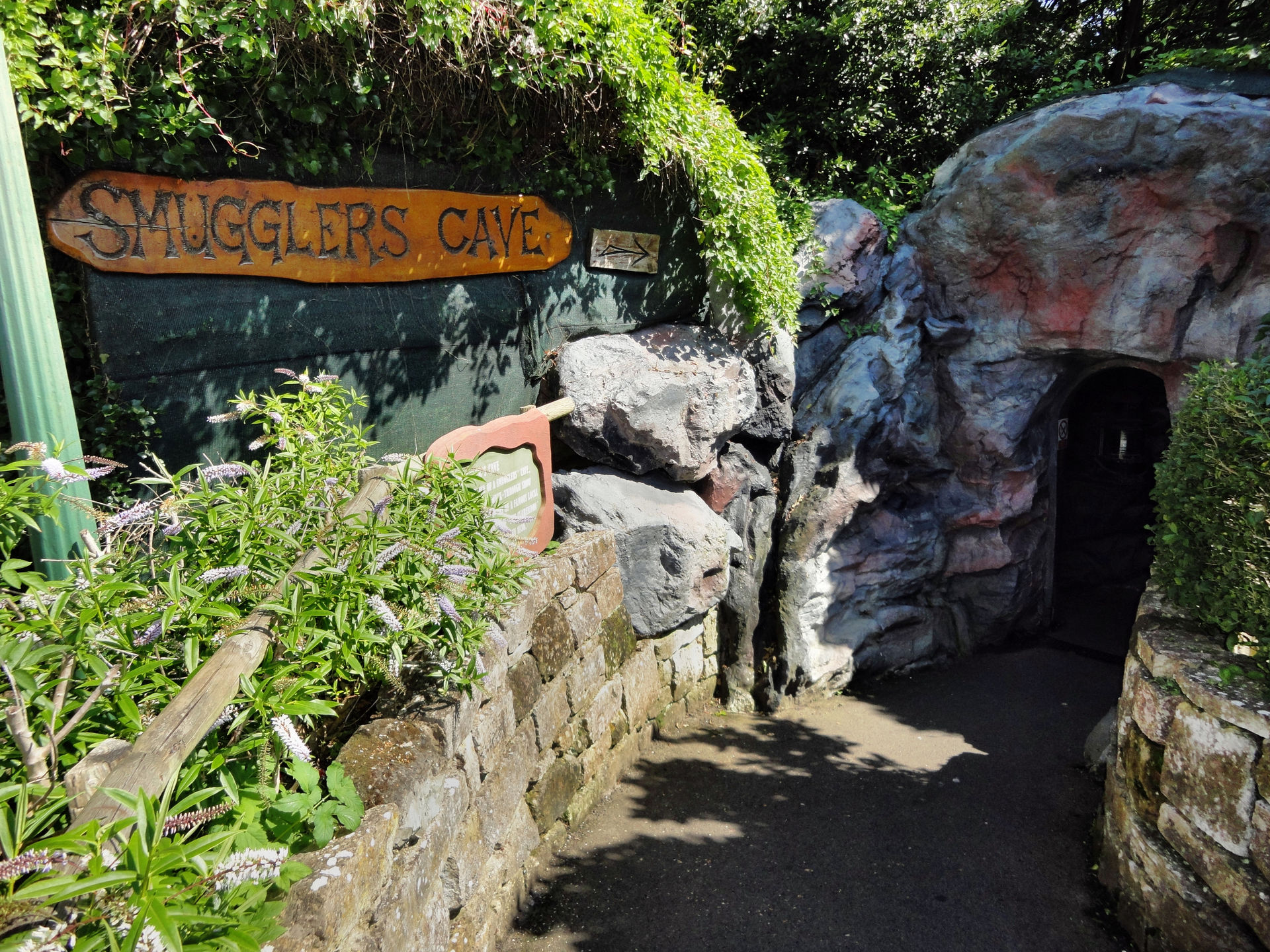 Man steht hier auf einer Terrasse, die direkt am Abhang ins Meer ist. Die Klippen sind schon sehr Spektakulär anzusehen. Die Küstenformation hier in der Gegend war für den Park übrigens namens gebend. Am Anfang lief der Park noch unter dem Begriff Blackgang Chine Fantasy Park. Inzwischen hat man es auf Blackgang Chine gekürzt. Die Unterzeile „Land of Imagination“ wurde aber hinzugefügt.
