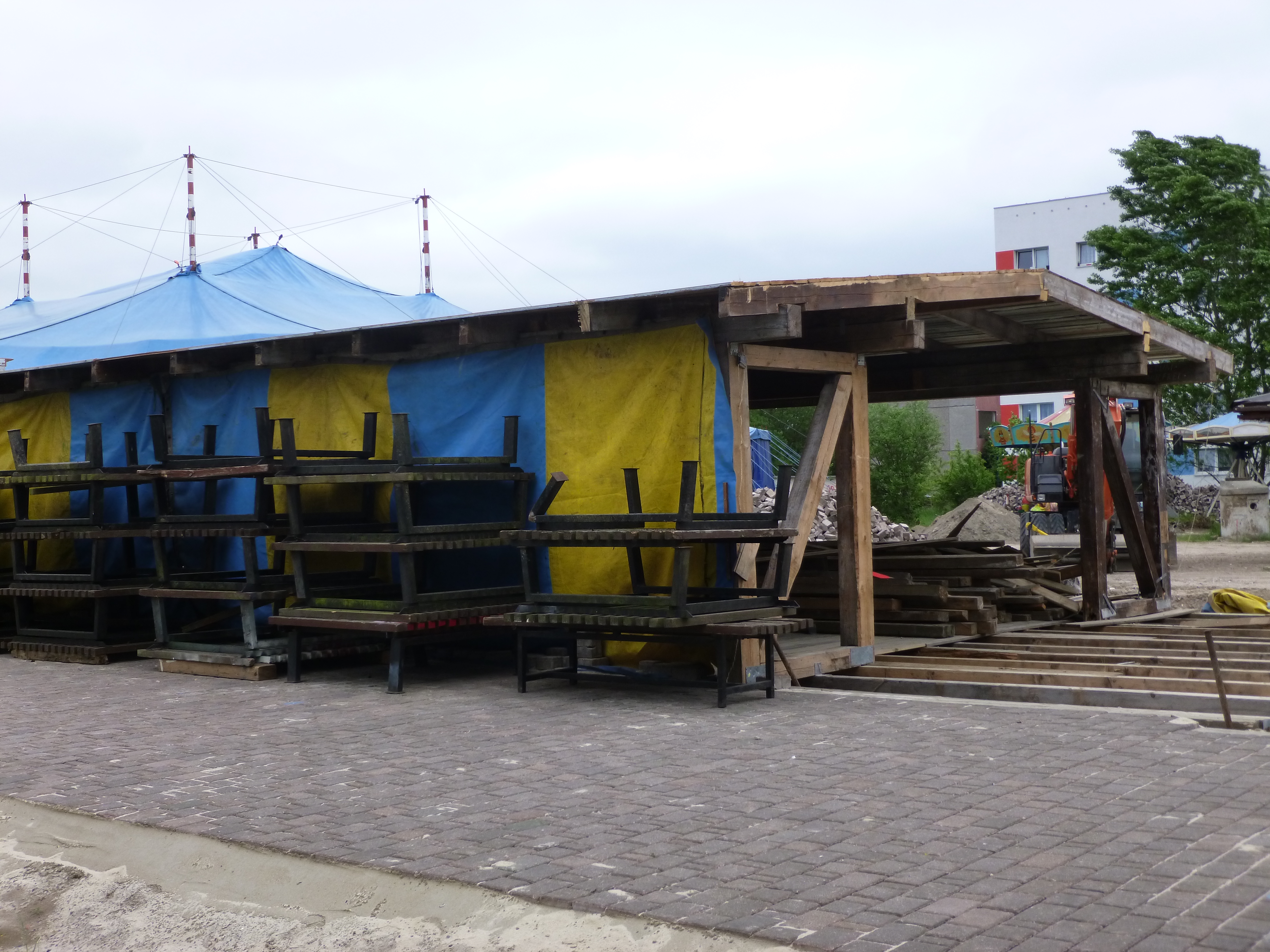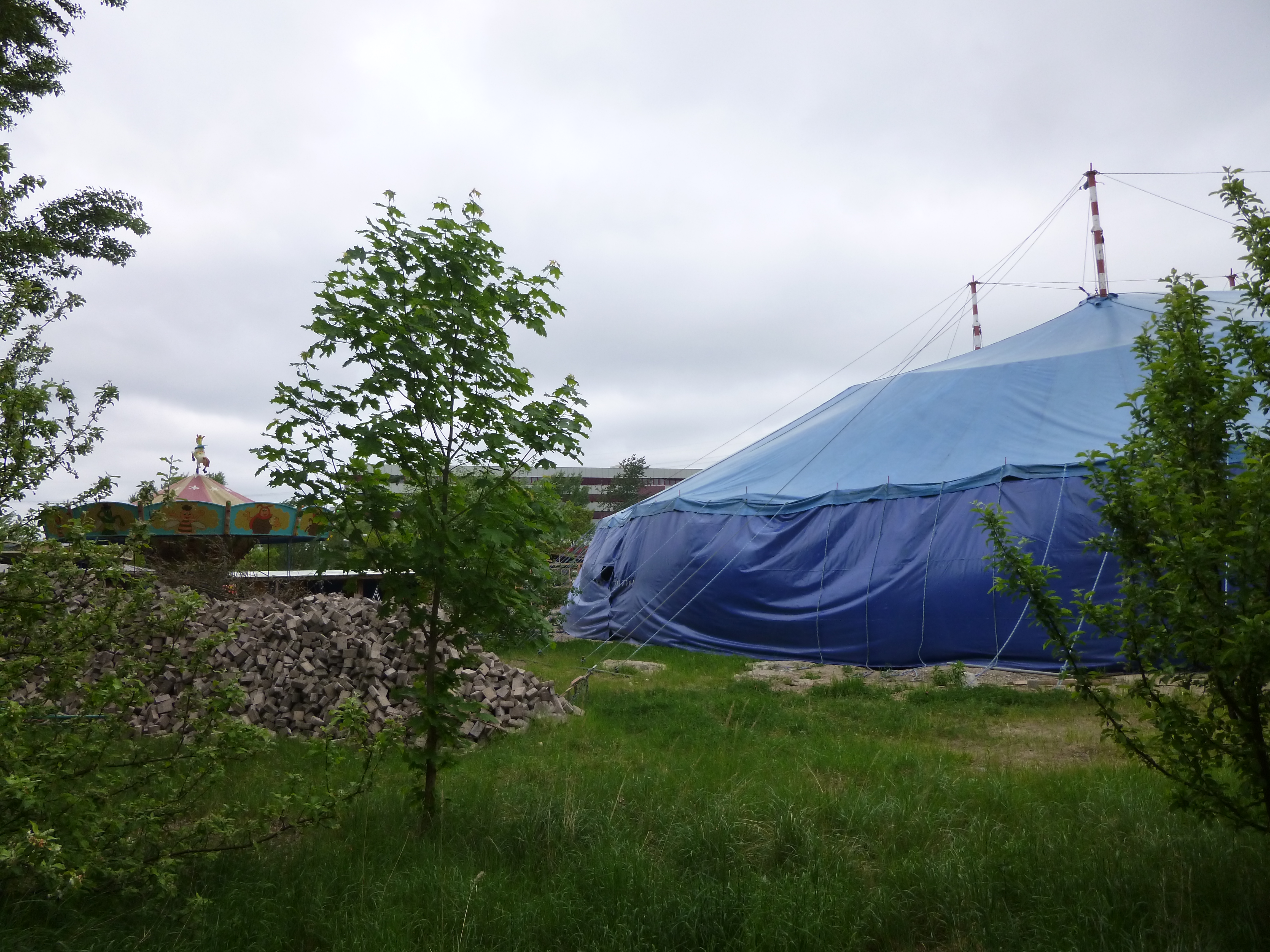 Neben dem Gelände, paar Meter weiter nur gibt es einen Zirkus, nen Dauerzirkus, der ist schon seit Jahren dort anwesend.