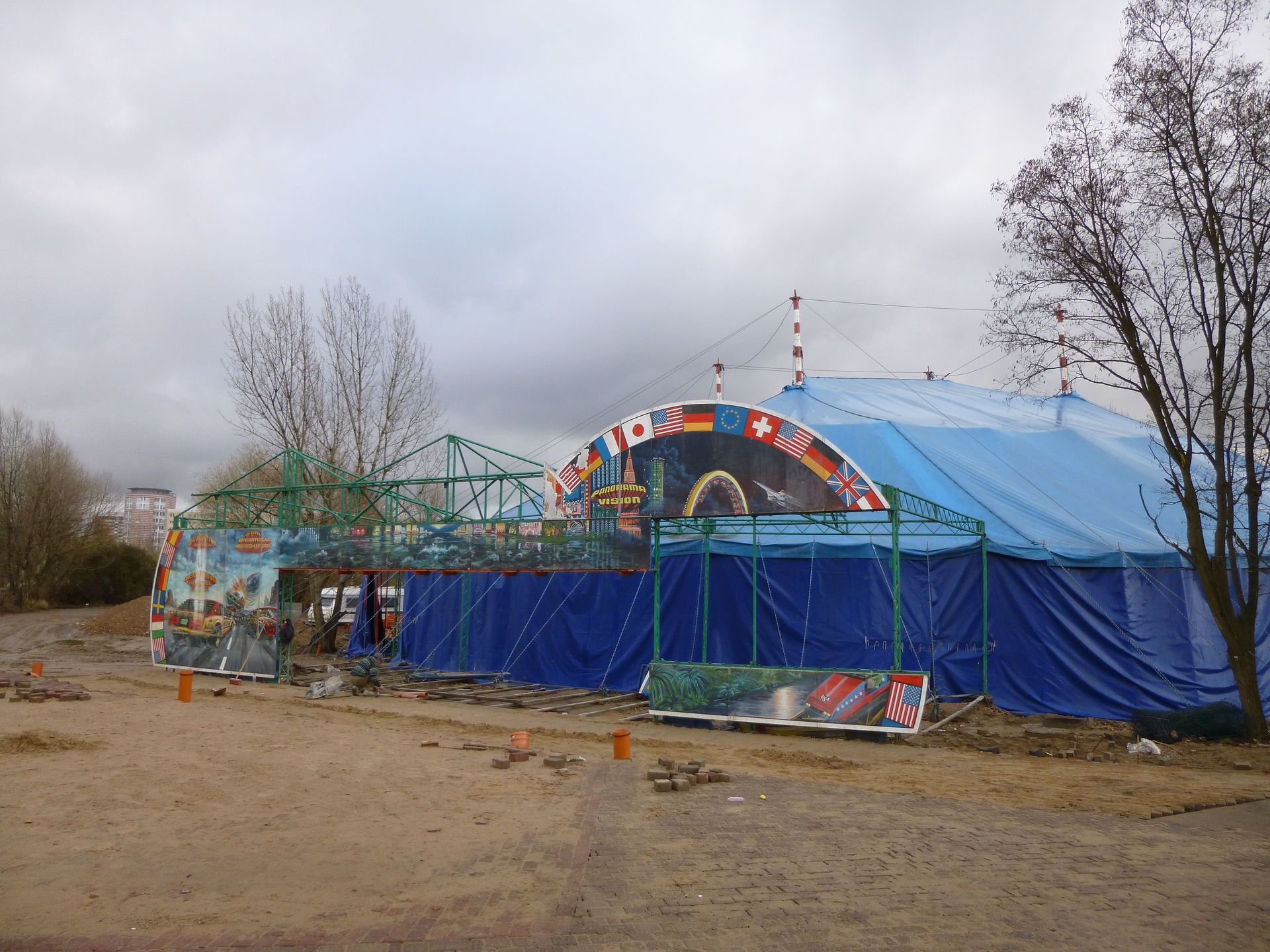 So nen kleiner Krüppelzirkus ohne Tiere, der stand immer an verschiedenen Plätzen in Marzahn seit der Wende.