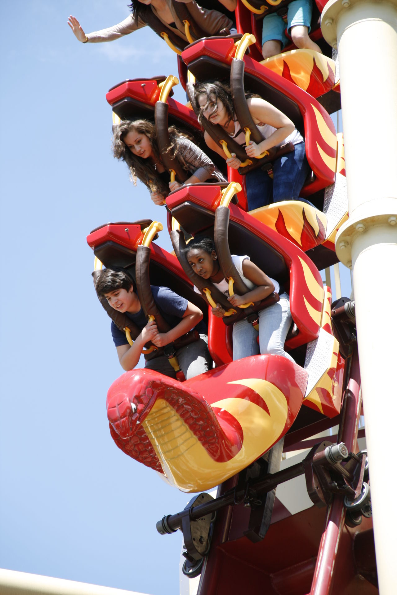 Platzhirsch ist jedoch, wie bereits beschrieben, die Cobra. Nicht nur wegen der Höhe, sondern auch, weil sie die halben Park überquert. Ich habe mich, trotz Re-Re-Retracking, auf das allerschlimmste eingestellt und wurde enttäuscht: Keine Prügel, kein Rütteln, nicht mal vibrieren. Ganz im Gegenteil: Die Fahrt machte richtig Spaß und ist alles andere als harmlos.