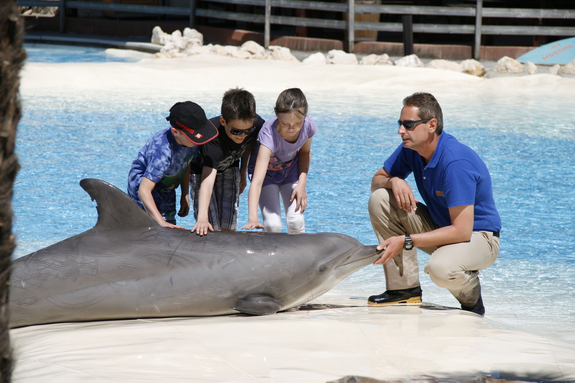 Delphin-Show,welche eine beträchtliche Fläche des Parks belegt, ich schätze mit dem überdachten Gebäude, dass es ca 1/5 sind.