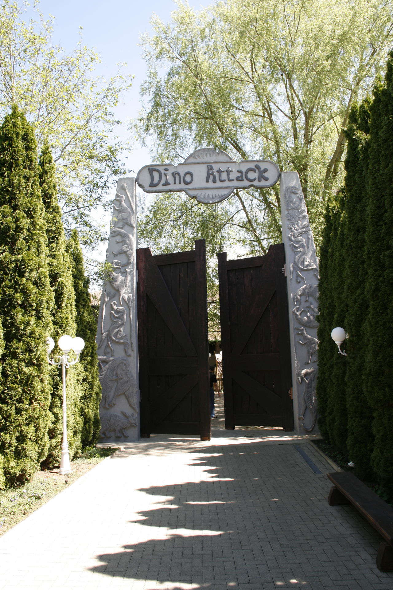 Hinter dieser Tür verbirgt sich ein interaktiver Darkride. Gestaltung mit Dinosauriern ist ganz gut, dass Zielerfassungssystem hingegen totale Grütze, zumindest bei meinem Jeep. Selbst aus nem halben Meter Abstand ist es mir teilweise nicht gelungen, dass die Ziele reagieren.
