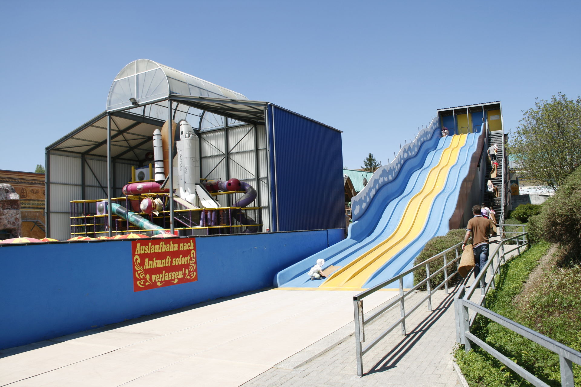 Überaus positiv war für uns, dass man dort nicht Attraktionen sinnlos für Kinder gesperrt hat. Sicher, für bestimmte Attraktionen braucht es eine Mindestgröße, damit die Rückhaltesysteme richtig greifen. Aber bei Attraktionen wie einem Indoorspielbereich, diese an ein Alter zu binden, ist aus meiner Sicht ziemlich sinnfrei, und treibt seltsame Blüten: Während im Connyland unsere Tochter vergnügt auf dem Kletterturm in Etage zwei und drei rumturnte, hieß es im Europa Park, dass Kinder unter drei Jahren nur auf Bodenniveau spielen dürfen. Aber gut, dort waren in Sachen Größenbeschränkungen auch noch ein paar andere Seltsamheiten...