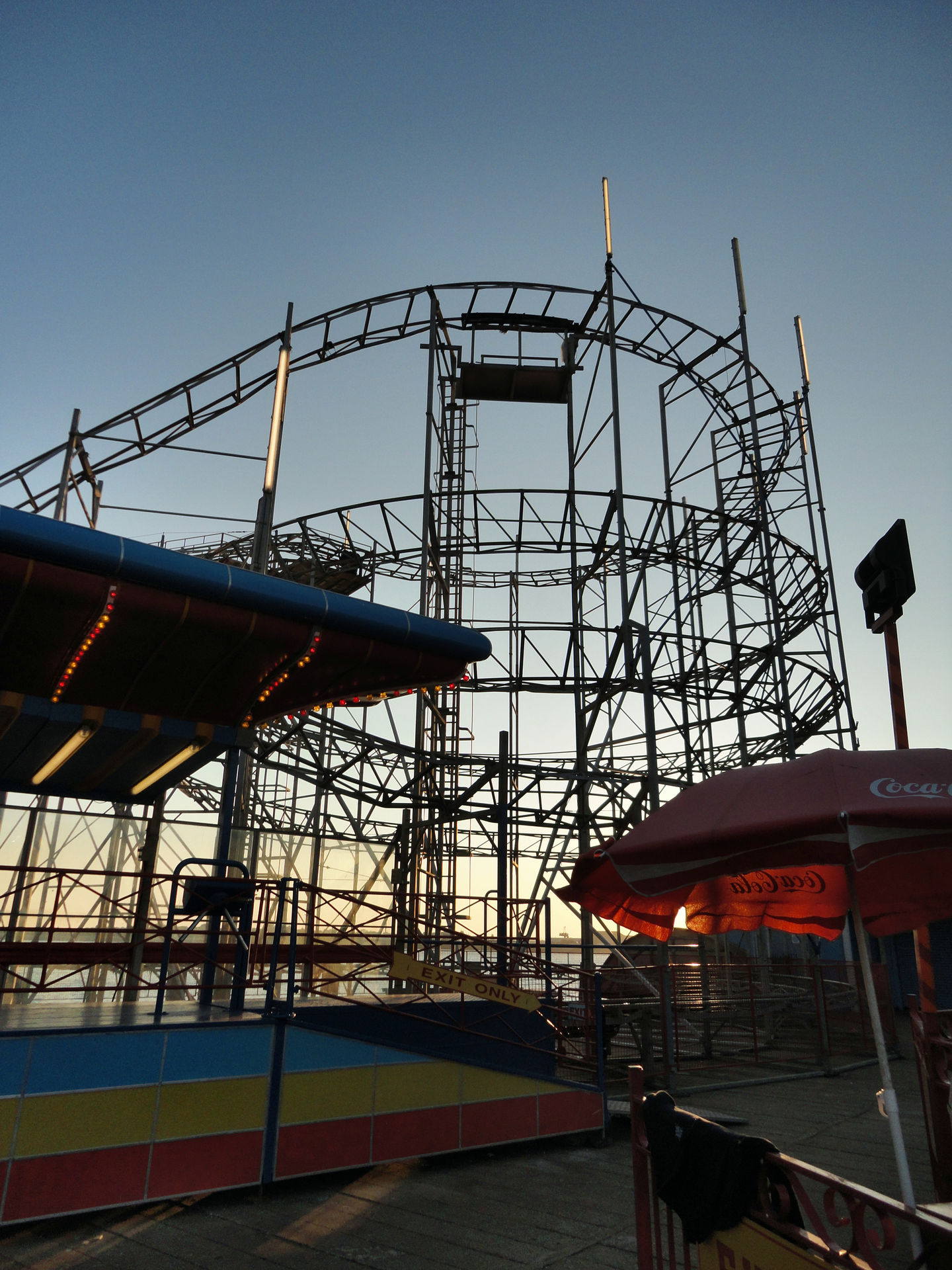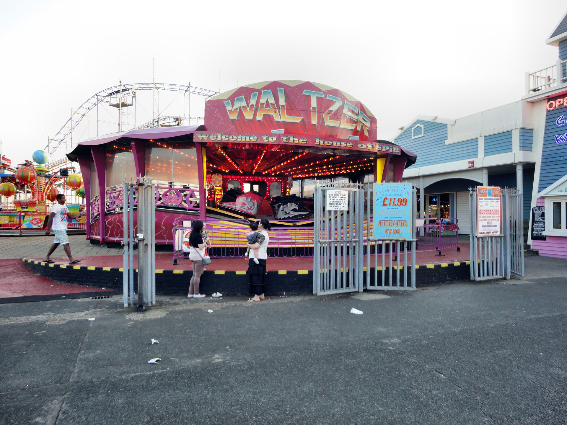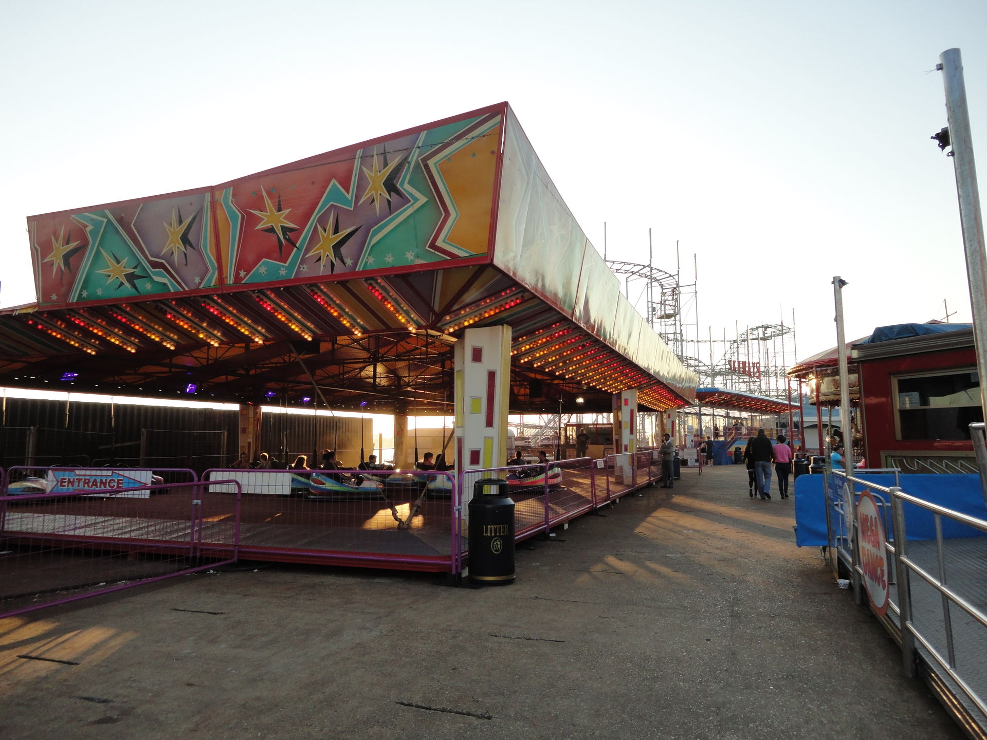 Der Pier, der übrigens nicht ins Wasser hinein, wie z.B. der Brighton Pier, führt, sondern längs zum Wasser gebaut ist, bietet immerhin zwei Achterbahnen. Eine nicht weiter erwähnenswerten Kiddy – ausnahmsweise mal kein Big Apple, auch wenn die Größe ähnlich ist– und einen S.D.C. Galaxy, der zu den größeren Bahnen der Tour gehörte.