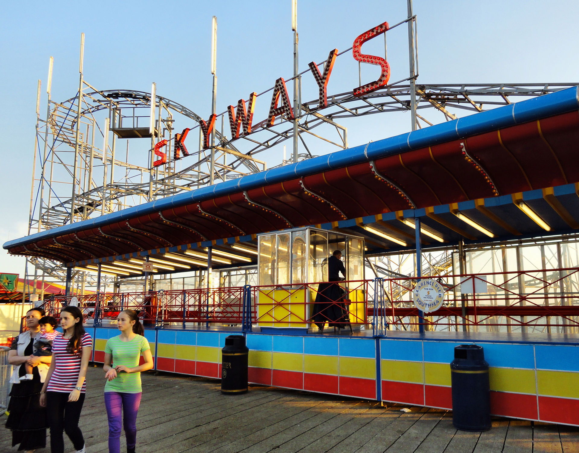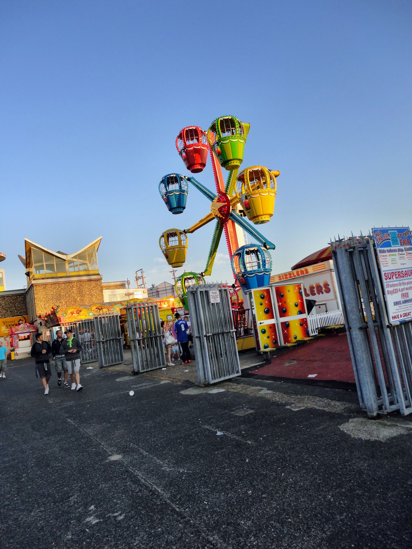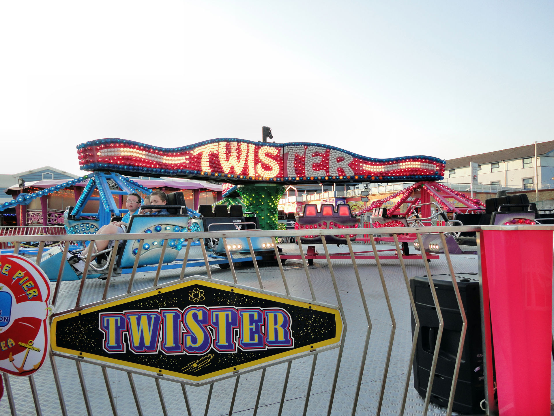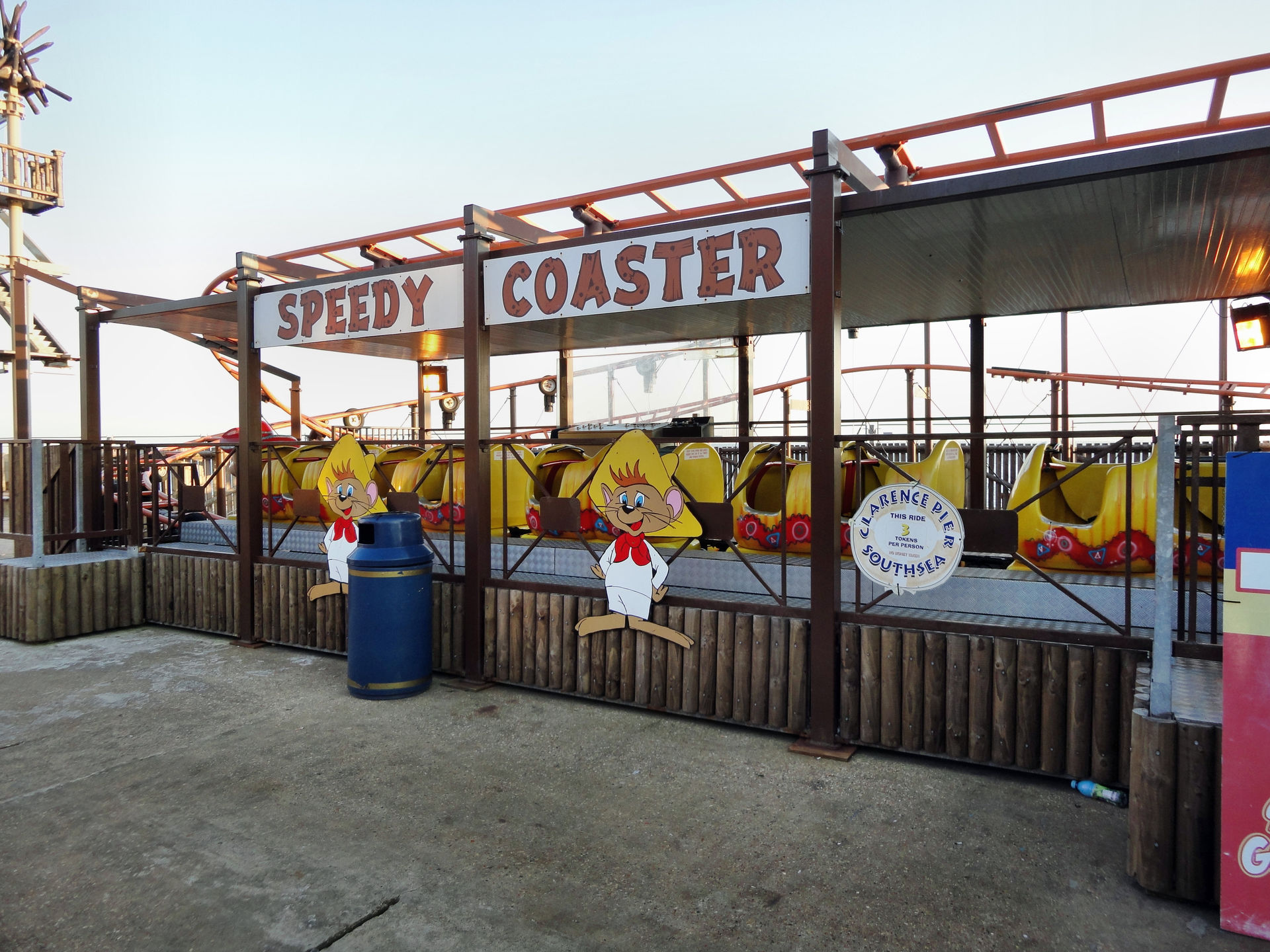 Der Pier, der übrigens nicht ins Wasser hinein, wie z.B. der Brighton Pier, führt, sondern längs zum Wasser gebaut ist, bietet immerhin zwei Achterbahnen. Eine nicht weiter erwähnenswerten Kiddy – ausnahmsweise mal kein Big Apple, auch wenn die Größe ähnlich ist– und einen S.D.C. Galaxy, der zu den größeren Bahnen der Tour gehörte.
