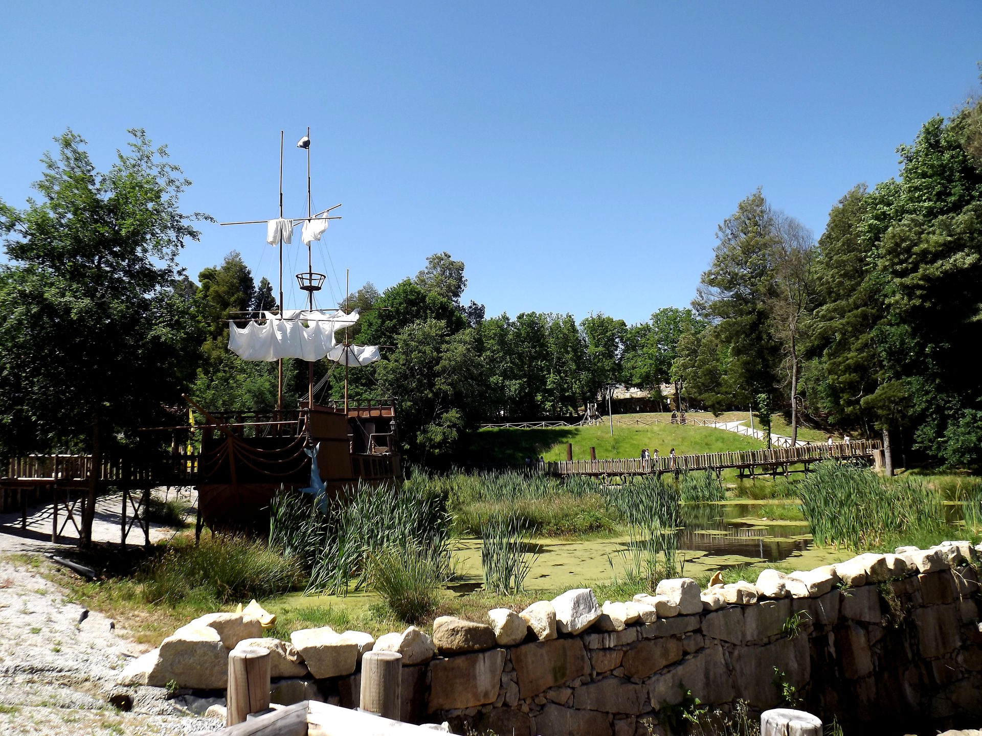 An einem Piratenschiff vorbei geht es auf einen Berg!