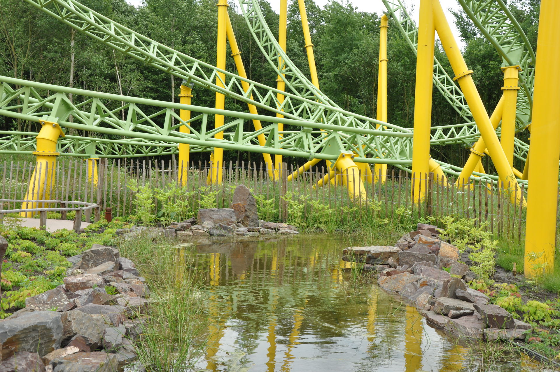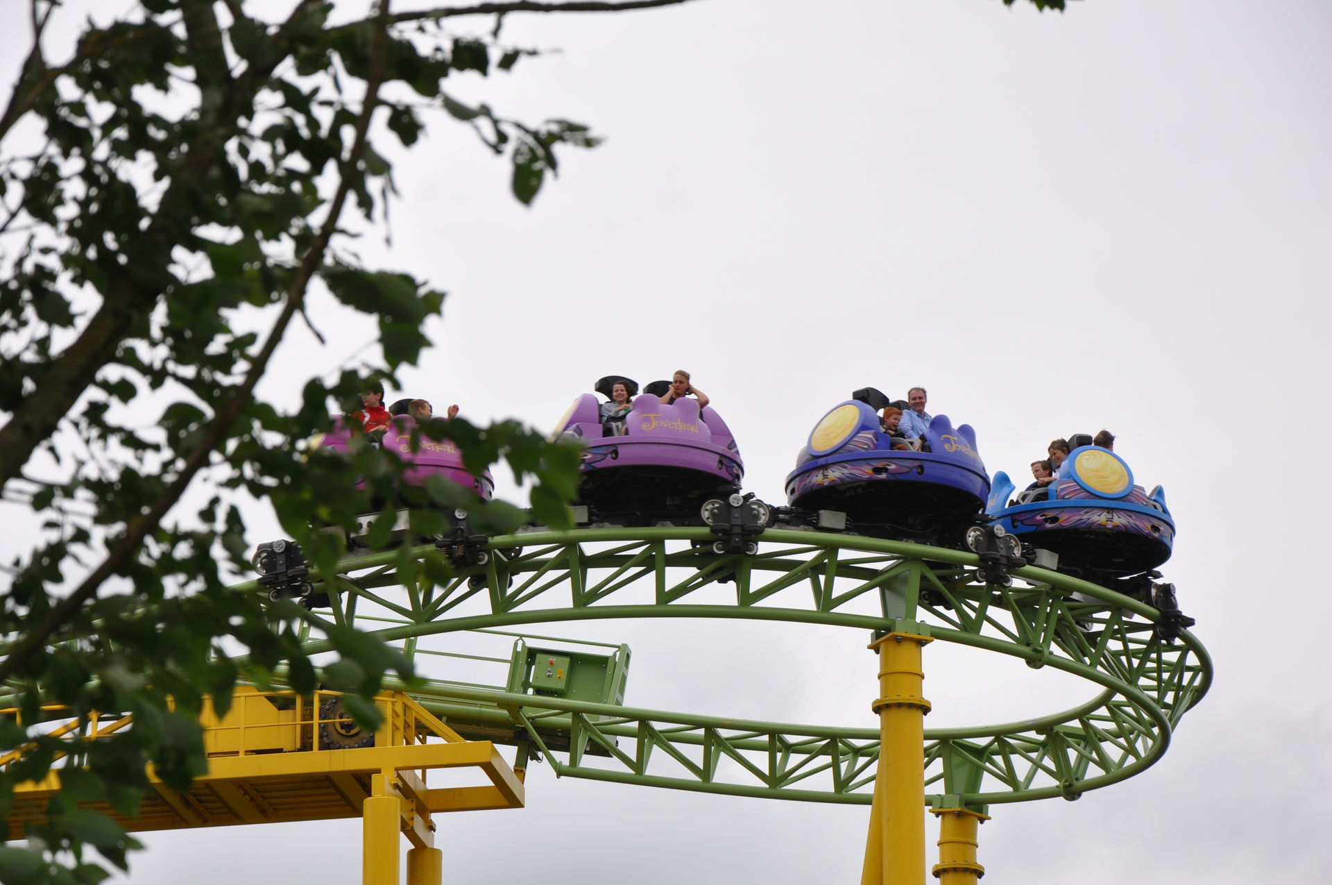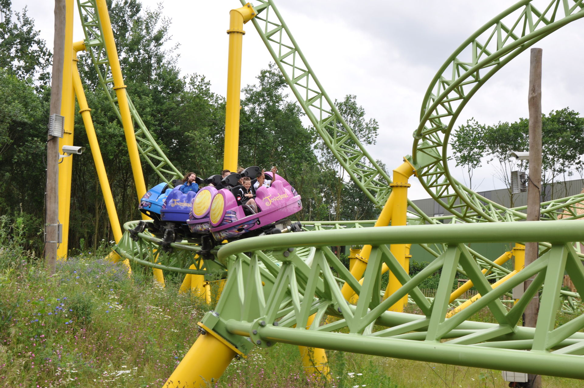 Als erstes galt es den neuen Coaster Dwervelwind zu testen. Dieser hat uns allen sehr gut gefallen. Er ist drehfreudig und fährt recht zügig. Besonders die Umschwünge in Bodennähe gefallen. Welch ein Unterschied in den Fahreigenschaften zu Euro Mir, die die identischen Züge hat. Da ich nicht so gerne, ob meiner Größe, rückwärts fahre, bevorzuge ich das Niederländische Modell. Bei 10 Minuten Wartezeit haben wir gleich noch eine zweite Fahrt gegönnt.