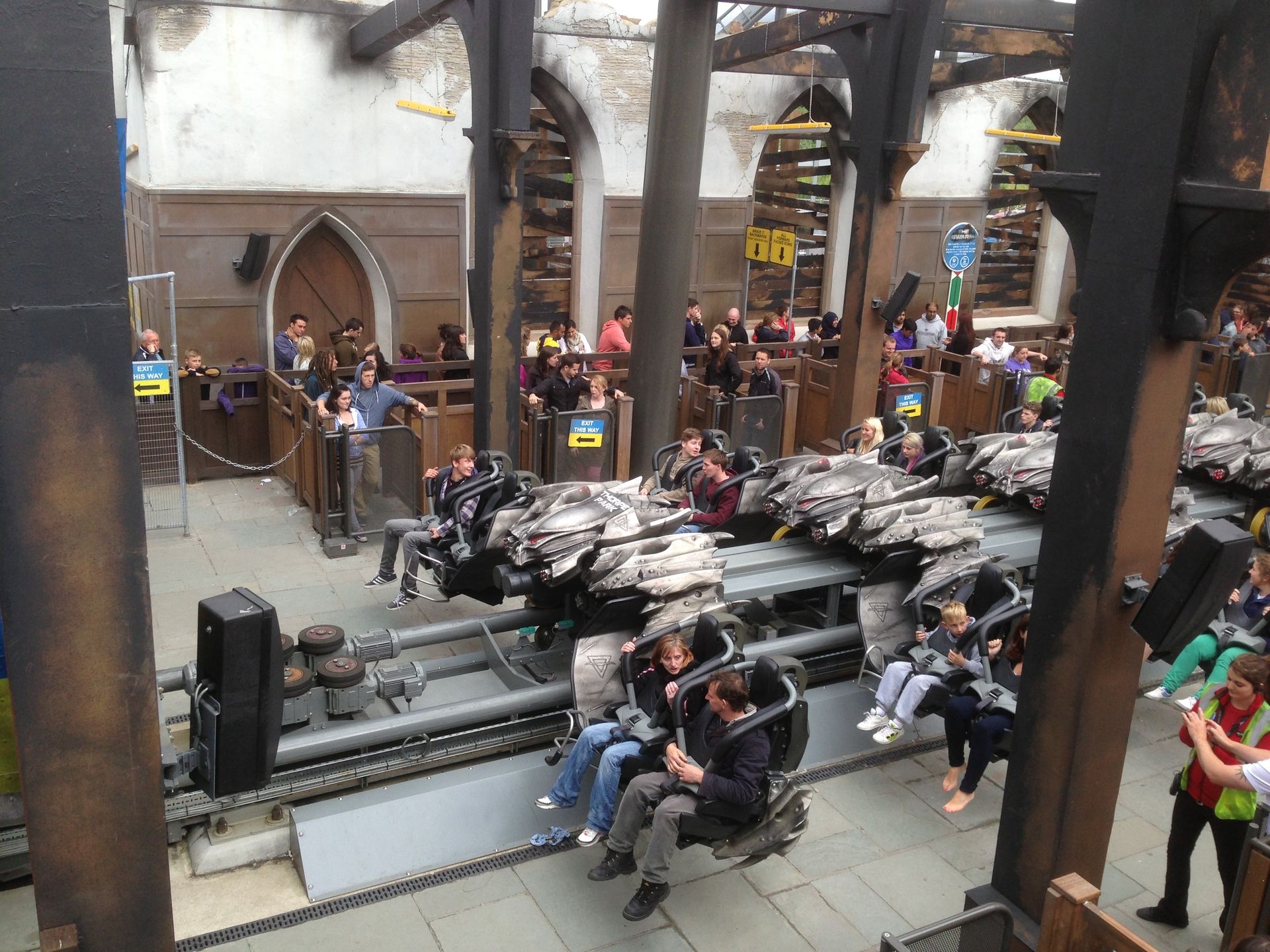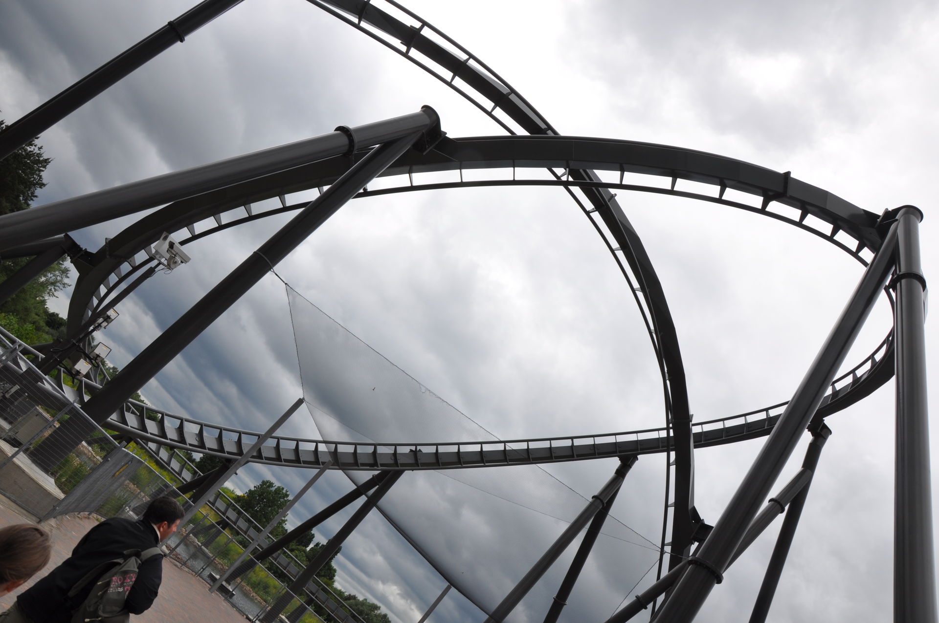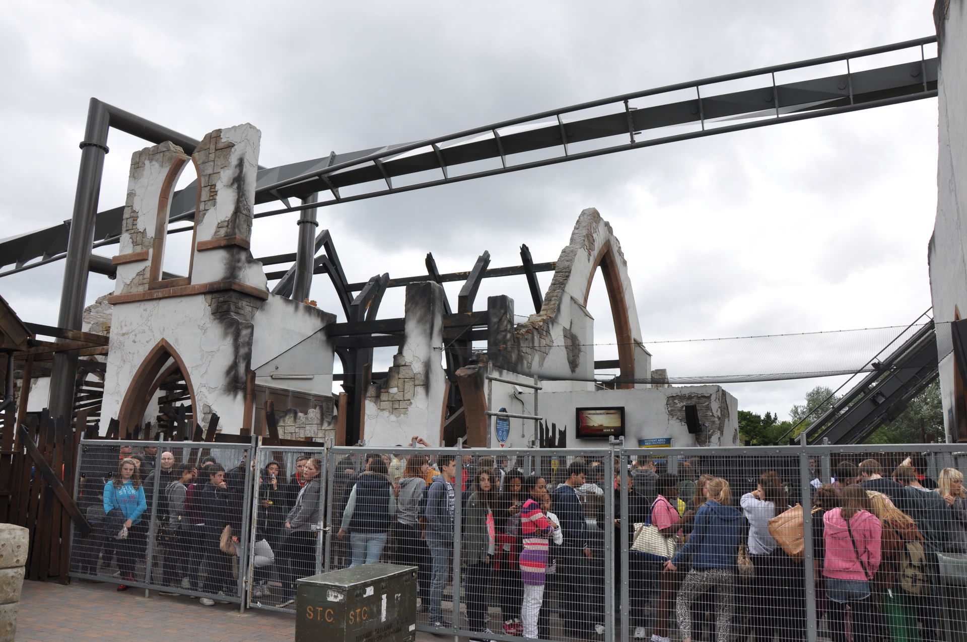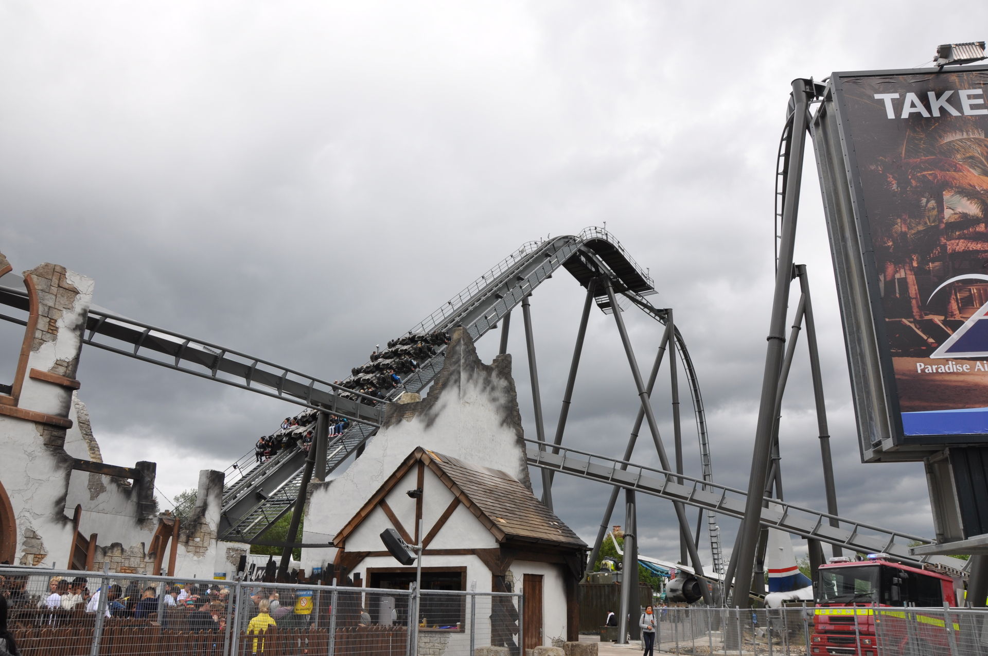 Morgens um 06:30 Uhr sind wir in Harwich von der Fähre gekommen und haben uns auf den Weg zum Thorpe Park gemacht. Erreicht haben wir ihn um 08:45 Uhr. Leider hatten die Supermärkte vor Ort noch nicht auf, so dass wir ohne Frühstück in den Park mussten. Kurz nach neun öffnete das Büro für die Jahreskarten und wir konnten unsere Voucher tauschen. Als wir dann vor dem Eingang standen, und es immer voller wurde, fragten wir uns, ob es eine so tolle Idee war, den Park am Sonntag zu besuchen. Die Antwort auf diese Frage sollten wir erst am Montag erhalten. Um 09:30 Uhr öffnete der Park dann seine Pforten. Als erstes ging es zu Swarm. Cedric und ich hatten Glück, gerade wurde wieder die linke Seite freigegeben und wir konnten uns gleich in die erste Reihe setzen. Danach haben wir uns gleich nochmal angestellt und wieder Glück gehabt. Eine Reihe für die Rückwärtsfahrt war noch frei und wir konnten uns direkt hinsetzen. Uns haben beide Fahrten sehr viel Spaß gemacht. Die