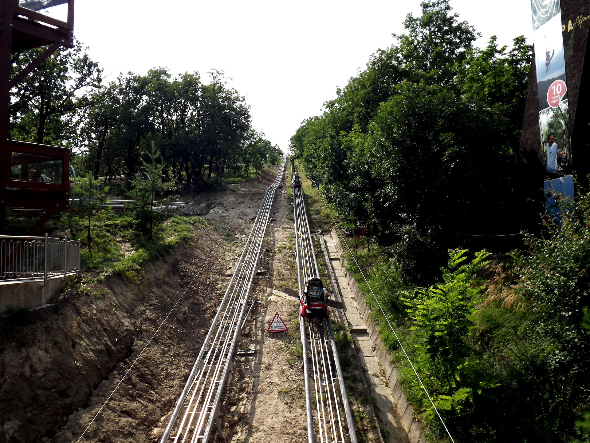 Irgendwann nach gefühlten 10 Stunden erreichten wir Balatonfüzfö und den Balatoni-Bob. Oder inzwischen eher die Balatoni-Bobs, denn inzwischen gibt es hier zwei Alpine Coaster, die quasi duelling sind. Ziemlich abgefahren eigentlich.