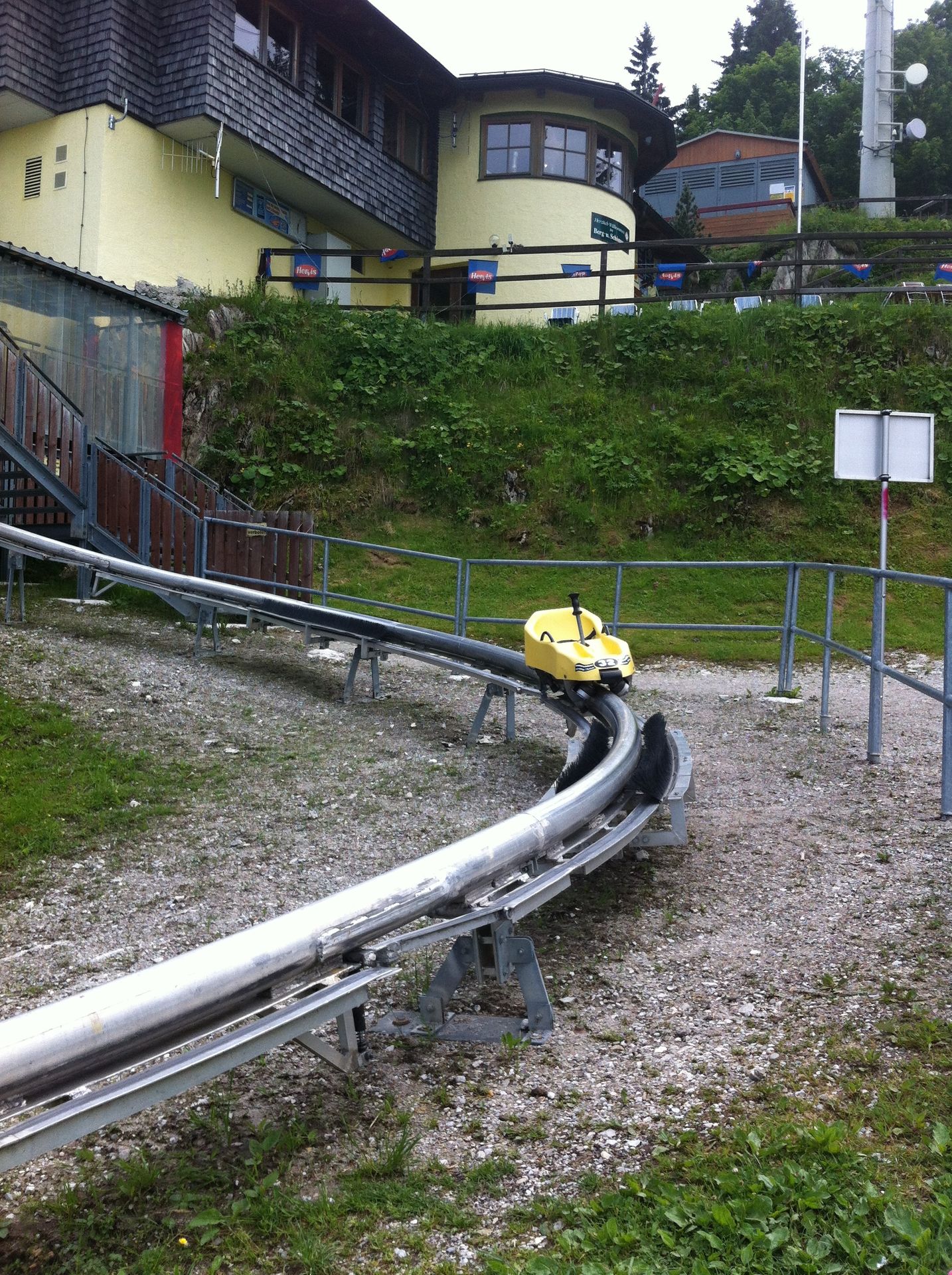 Den Alpine Coaster betritt man durch das Gasthaus!