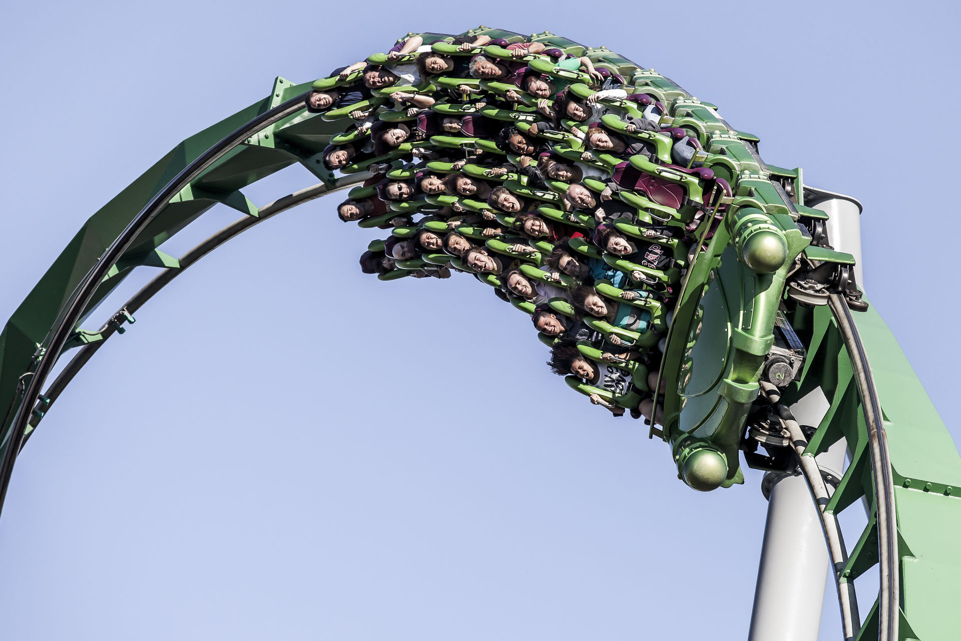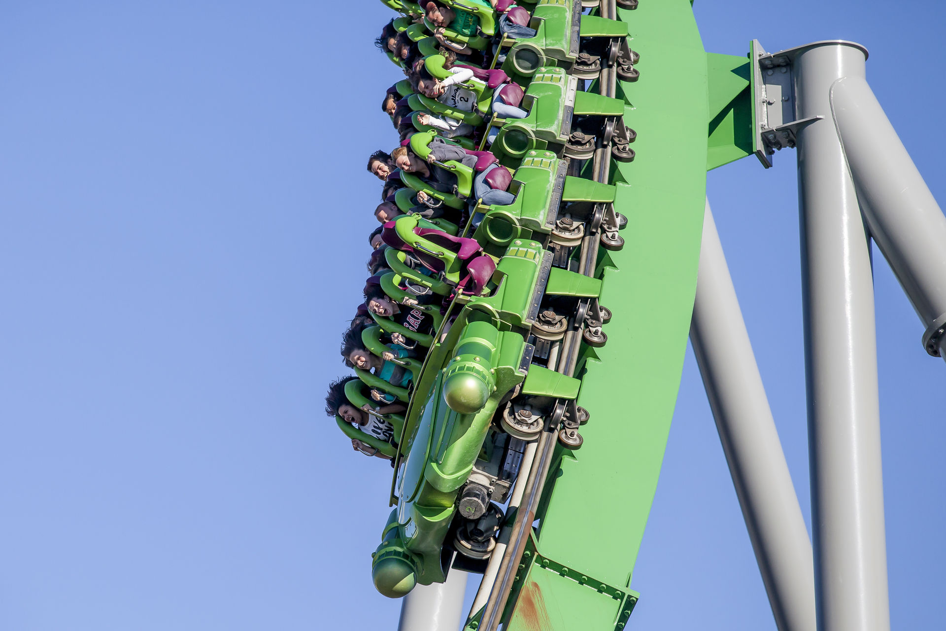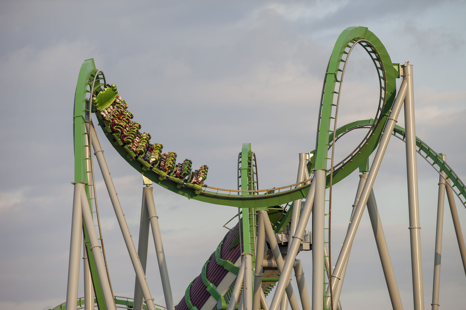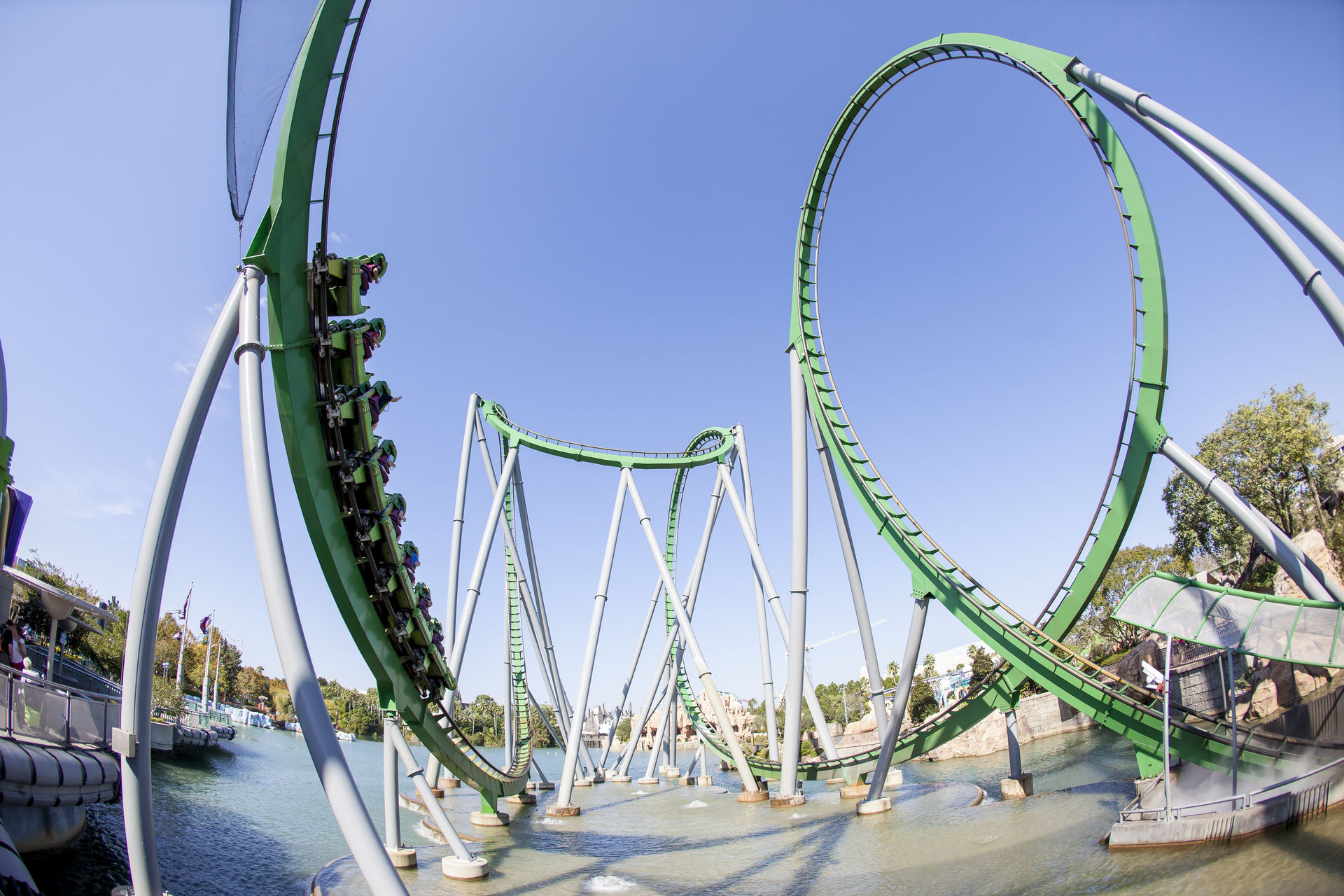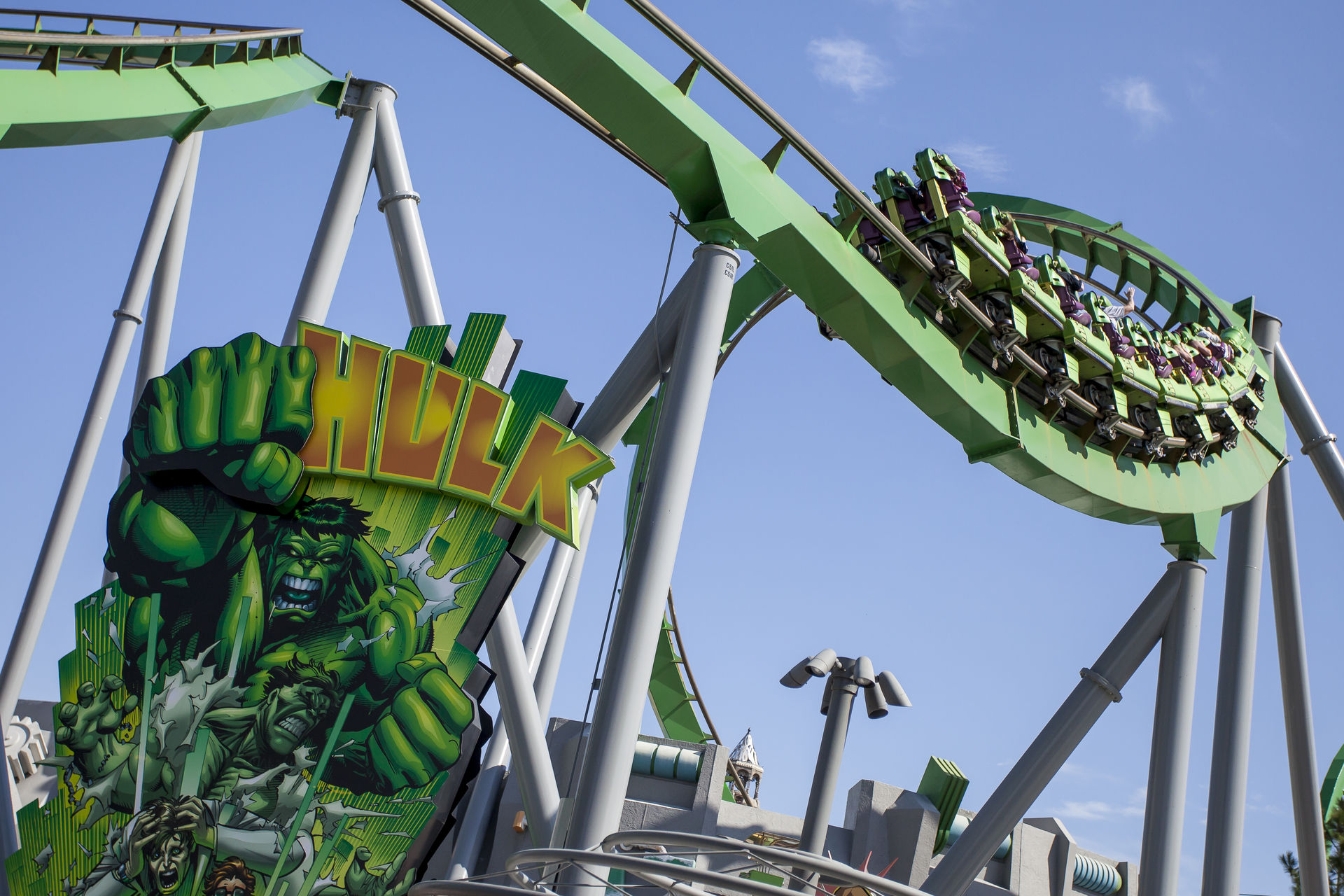 Wenn man sich nach der Mainstreet für den linken Parkteil entscheidet, kommt man direkt in die Marvel Superhero World. Eines der Aushängeschilder des Bereichs ist Hulk, der einzige B&M mit Abschuss. Dank Dreizugbetrieb war die Wartezeit nie höher als 5 Minuten, so lob ich mir das. Wenn die Reibräder beschleunigen bleibt keine Zeit mehr zum Durchatmen, die Inversionen werden sehr zügig und intensiv durchfahren. Nach 3 Wiederholungsfahrten bei sonnigen 35°C brauchten wir dann auch erstmal eine Pause. Für 13 Jahre Dauerbetrieb fuhr die Bahn erstaunlich sanft. 9/10 Punkten