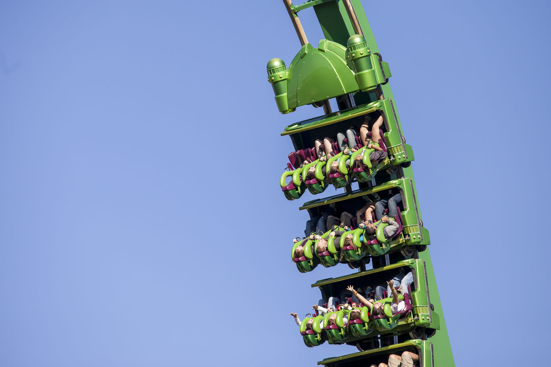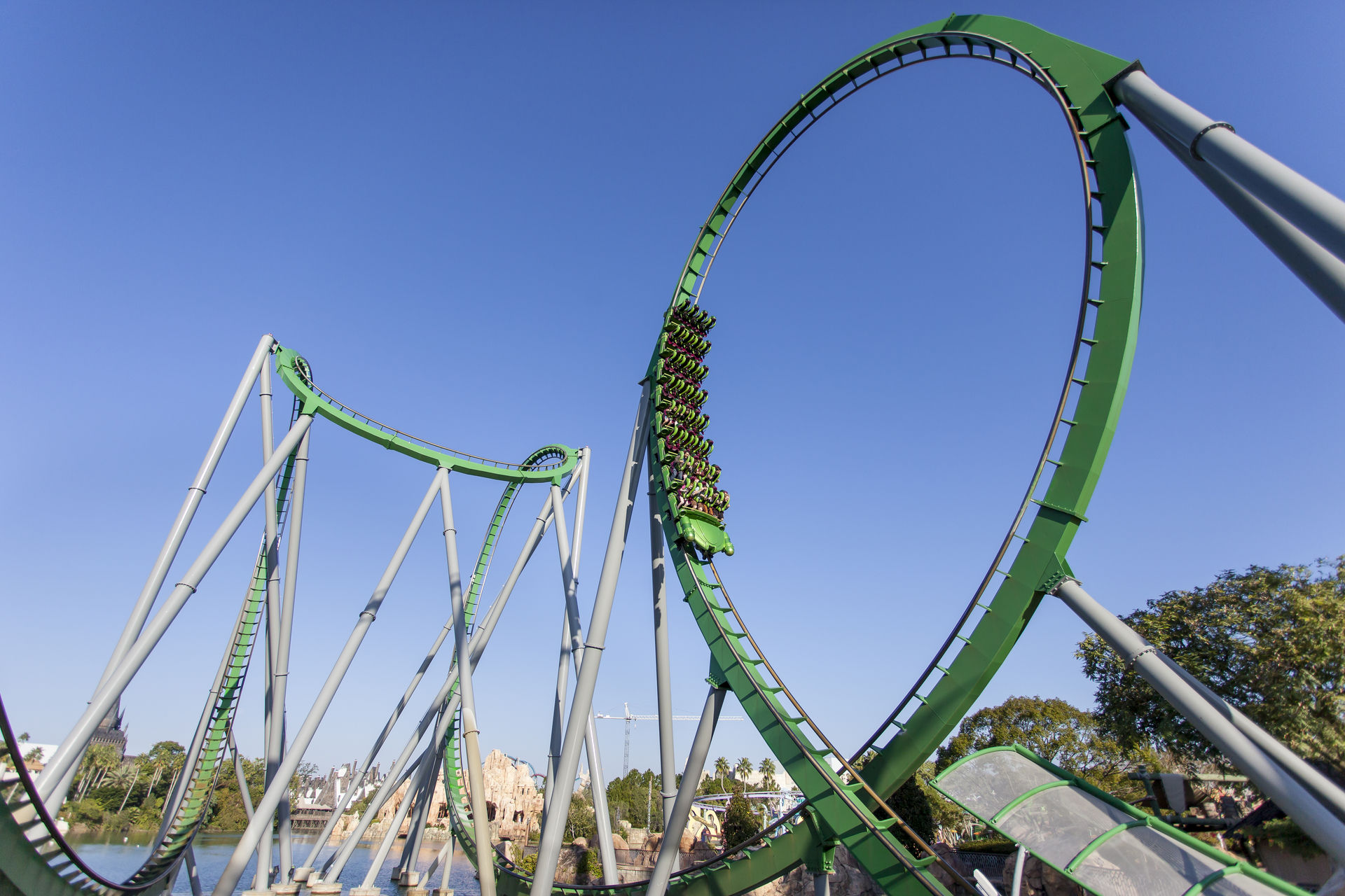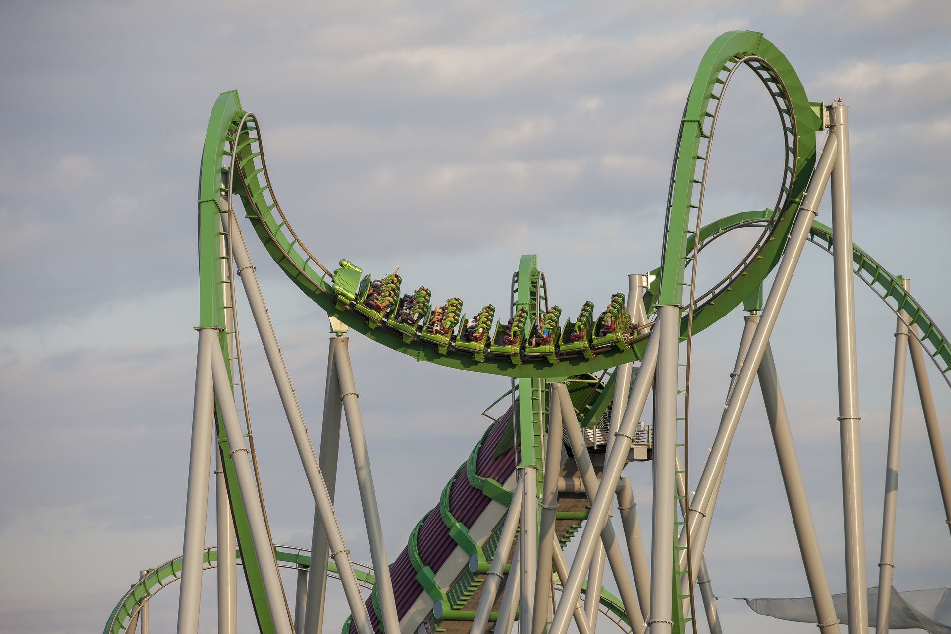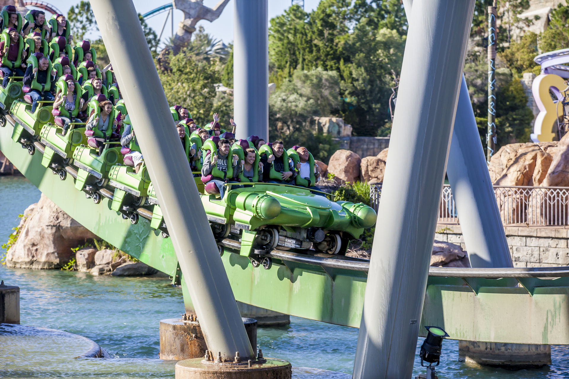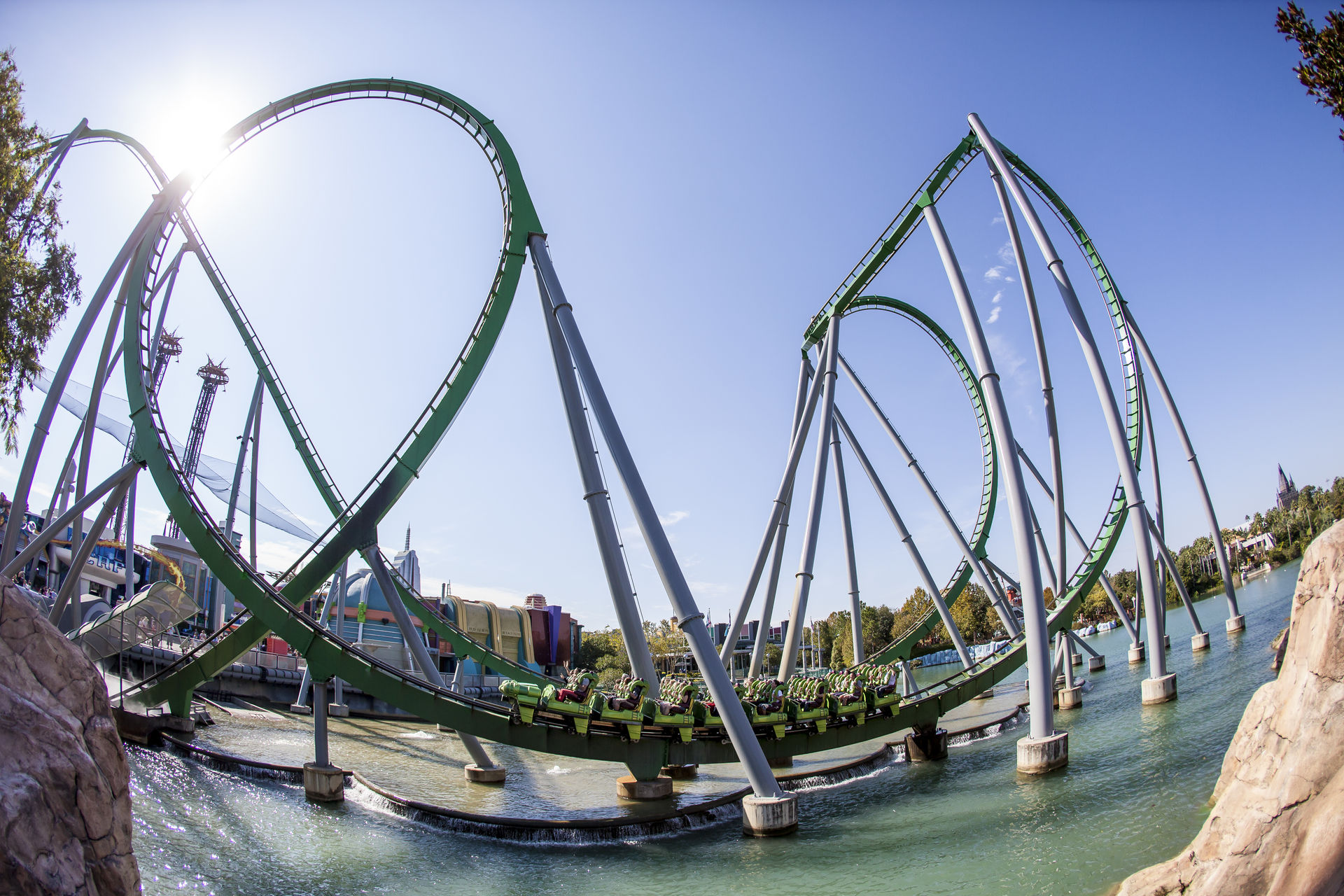 Wenn man sich nach der Mainstreet für den linken Parkteil entscheidet, kommt man direkt in die Marvel Superhero World. Eines der Aushängeschilder des Bereichs ist Hulk, der einzige B&M mit Abschuss. Dank Dreizugbetrieb war die Wartezeit nie höher als 5 Minuten, so lob ich mir das. Wenn die Reibräder beschleunigen bleibt keine Zeit mehr zum Durchatmen, die Inversionen werden sehr zügig und intensiv durchfahren. Nach 3 Wiederholungsfahrten bei sonnigen 35°C brauchten wir dann auch erstmal eine Pause. Für 13 Jahre Dauerbetrieb fuhr die Bahn erstaunlich sanft. 9/10 Punkten