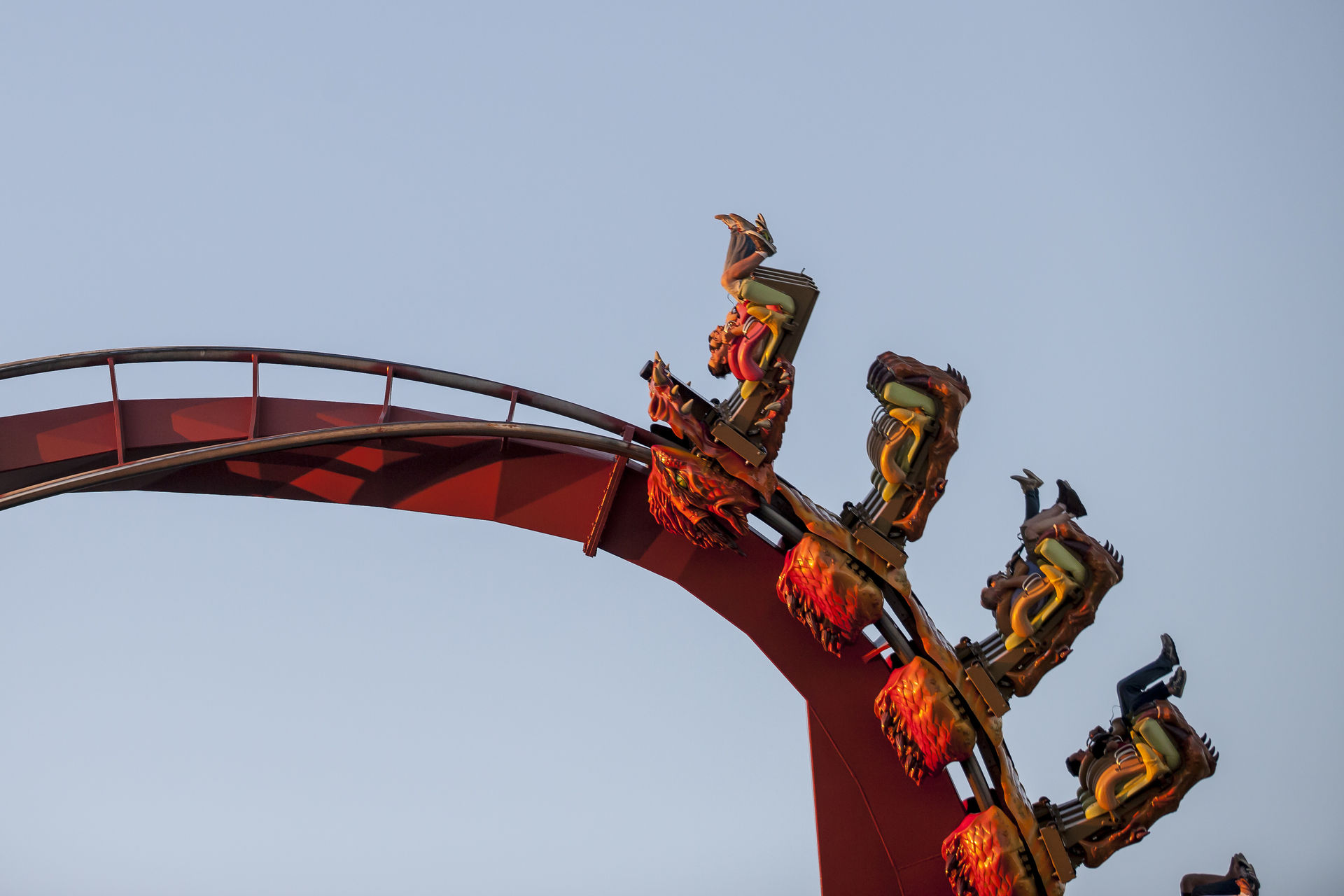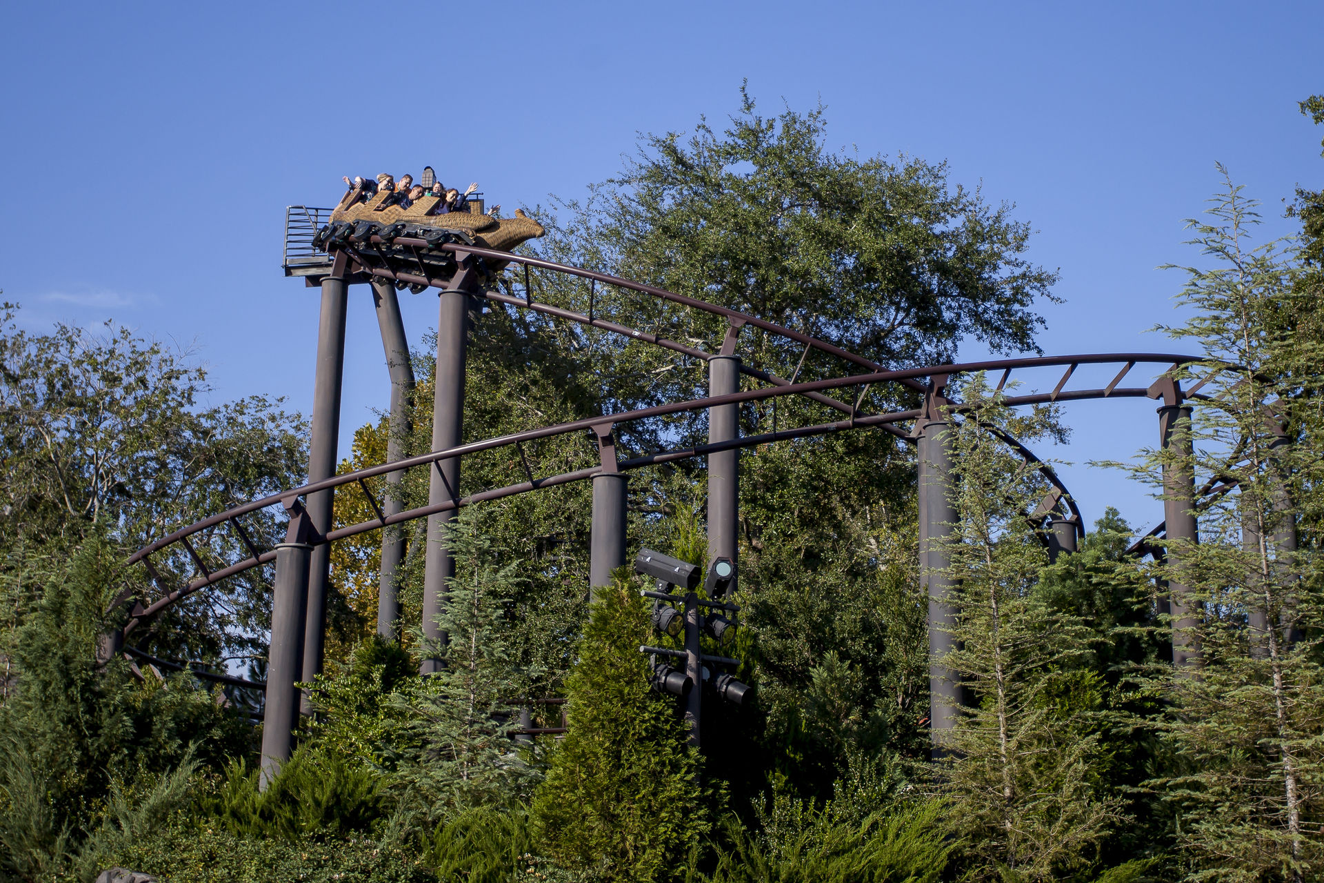 Auf die beiden B&M Inverter habe ich mich im Vorfeld am meissten gefreut, wurde jeder bitter enttäuscht. Die Warteschlange wurde sehr stimmig an den neuen Harry Potter Themenbereich angepasst, die Fahrt konnte leider nicht überzeugen. Erster Wermutstropfen: Die Züge werden nach wie vor nicht synchron gestartet, sondern mit mindestens 20-30 Sekunden Abstand. Damit verliert das Layout automatisch an Charme, denn die Fahrt an sich ist nicht besonders spannend - egal auf welcher Seite. Vielleicht war ich aber auch einfach nur von Montu verwöhnt. 6/10 Punkten
