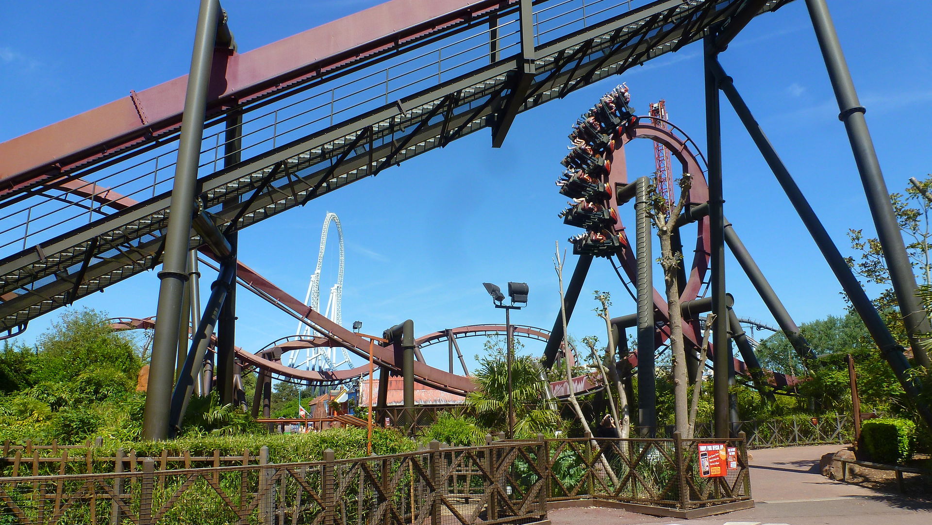Der Park macht auf mich im allgemeinen einen sehr sauberen Eindruck. Die Thematisierung war etwas spärlicher, aber trotzdem waren die Bahnen sehr schön in Szene gesetzt. Gerade Nemesis Inferno fand ich sehr schön in den „Dschungel“ integriert, wenn natürlich auch nicht in den Dimensionen wie im PHL.