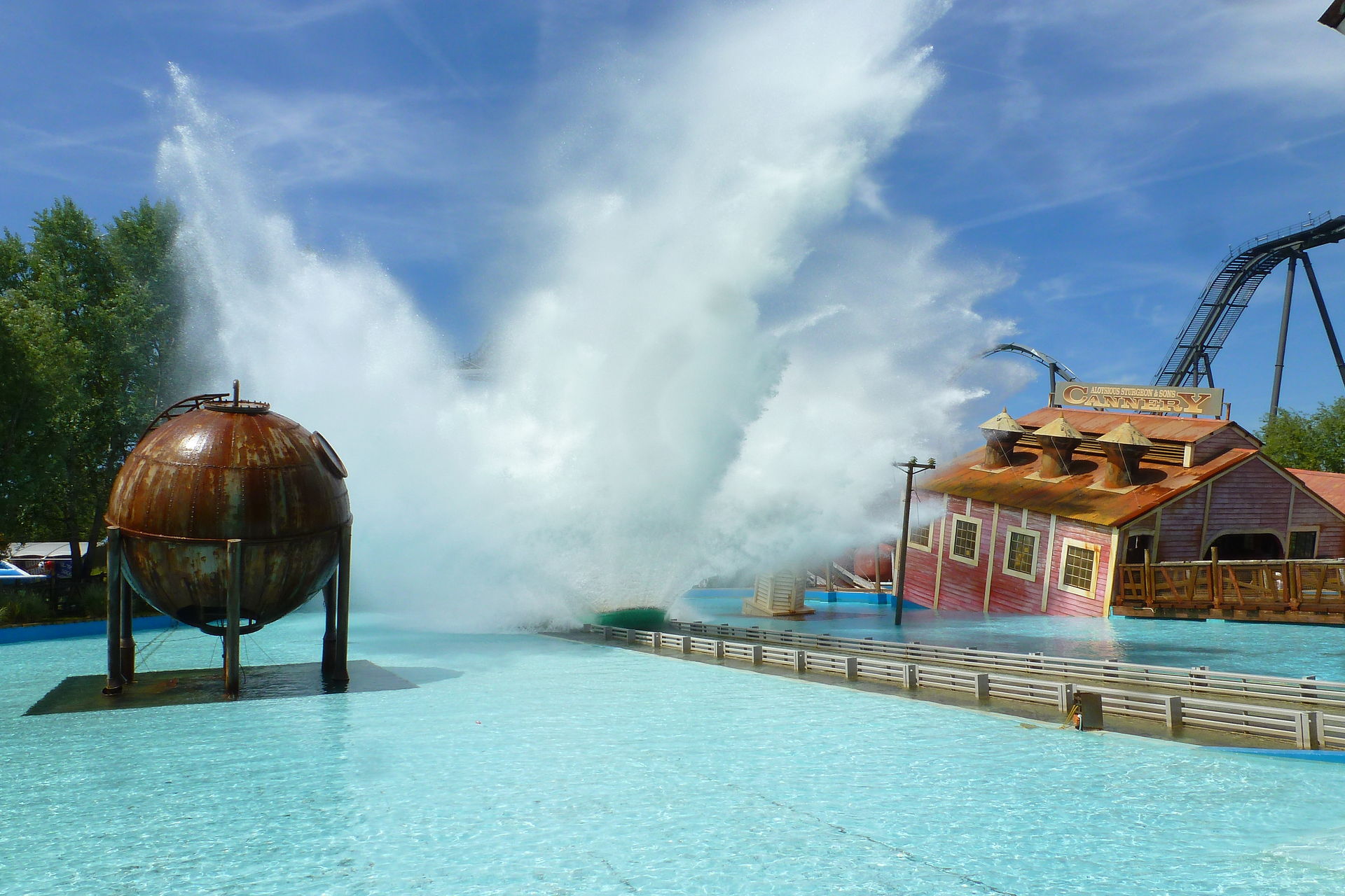 Danach ging es Richtung Collossos und SAW. Als wir erst bei Collossus ankamen waren dort ebenfalls 80 min Wartezeit angeschrieben. Sehr komisch, wenn man bei anderen Bahnen fast durchlaufen konnte und bei anderen übermäßige Wartezeiten herrschten. Ich befürchtete schon ein Desaster wie in Port Aventura, wo man genötigt wurde Fast-Pässe zu kaufen um überhaupt in den Genuss der Bahnen zu kommen. Wir gingen daher erst mal zu SAW, wo wir leider feststellen mussten, dass die Bahn nach den Testfahrten am morgen geschlossen wurde und leider auch nicht mehr öffnete. Man sah allerdings auch keine Mechaniker oder andere Mitarbeitet die bemüht wären, die Bahn überhaupt noch zum laufen zu bringen. Sehr schade, da ich einen derartigen Bahntyp noch nie gefahren bin.