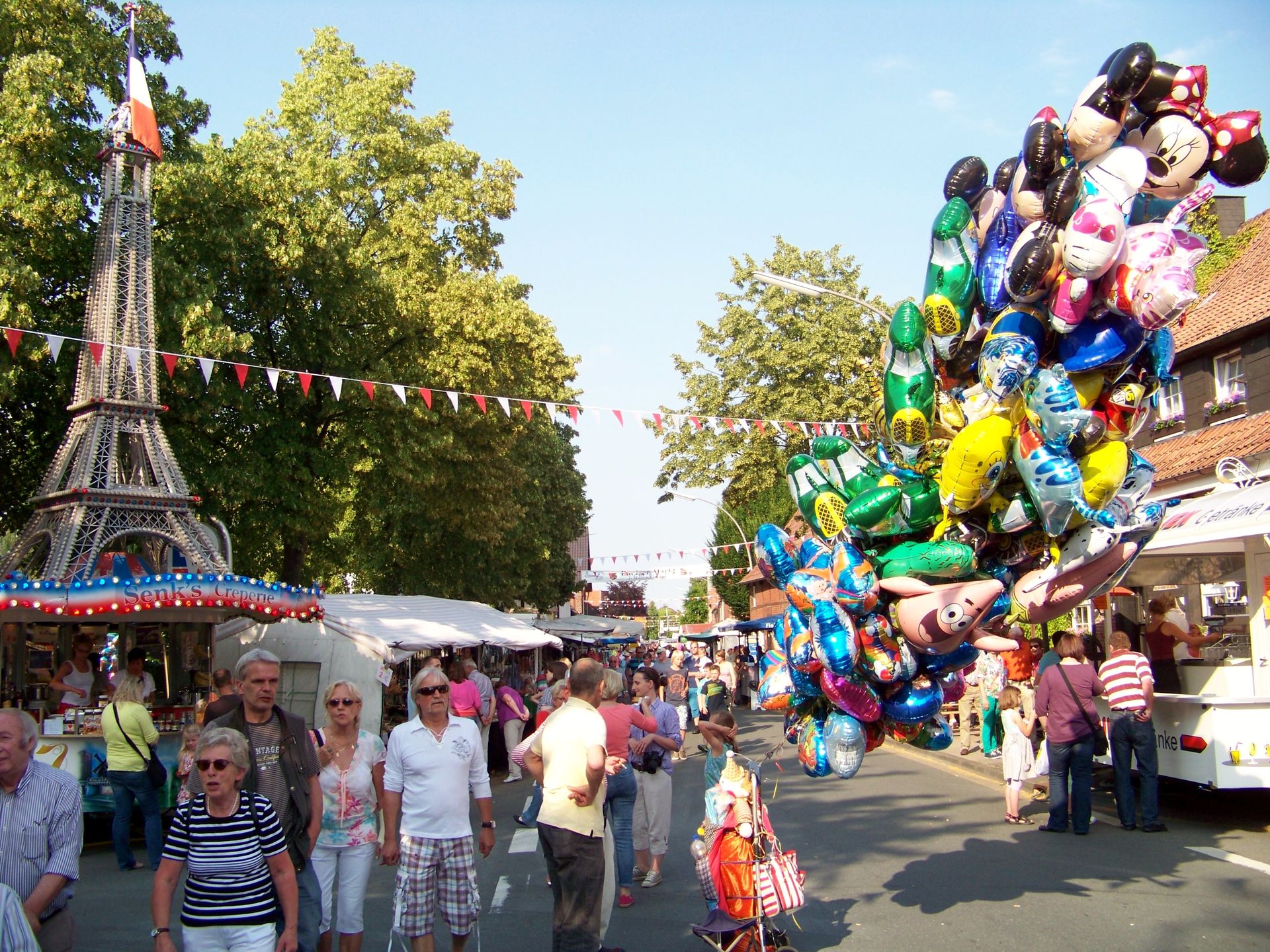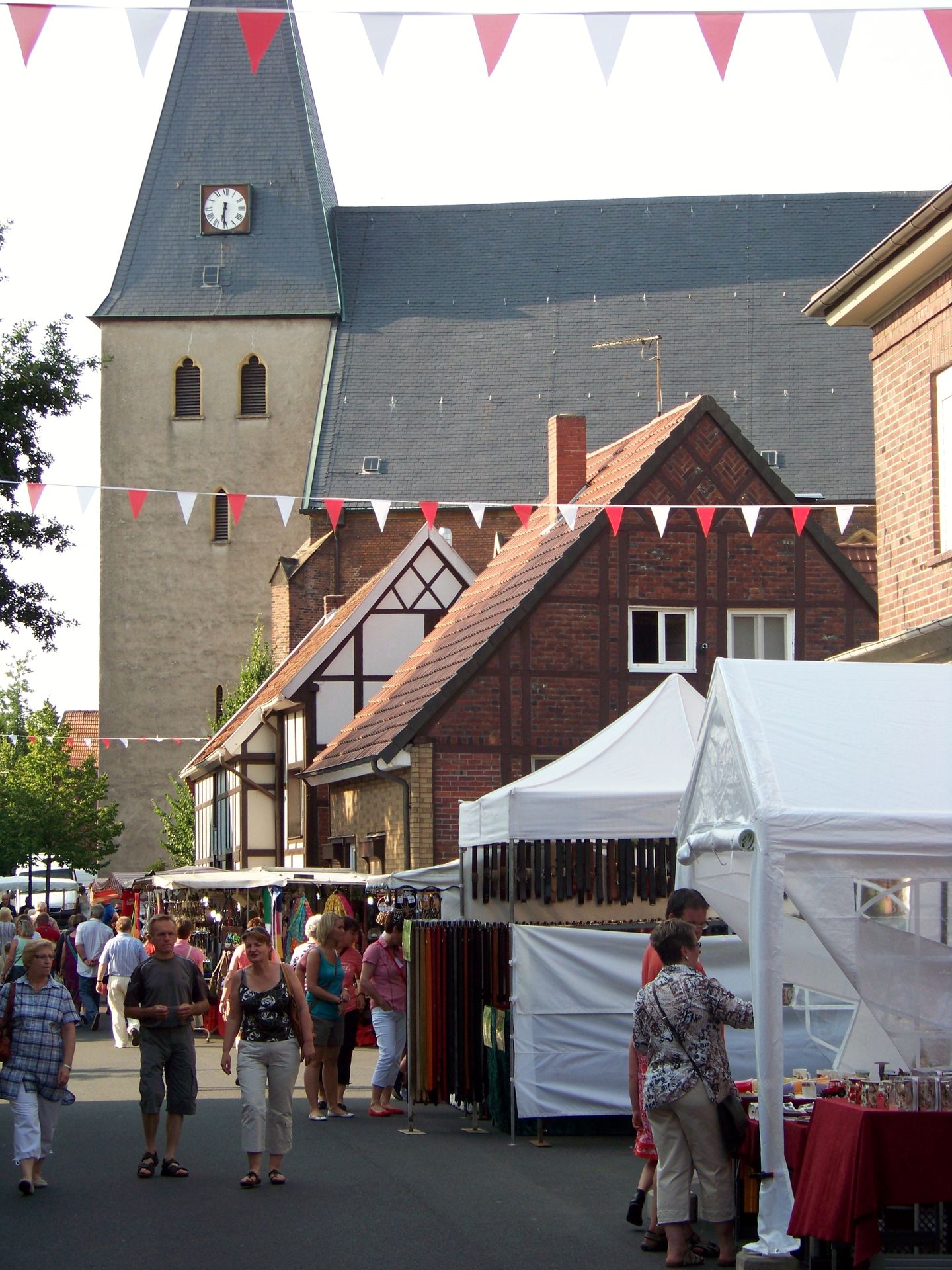 In erster Linie handelt es sich bei dem Enniger Markt um einen nicht gerade kleinen Kram- und Viehmarkt, der sich durch das gesamte Dorf erstreckt. Außer den unzähligen Krammarkts- und Essständen gibt es allerdings auch ein sehr stimmiges Kirmesareal mit Fahrgeschäften, das sich für eine eineinhalb-tägige Veranstaltung mitten unter der Woche durchaus sehen lassen kann.