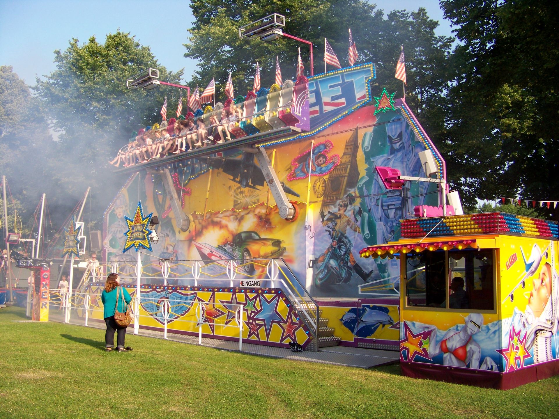 Der Platz bzw. die Wiese mit den Fahrgeschäften ist erreicht