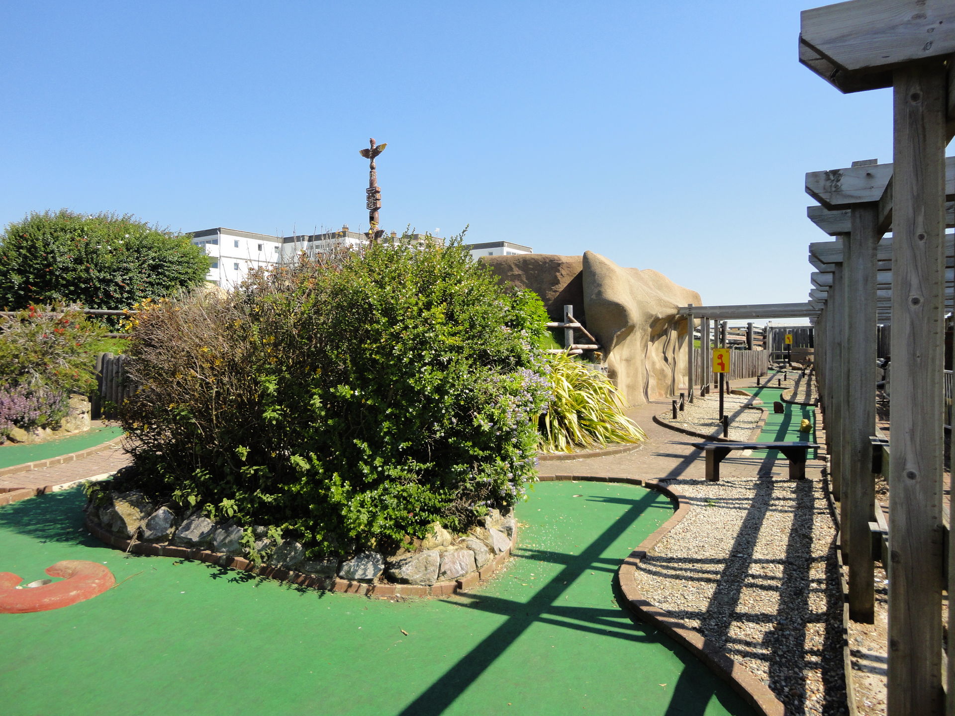Hinter dem Kiosk versteckt sich eine nett aussehende Minigolf Anlage. Wir mussten aus Zeitgründen (und Organisatorischen Gründen, da weit und Breit keine Möglichkeit sahen an Schläger zu kommen) aber drauf verzichten.