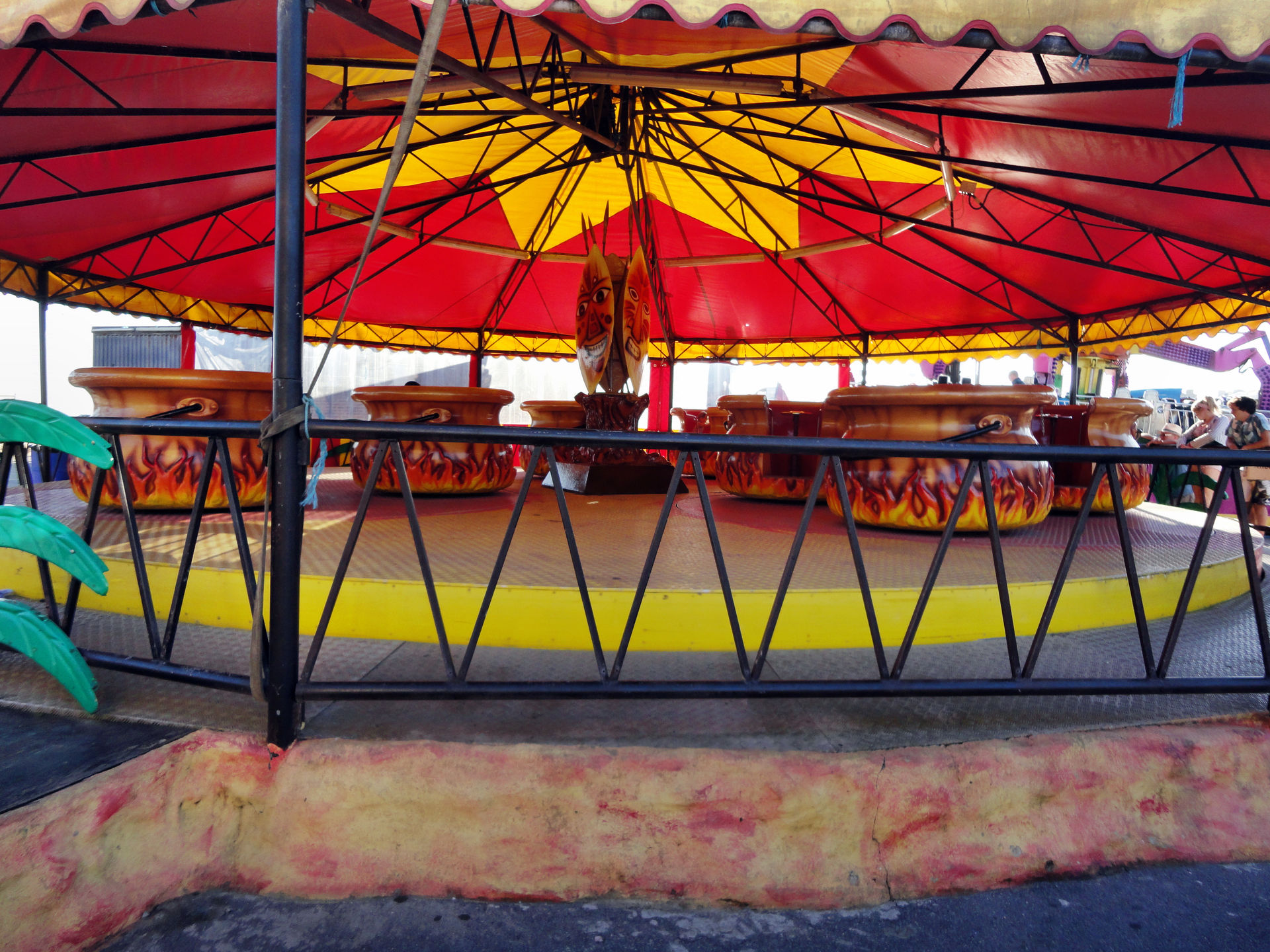 In der Mitte des Parks, unter einer großen Zeltplane, sind neben einigen Bänken einige (Kinder-) karussells zu finden.