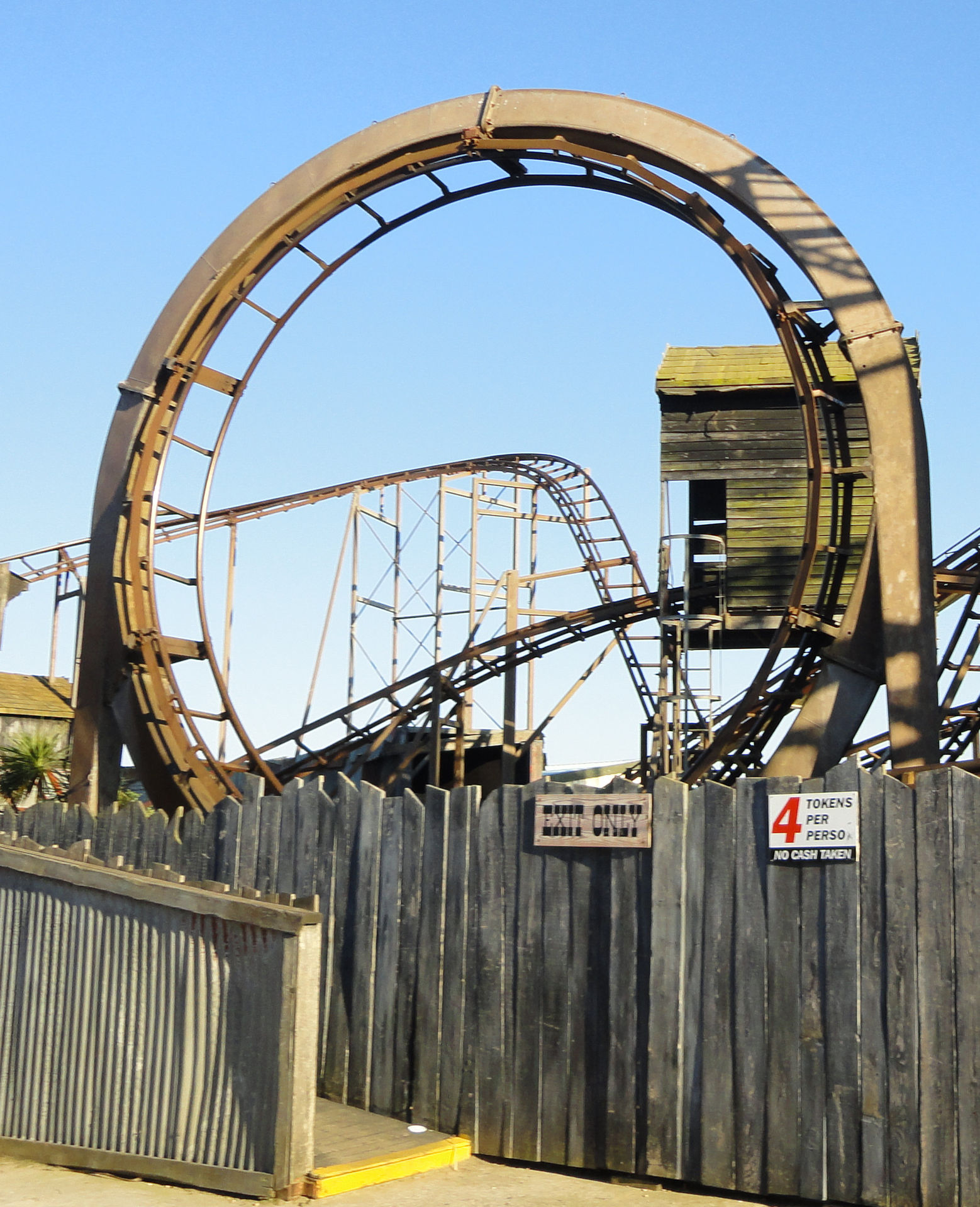 Direkt neben dem Eingang zum Pinfari Looper befindet sich die dritte Achterbahn des Parks. Diese hört auf den Namen Woody's Children's Roller Coaster und ist vom Hersteller Cavazza Diego. Dieser hat mir vor Ort nichts gesagt, im Nachhinein hab ich dann aber raus gefunden, dass ich nicht nur am selben morgen im Fort Fun Amusement Park eine baugleiche Bahn des selben Herstellers gefahren bin, sondern auch vor vielen Jahren in Rhyl. In Rhyl damals war mein erster Kontakt mit englischen Seaside Parks. Eigentlich ein angemessenes Ende für eine Seaside Park Tour. Allerdings – das nehme ich mal vorweg – folgte am nächsten Tag noch eine Kirmesbahn.