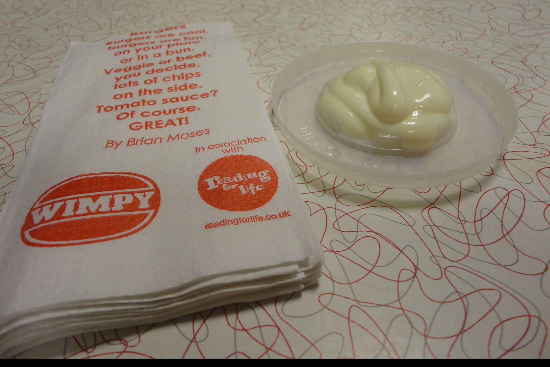 Das Restaurant stellte sich als Filiale von Wimpys heraus. Ich hatte in Erinnerung, dass nur positives über diese Kette gesagt wurde, aber das was wir da bekamen ging gar nicht. Geschmacklich nicht und optisch schon gar nicht. Ich halte es z.B. nicht für normal, dass einem die Mayo zu den Pommes auf einem umgedrehten Getränke-Becher serviert werden. Einmal und nie wieder…