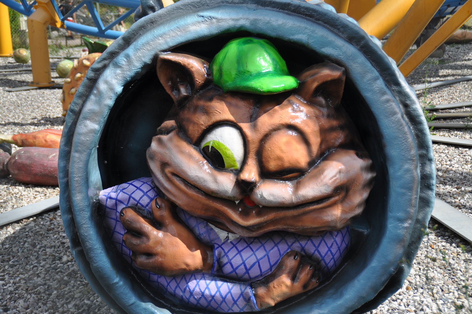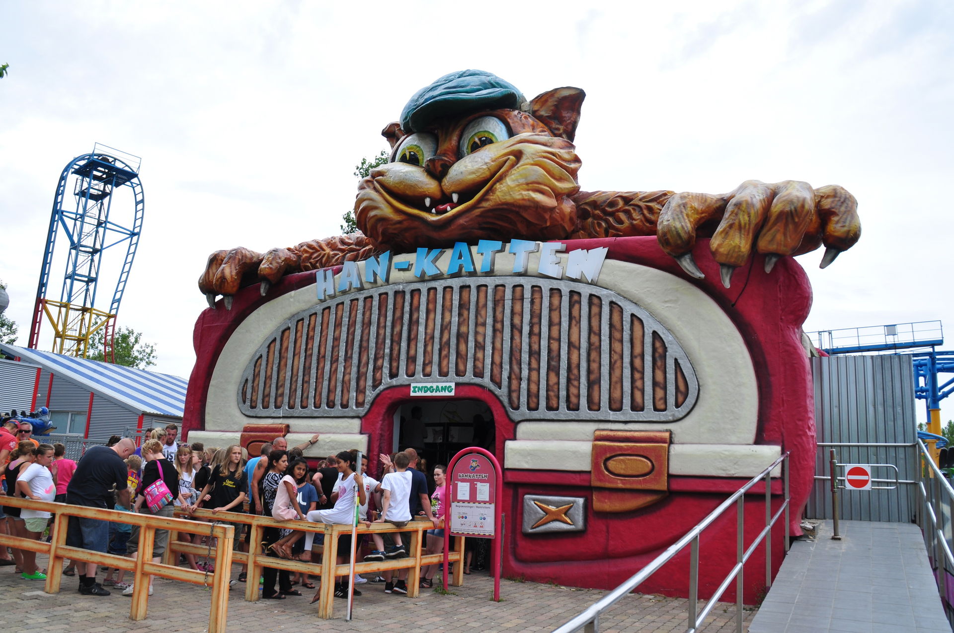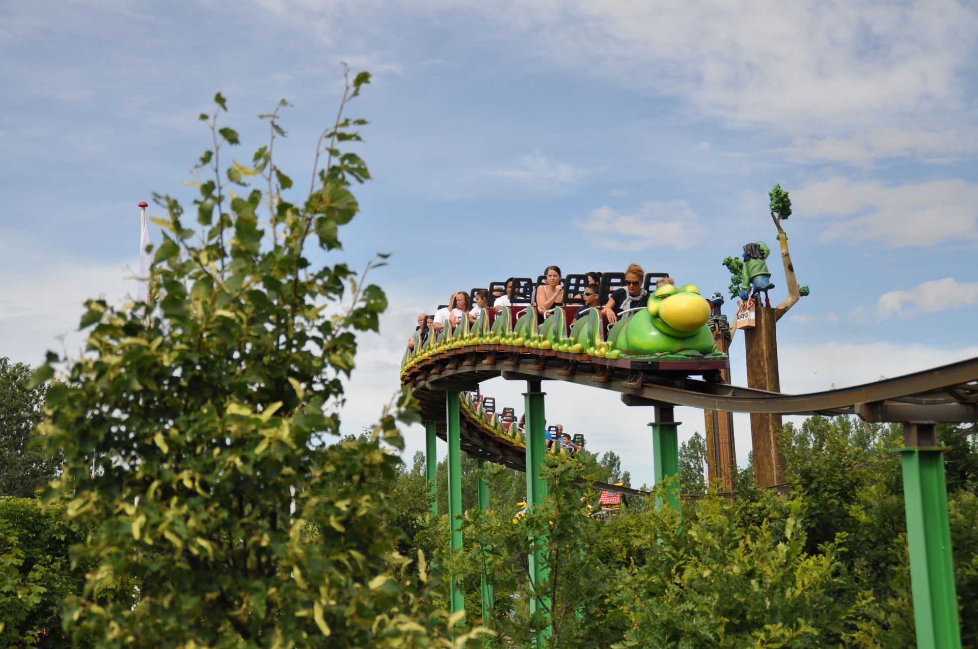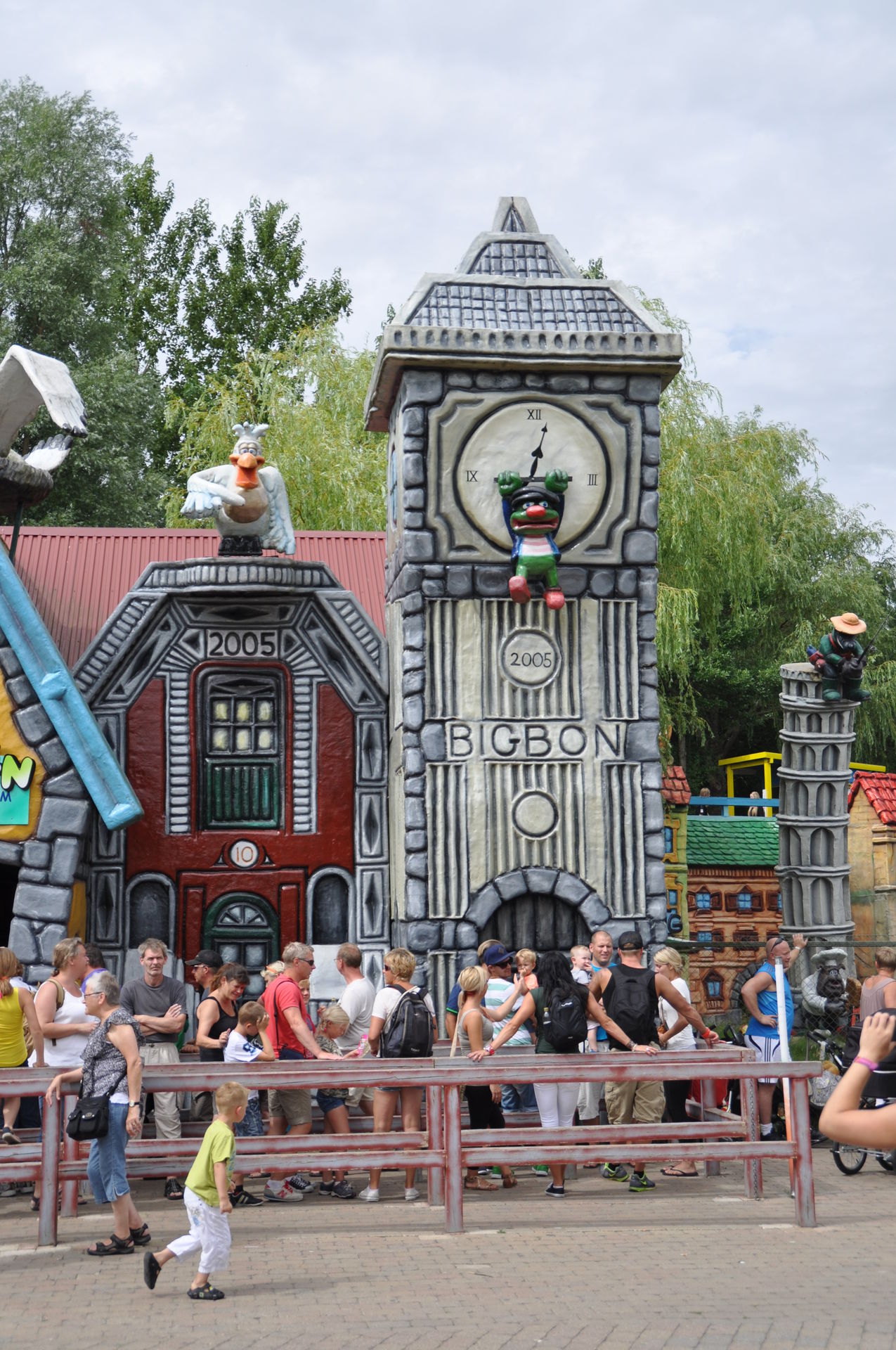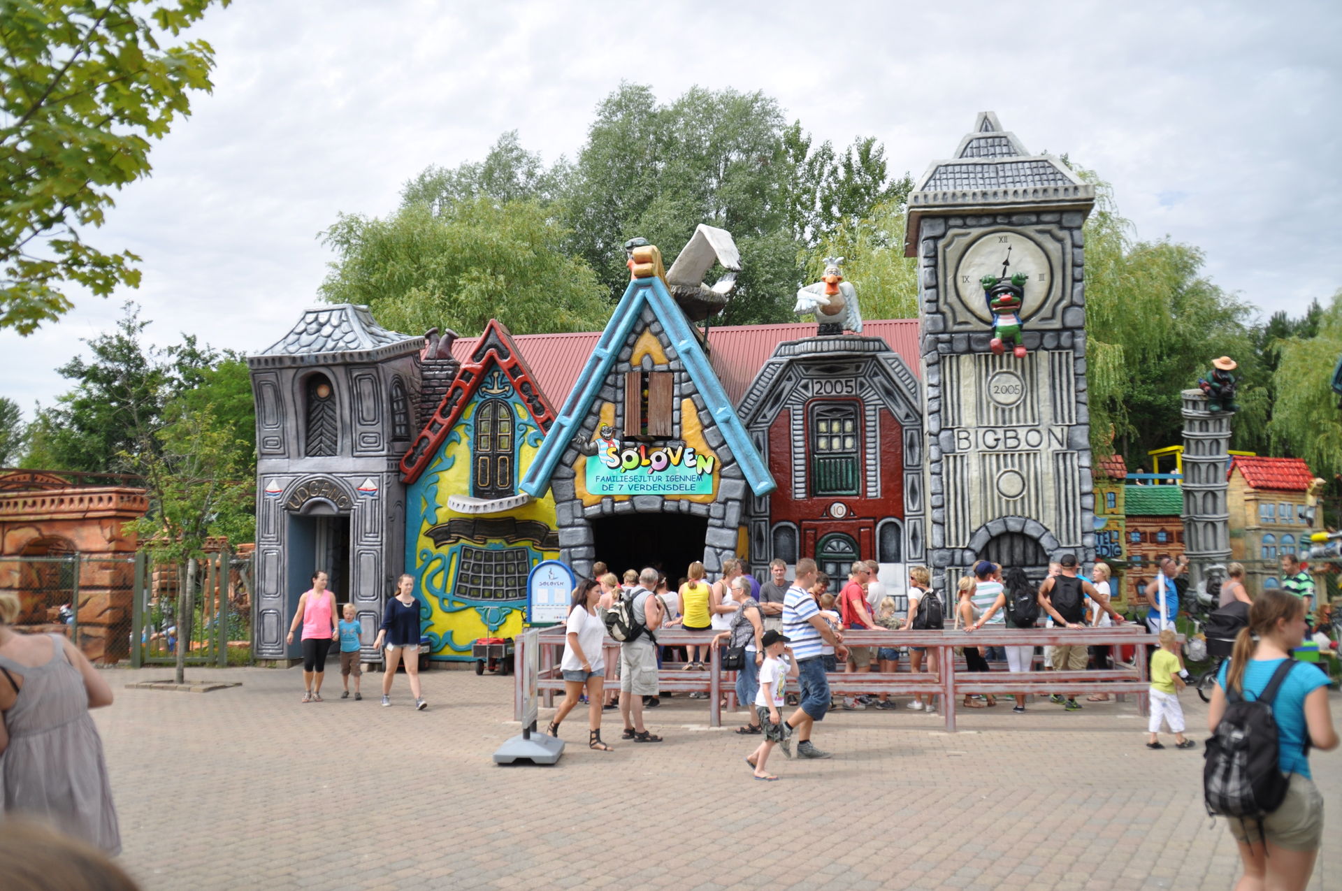 Nach einem ausgiebigen Frühstück auf dem noch komplett autofreien Parkplatz ging es um Punkt 10 Uhr in den Park, welcher ja für seinen etwas eigenen Humor und eine lustige Art der Gestaltung bekannt ist. Vorbei an den ganzen Kinderfahrgeschäften am Eingangsbereich machten wir uns auf den Weg in den hinteren Parkteil.