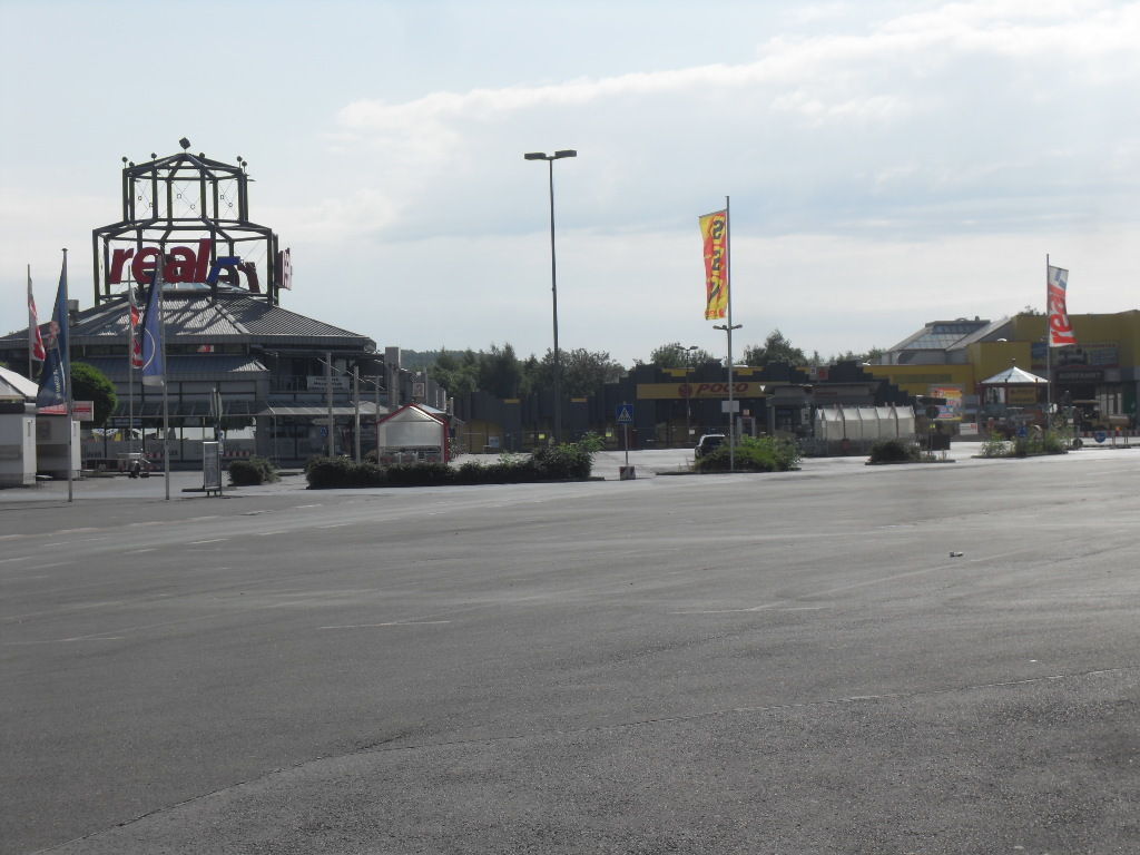 Vorbei am Einkaufszentrum