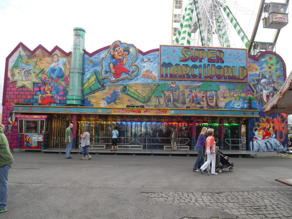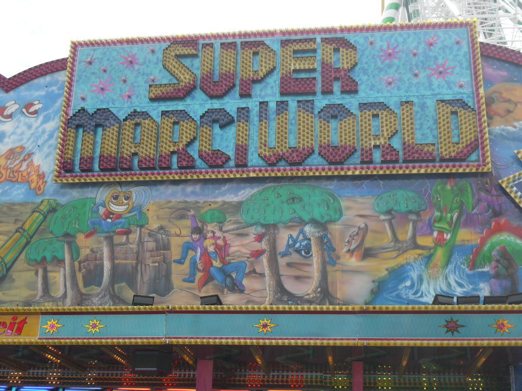 Zum ersten Mal gesehen habe ich an diesem Tag das Laufgeschäft "Super Marci World", ehemals "Super Mario World". Himmel, sieht das schlimm aus. Die ganze Fassade macht nach der Umbenennung einfach keinen Sinn, da sollte man sich vieleicht schnellstmöglich mal ein ganz neues Konzept ausdenken. "Super Marci World" geht jedenfalls gar nicht.