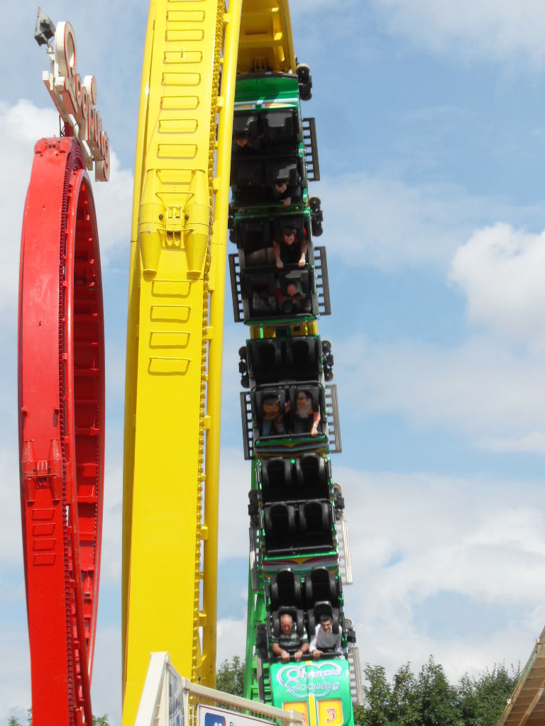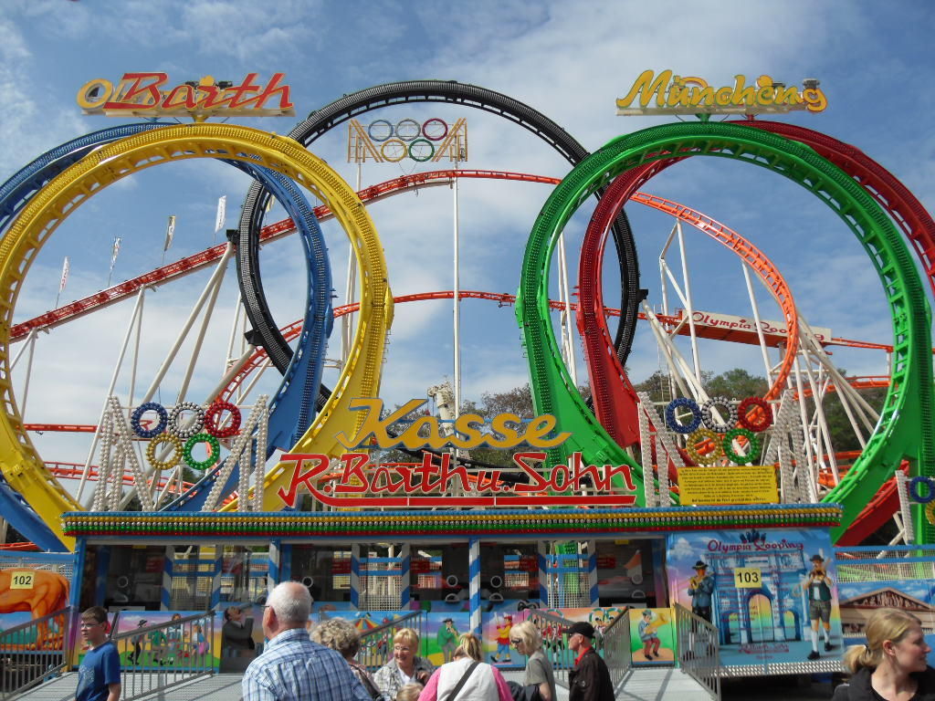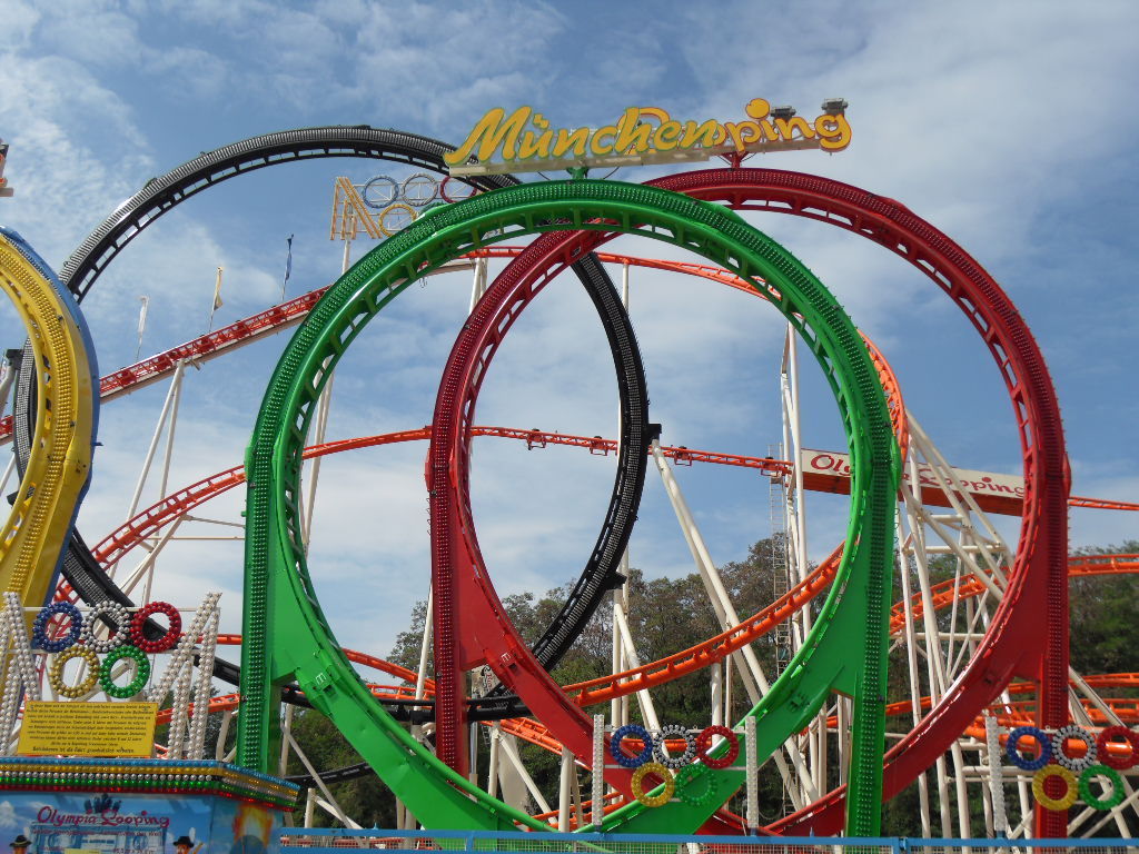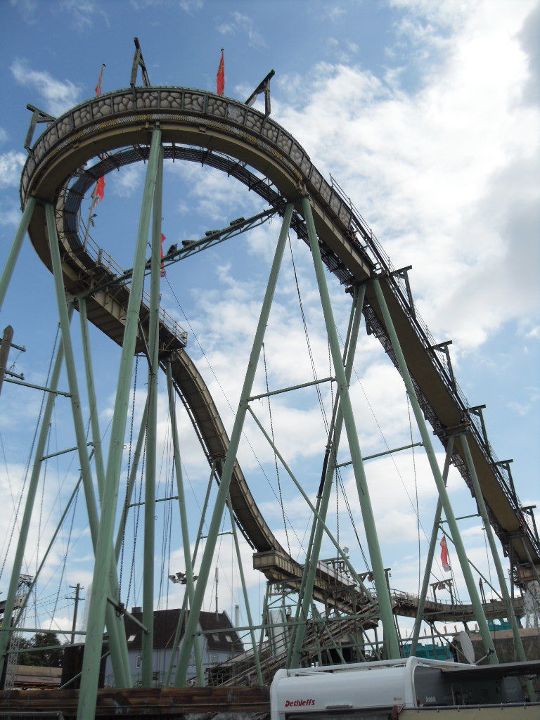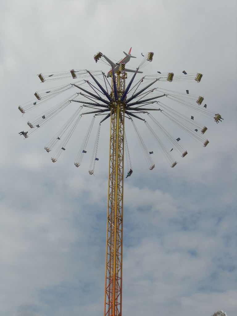 Am Olympia Looping angekommen hatte ich die Hälfte des Platzes geschafft. Nun machte ich eine lange Pause mit lecker Pferde Sauerbraten und ausgiebigen Zugucken und fotografieren beim Olympia Looping. Anschließend ging es weiter über den Platz.