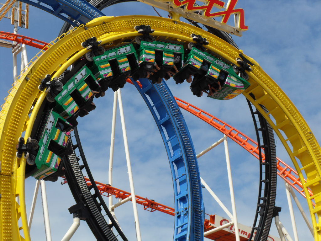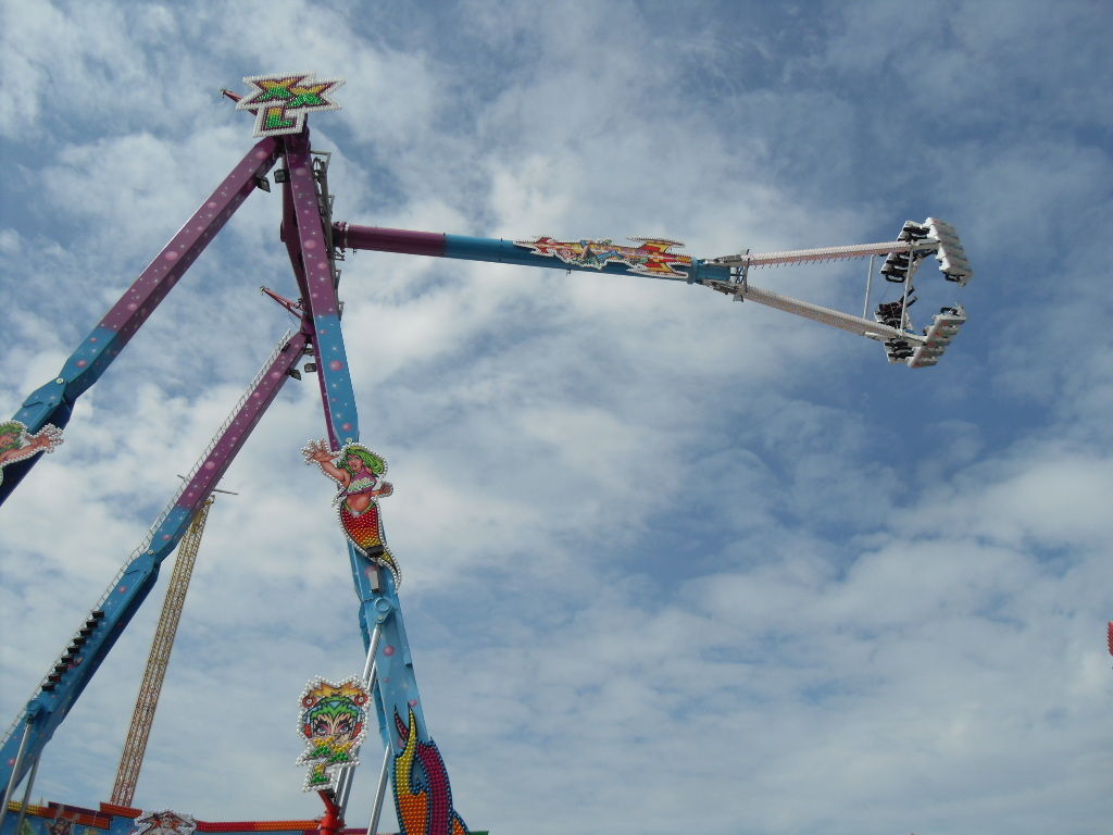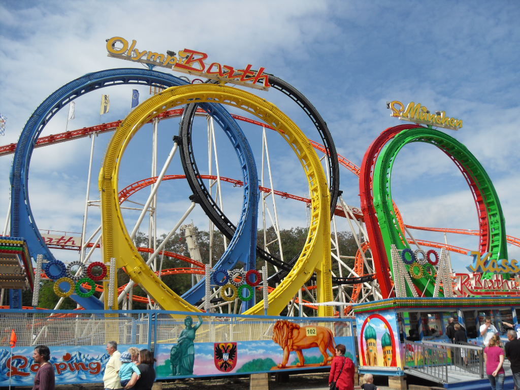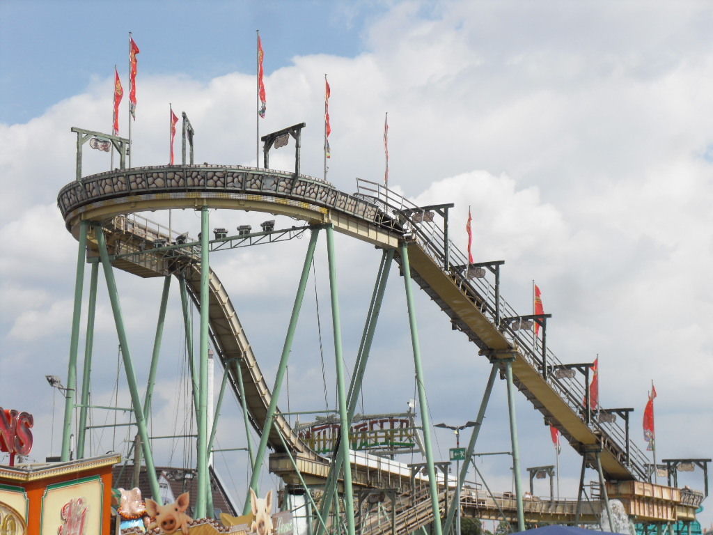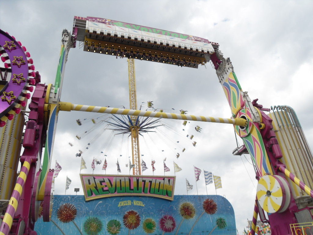 Am Olympia Looping angekommen hatte ich die Hälfte des Platzes geschafft. Nun machte ich eine lange Pause mit lecker Pferde Sauerbraten und ausgiebigen Zugucken und fotografieren beim Olympia Looping. Anschließend ging es weiter über den Platz.