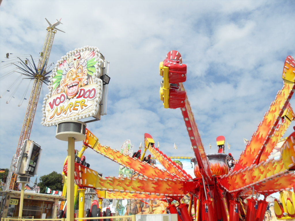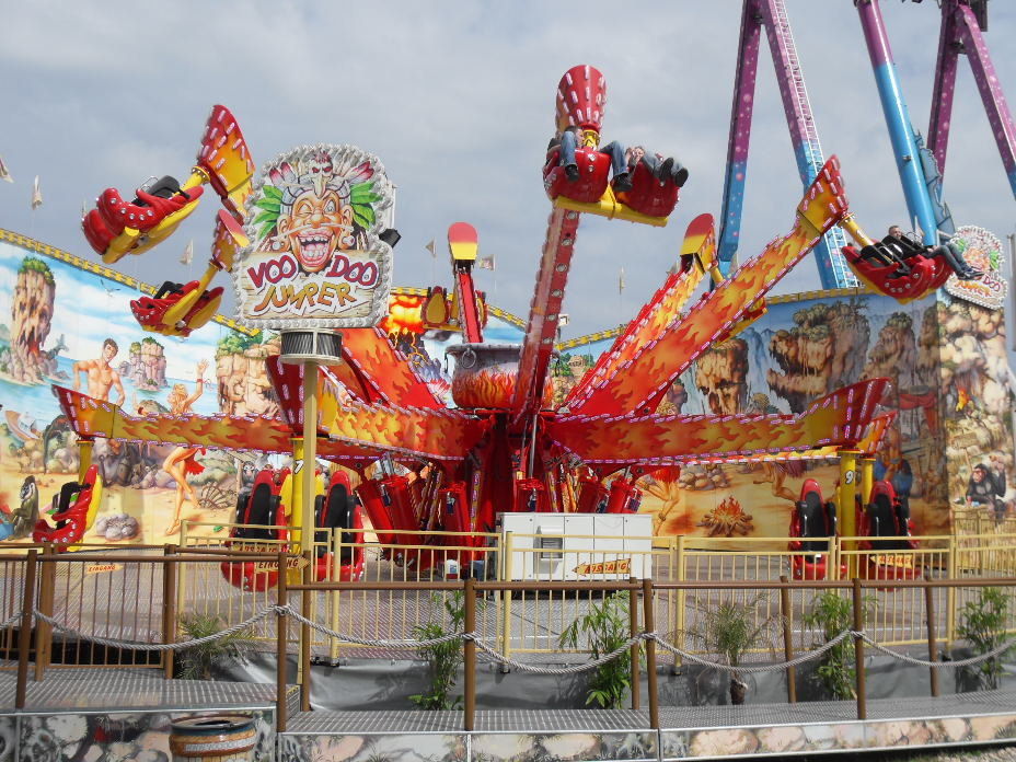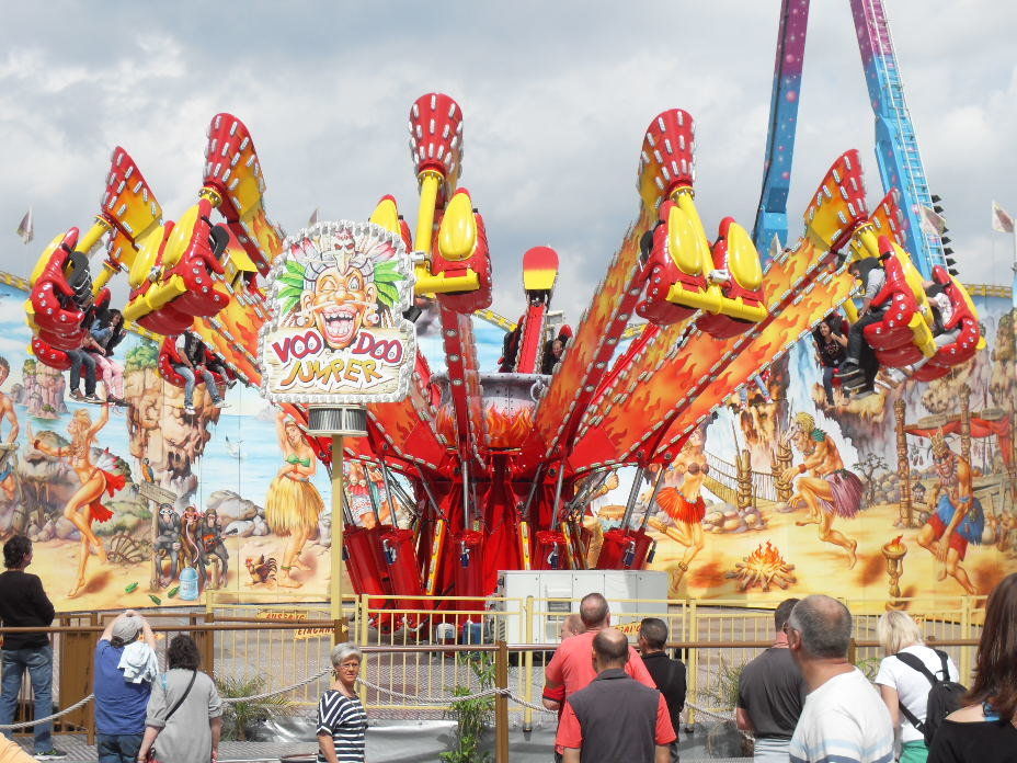 Danach machte ich erstmal einen knapp 15 minütigen Halt am Voodoo Jumper. Zum einen weil ich ein paar Fotos brauchte, zum anderen, weil das Verweilen hier einfach richtig Spaß gemacht hat, da die Rekommandierung einfach nur grandios war mit vielen tollen Sound Samples, coolen Sprüchen und toller Interaktion mit den Fahrgästen. So muss man ein Fahrgeschäft steuern. Richtig, richtig gut!