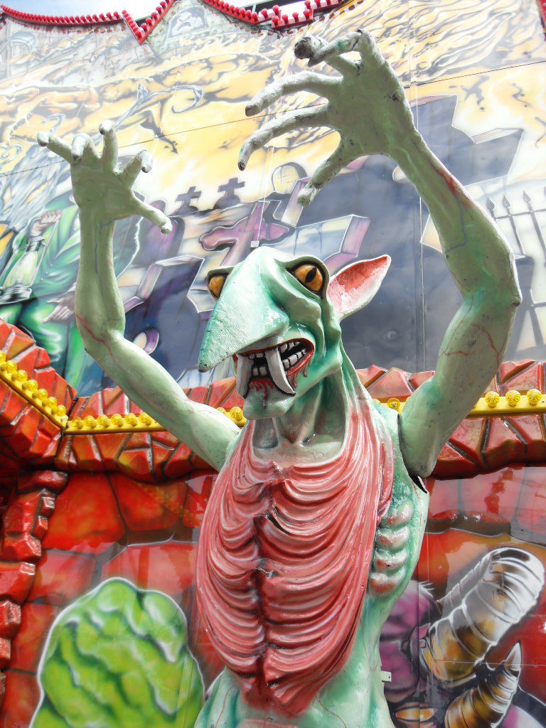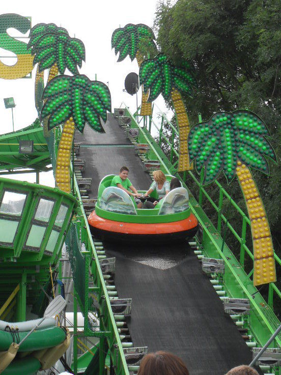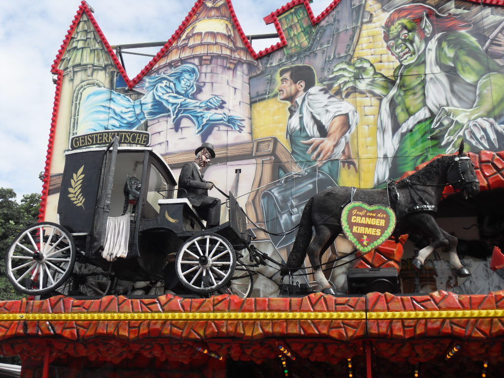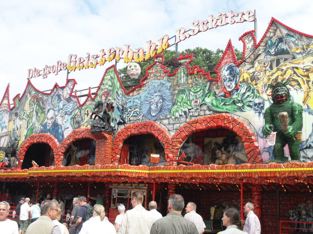 Ebenfalls(leider mal wieder) vor Ort: Die große Geisterbahn. Der Geisterbahnsektor in Crange kennt leider keine Abwechslung. Das ist einfach schade weil es einfach bessere Geisterbahnen in Deutschland gibt als die, die man ständig hier antrifft. Es kommt einfach keine Abwechslung ins Spiel. Auf Crange kennt man eigentlich nur "Die große Geisterbahn", "Schloss Drakula", "Geisterschlange" und "Daemonium". Warum nur, warum nur. Sehr sehr schade.