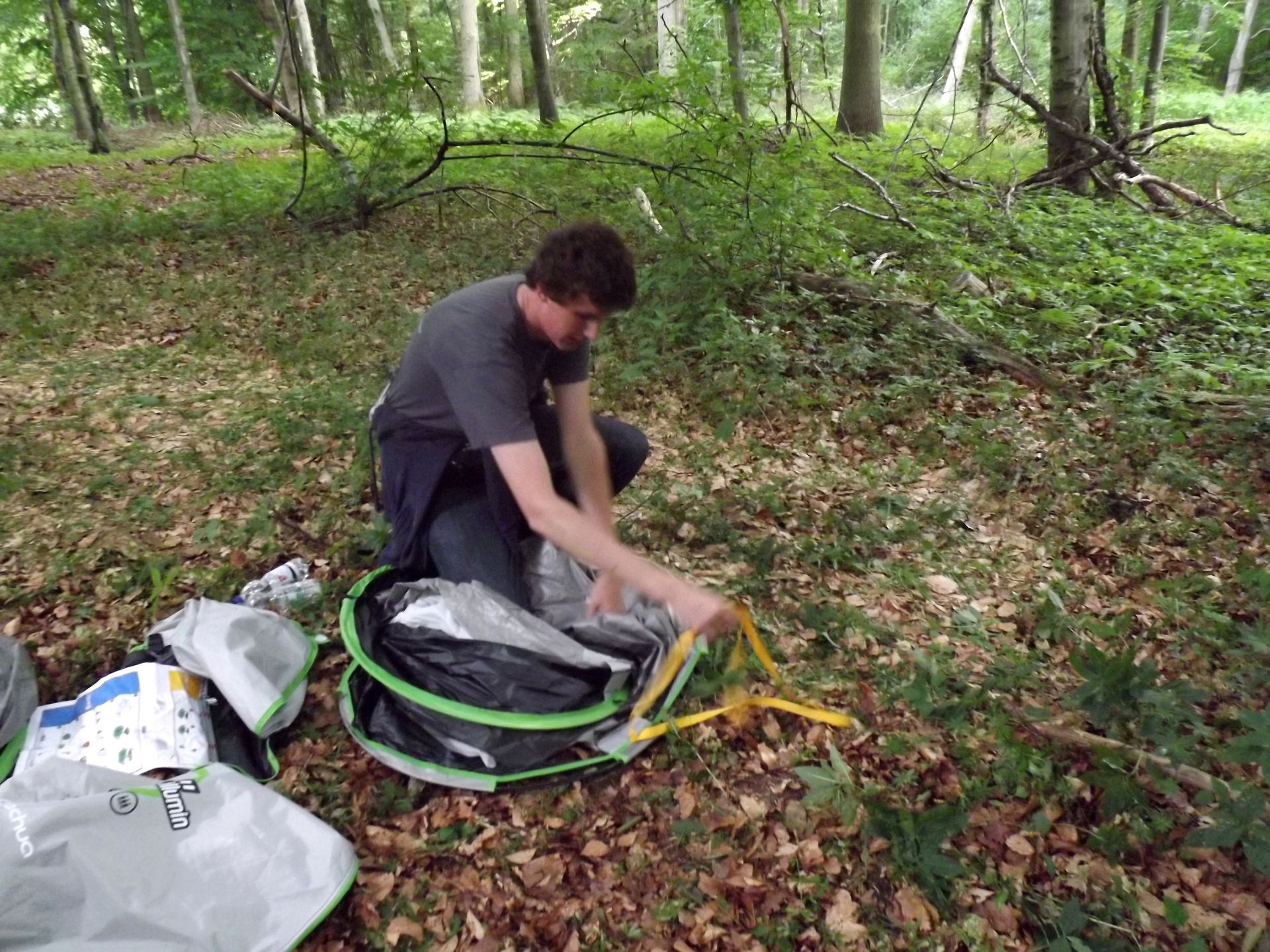 Meister Tobi kämpft erfolgreich mit dem Zelt!