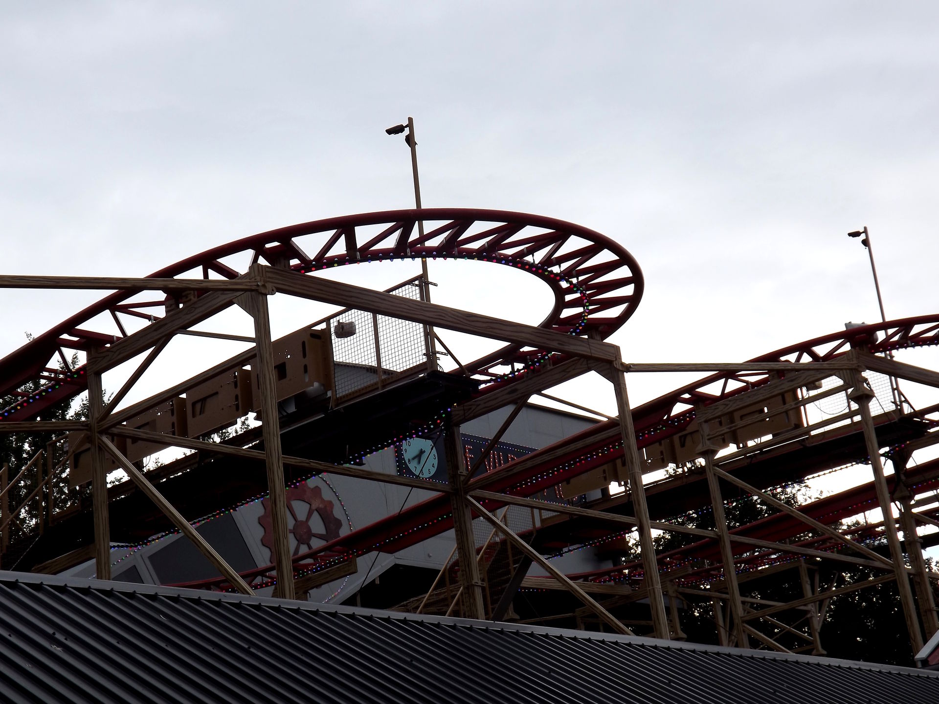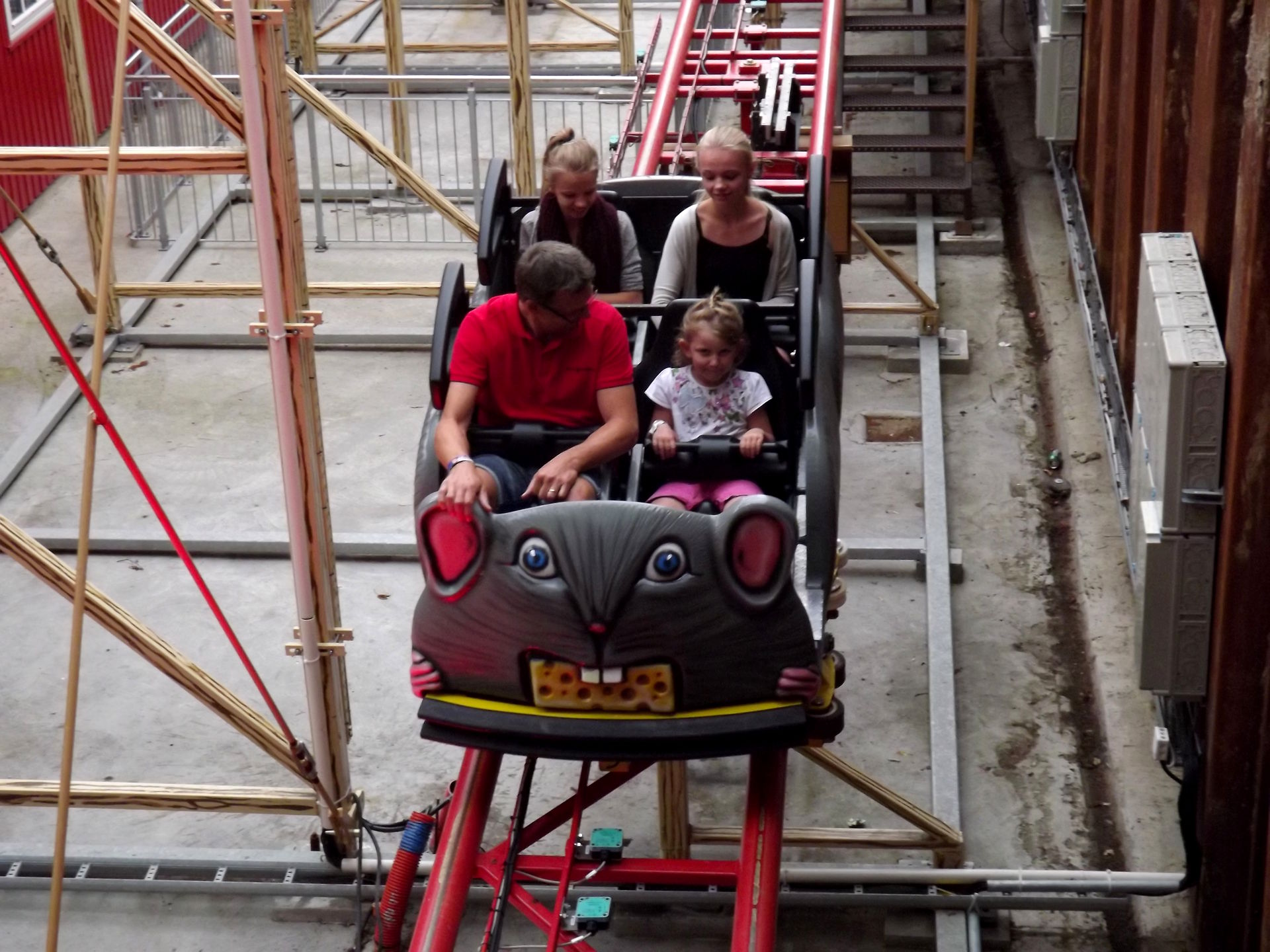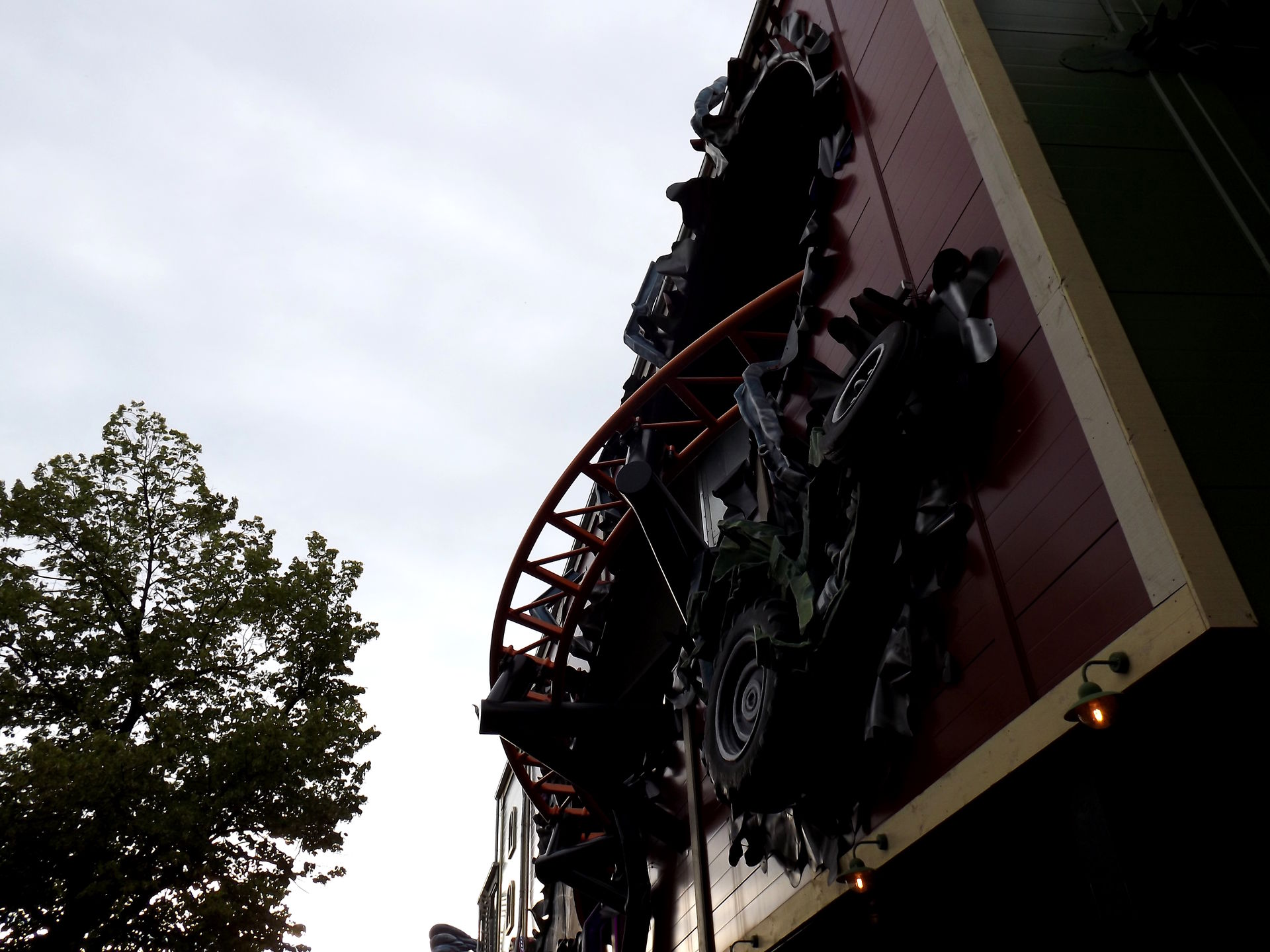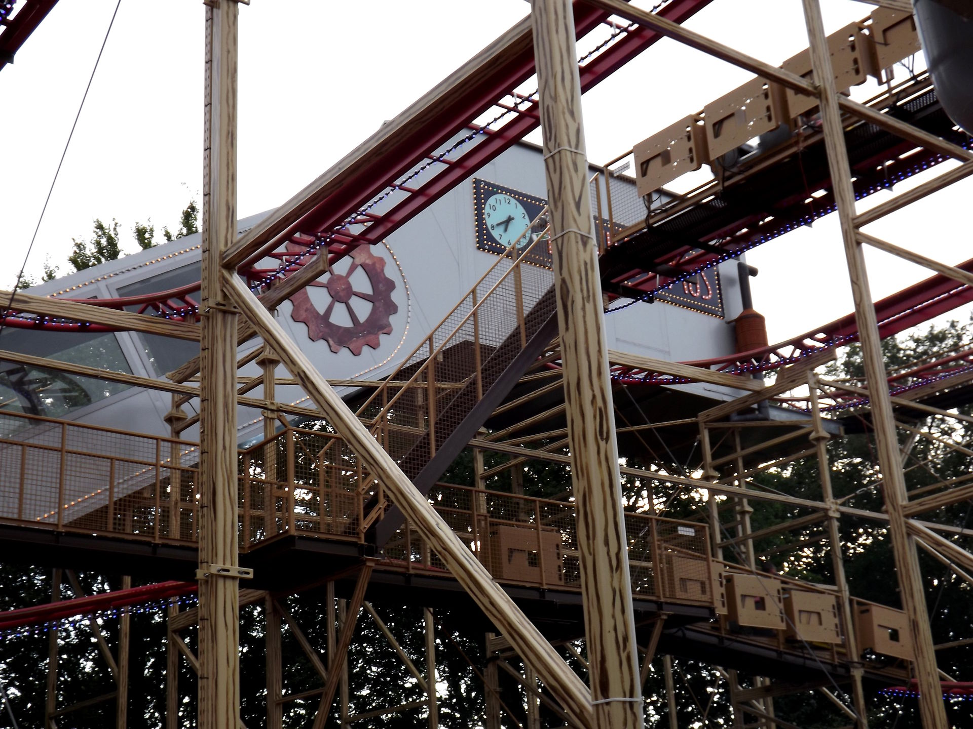 Direkt gegenüber von Tornado ist der Eingang von der historischen Holzachterbahn Rutschebanen, die leider inzwischen keinen Bremser mehr hat und modernisiert wurde. Die
