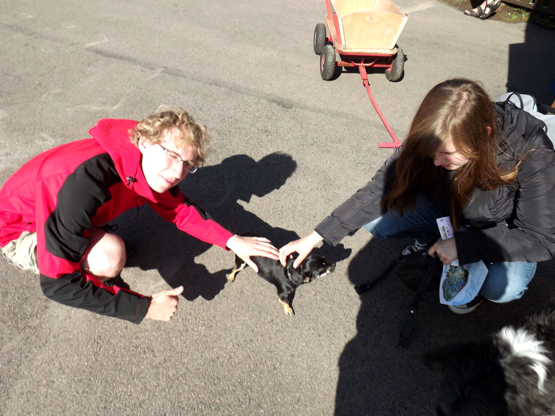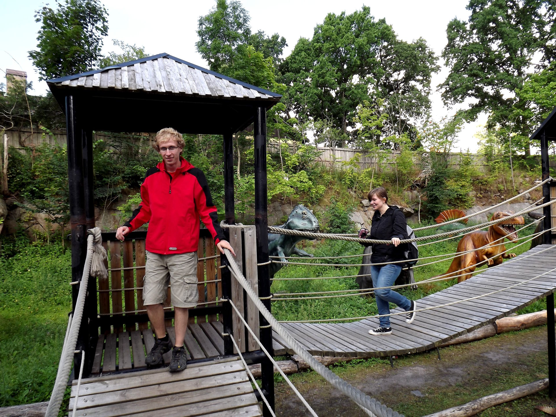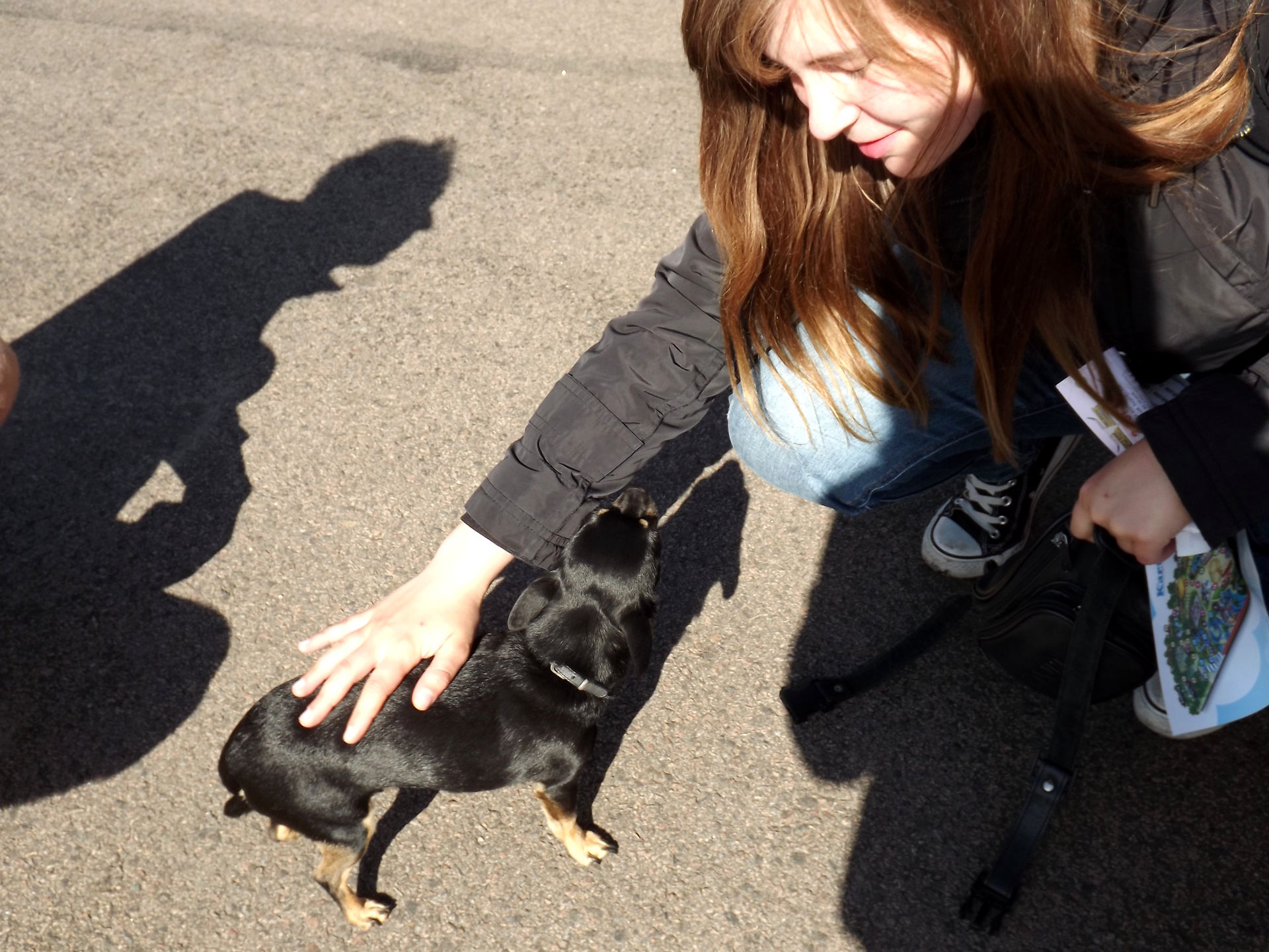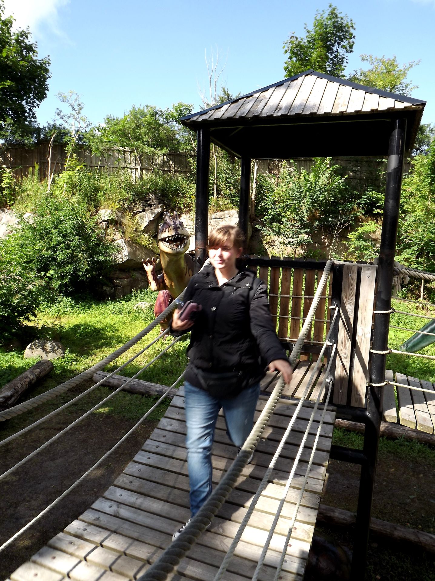 Wie erwartet machte der Park um 10 Uhr auf, wir hatten also noch eine gute halbe Stunde Zeit und konnten erst einmal frühstücken. Eine halbe Stunde später ging es also wieder zum Eingang, diesmal mit Marie, die ziemlich begeistert von dem Hund war.