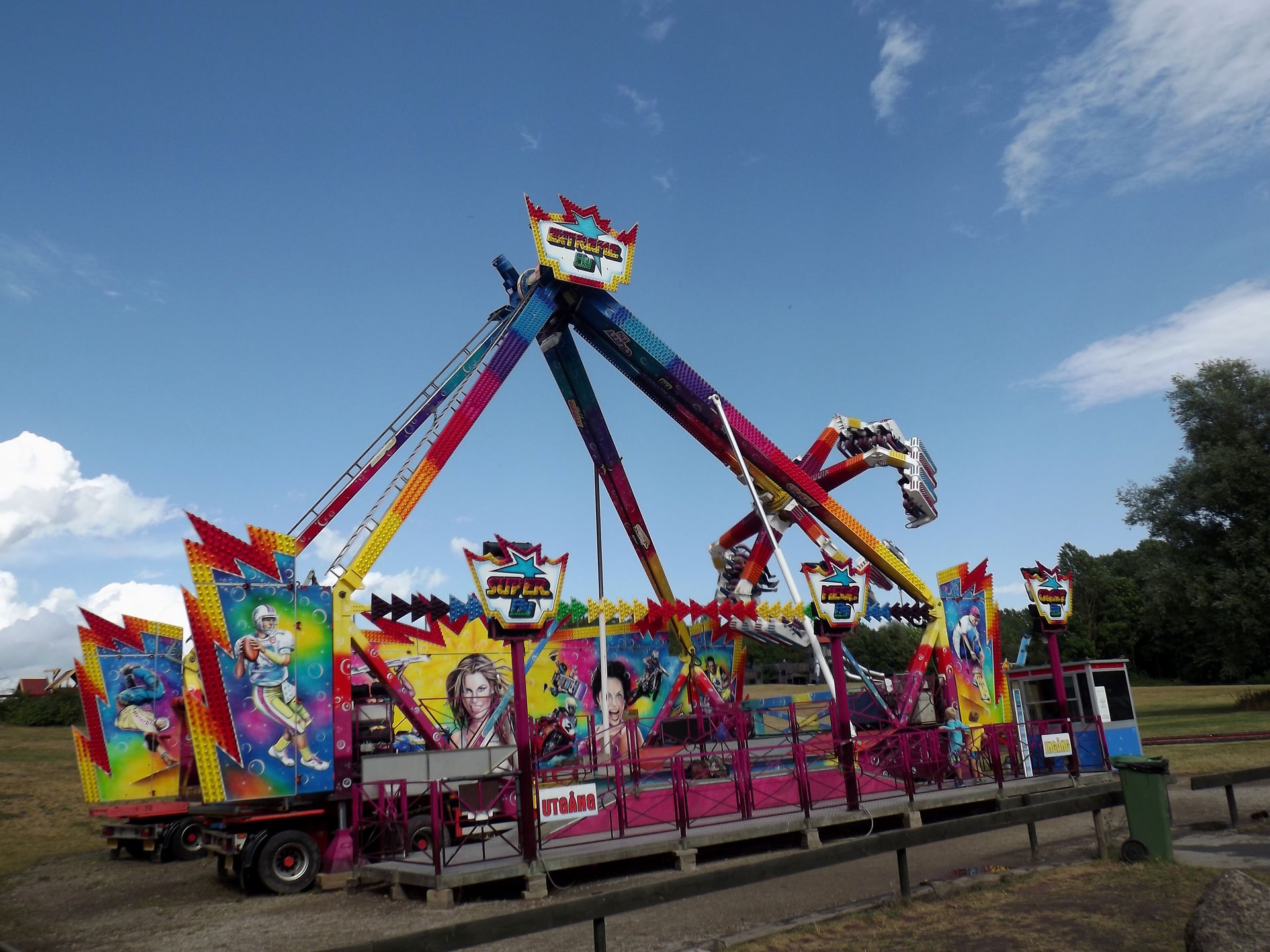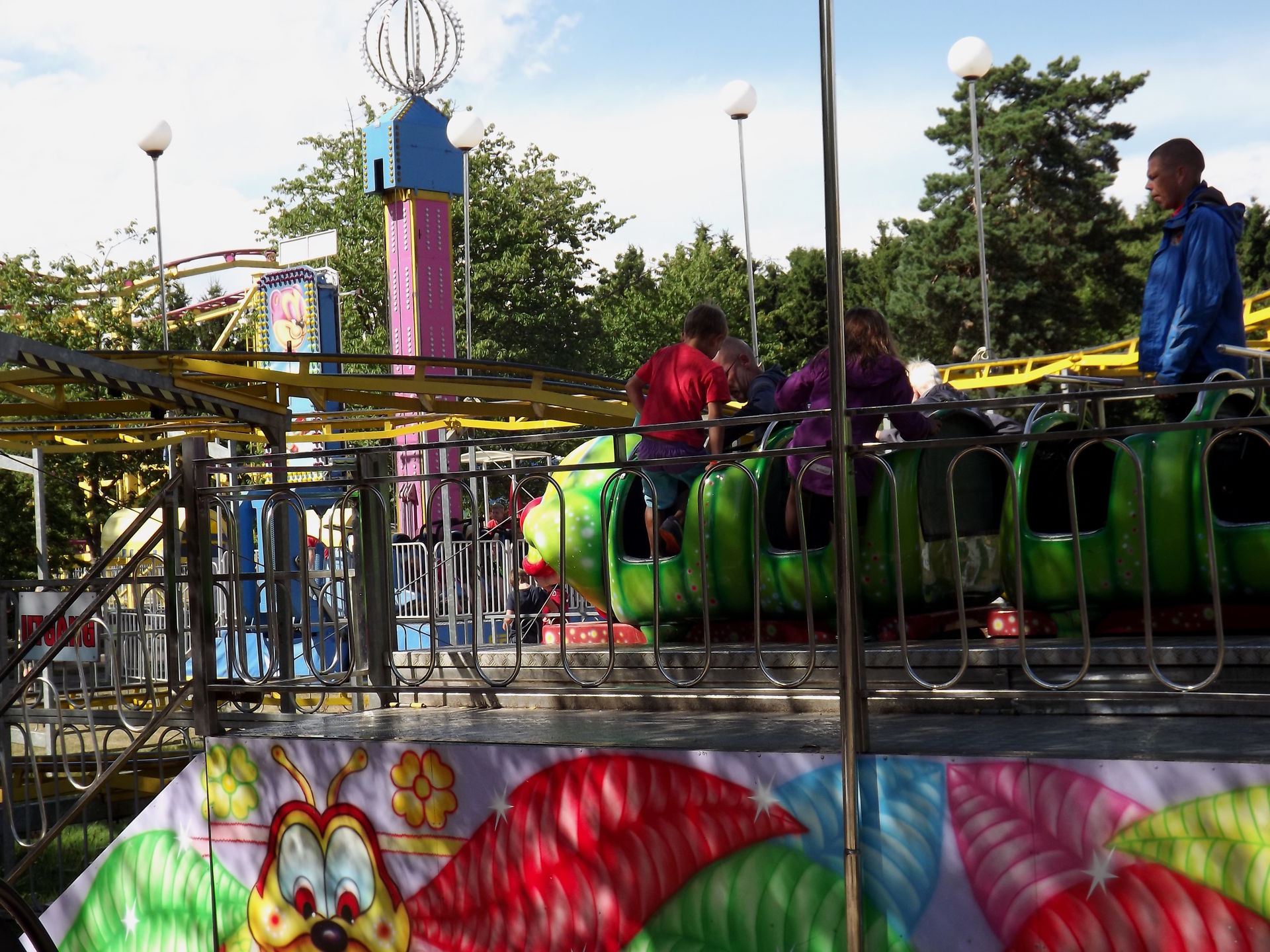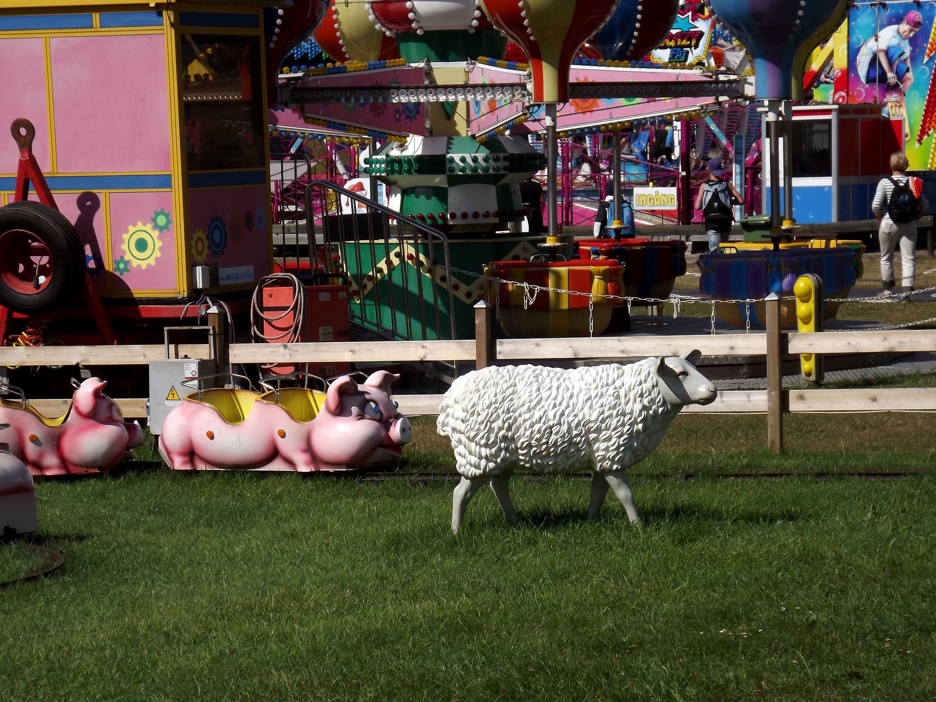 DSCF0730... mit ein paar alten Kirmesattraktionen mitten auf dieser Wiese. (Der blaue Himmel im Hintergrund war übrigens auch wirklich nur im Hintergrund)