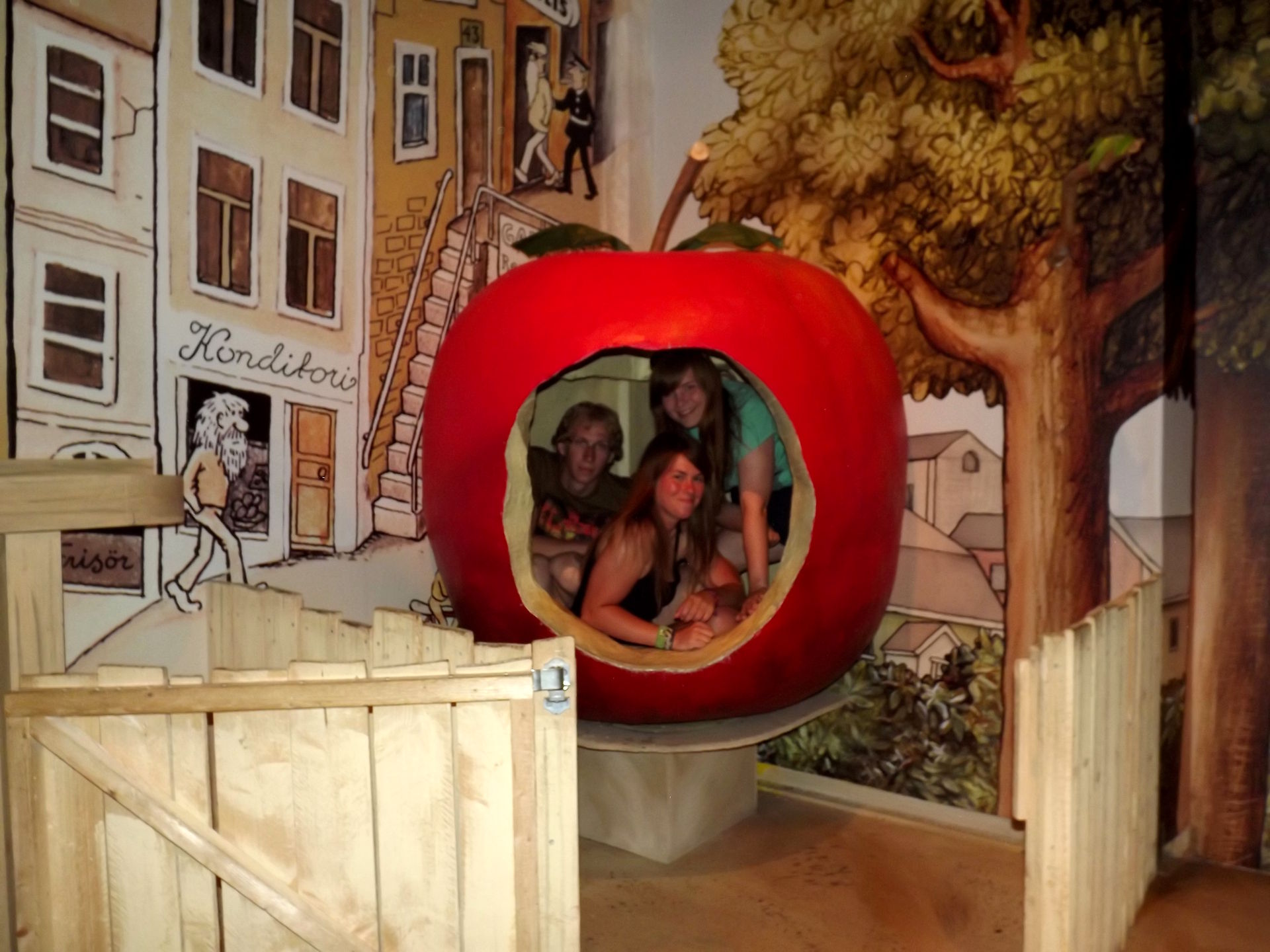 Junibacken ist eigentlich für ganz kleine Kinder ausgelegt, denn im Grunde ist es ein sehr gut thematisierter Indoor Spielplatz mit Geschichten von Astrid Lindgren. Der Eintritt war umgerechnet etwa ca. 12 und beinhaltet ein Ticket für den Sagotåget (Geschichts-Zug), aber dazu später mehr. Erst einmal haben wir uns das Kinderparadies näher angesehen.