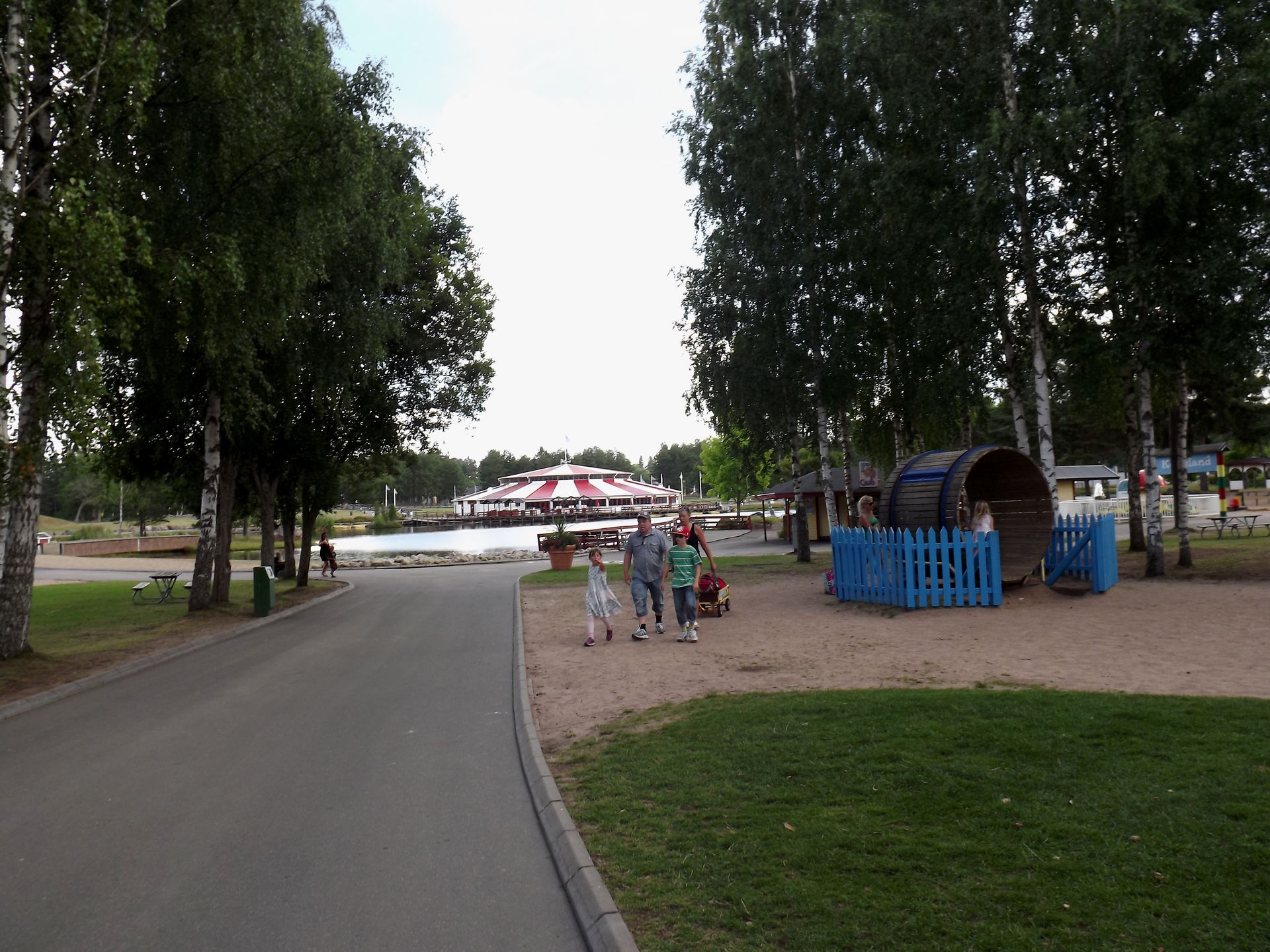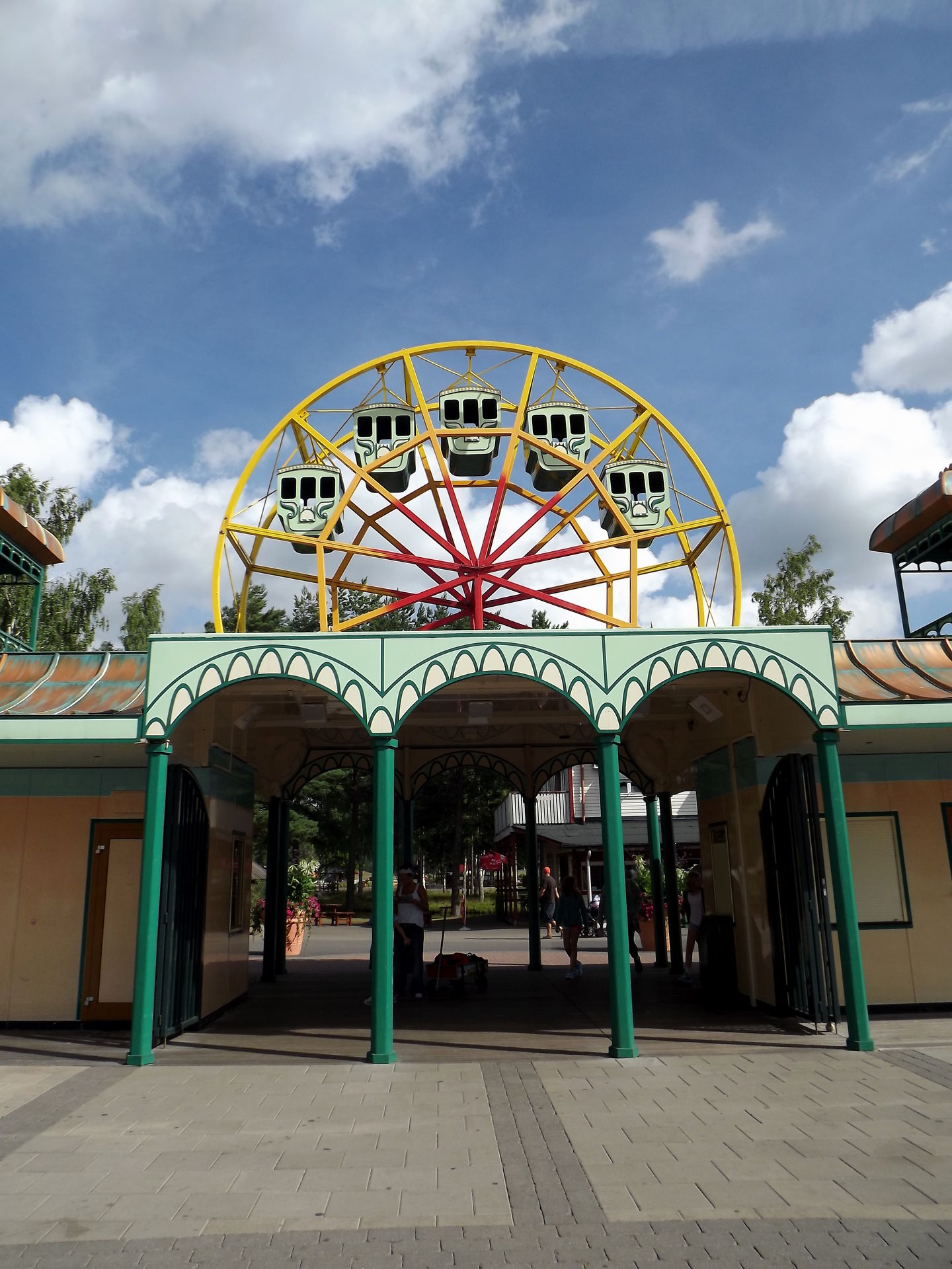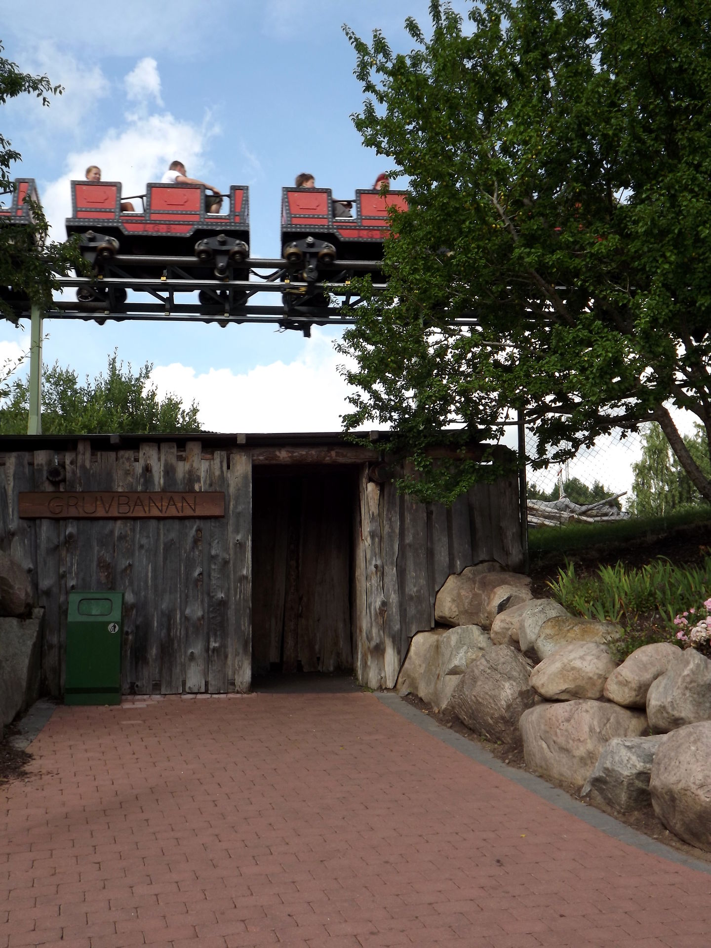 Durch den ursprünglichen Parkeingang, der inzwischen mitten im Park liegt, da drum herum erweitert wurde, geht es zu dem ersten drei Coaster, dem Powered Coaster Gruvbanan.