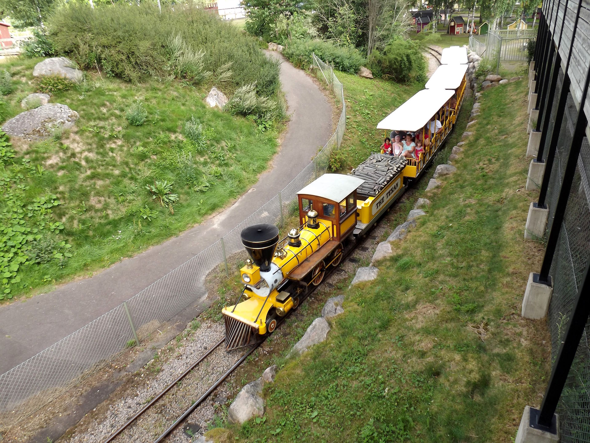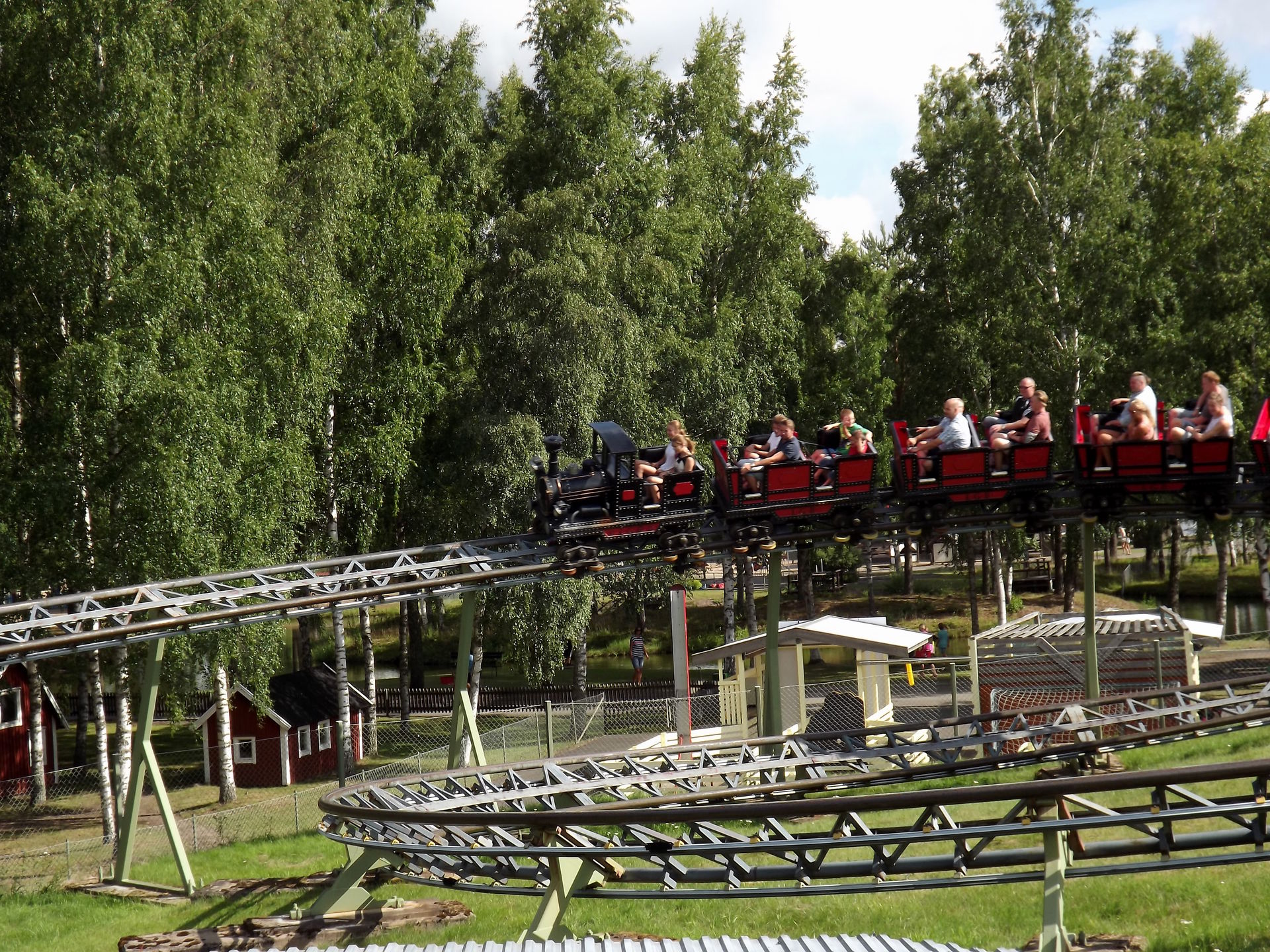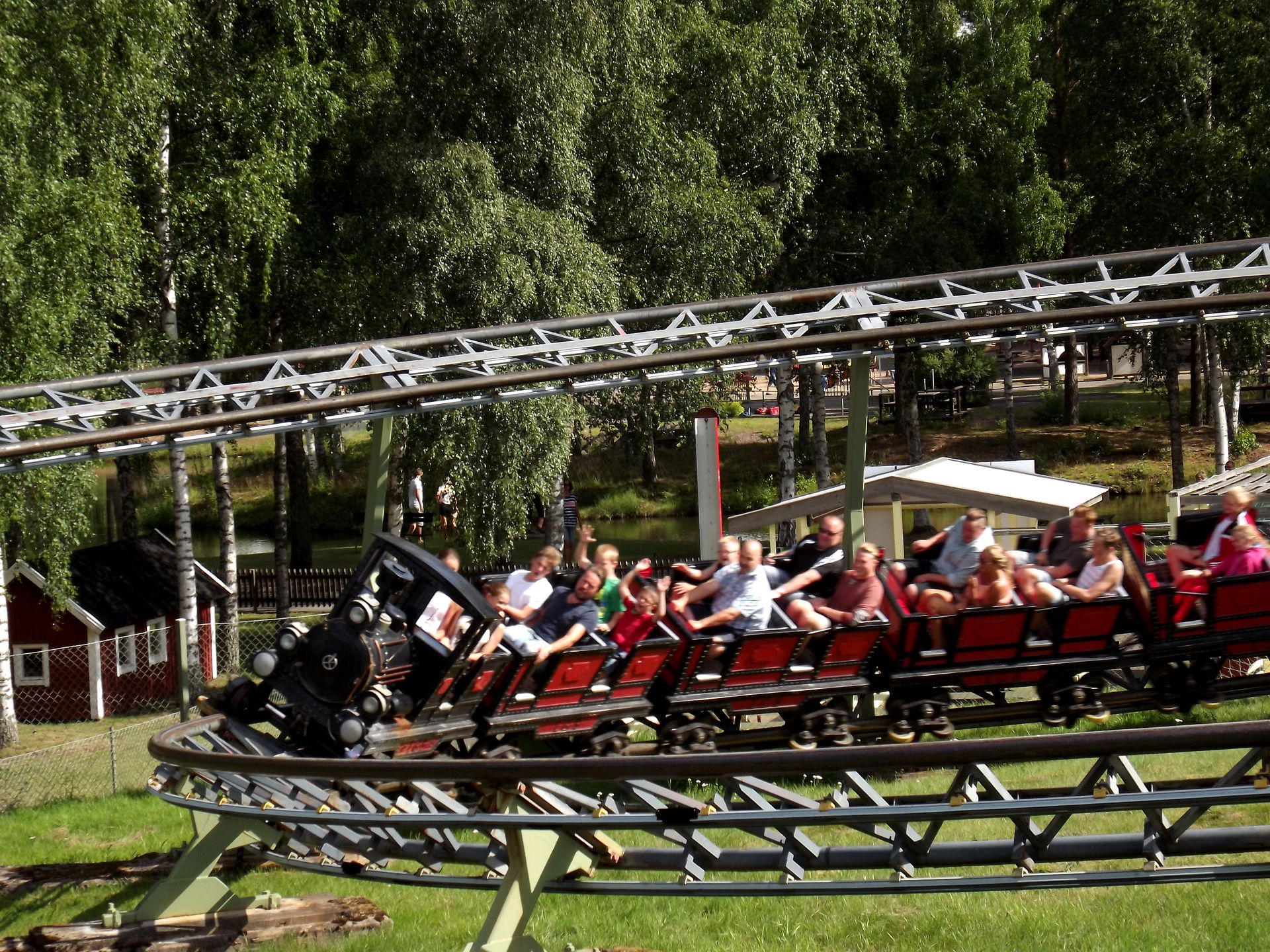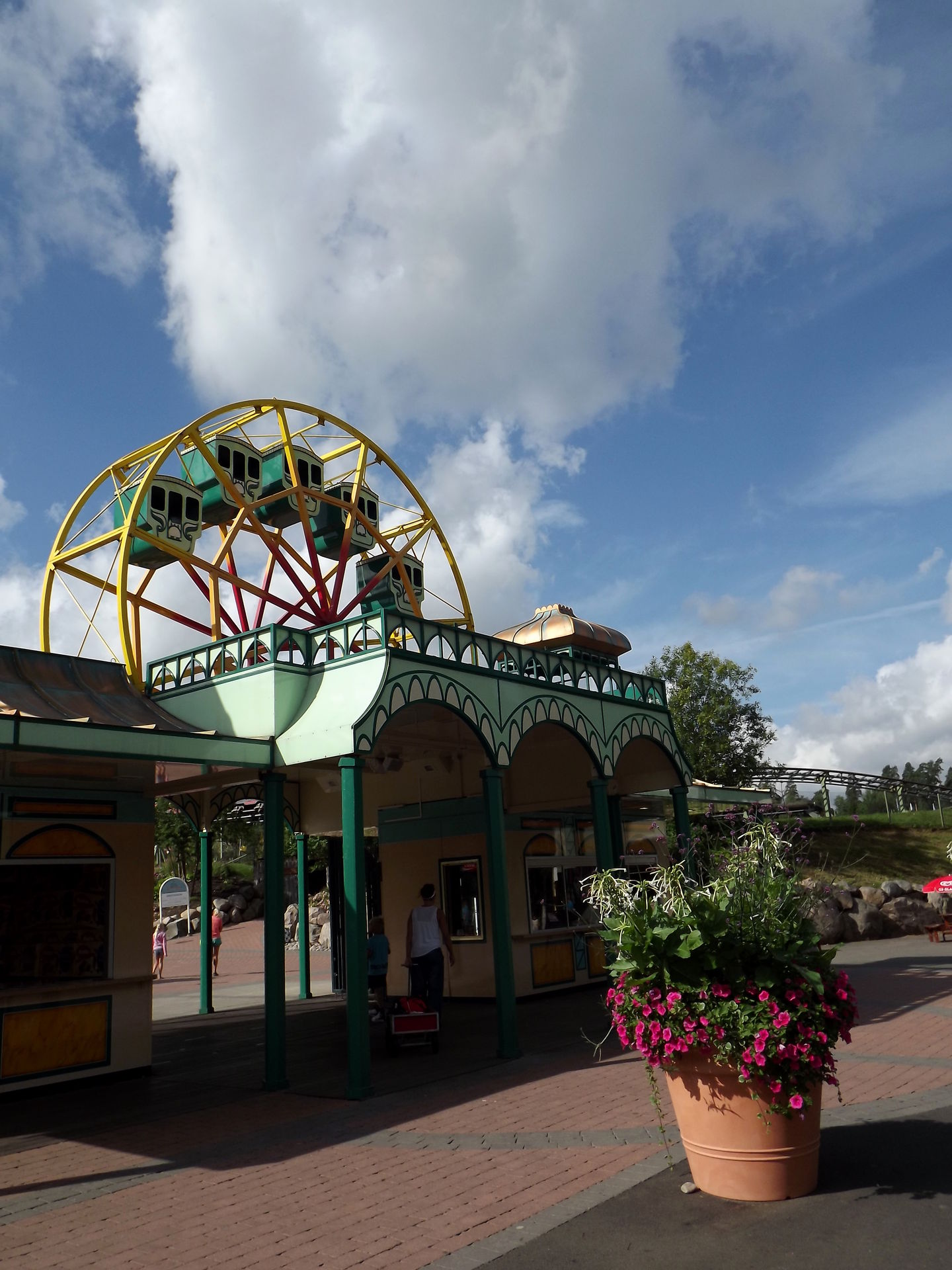 Durch den ursprünglichen Parkeingang, der inzwischen mitten im Park liegt, da drum herum erweitert wurde, geht es zu dem ersten drei Coaster, dem Powered Coaster Gruvbanan.