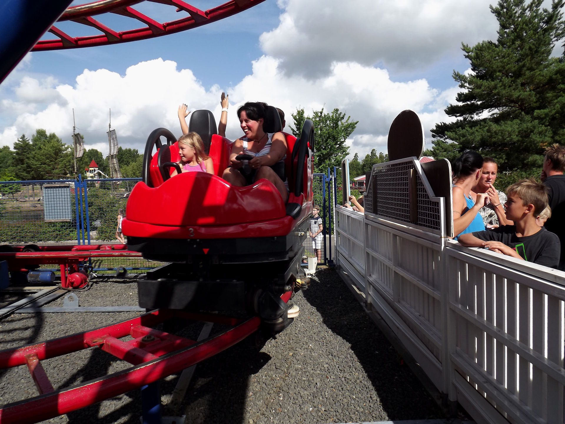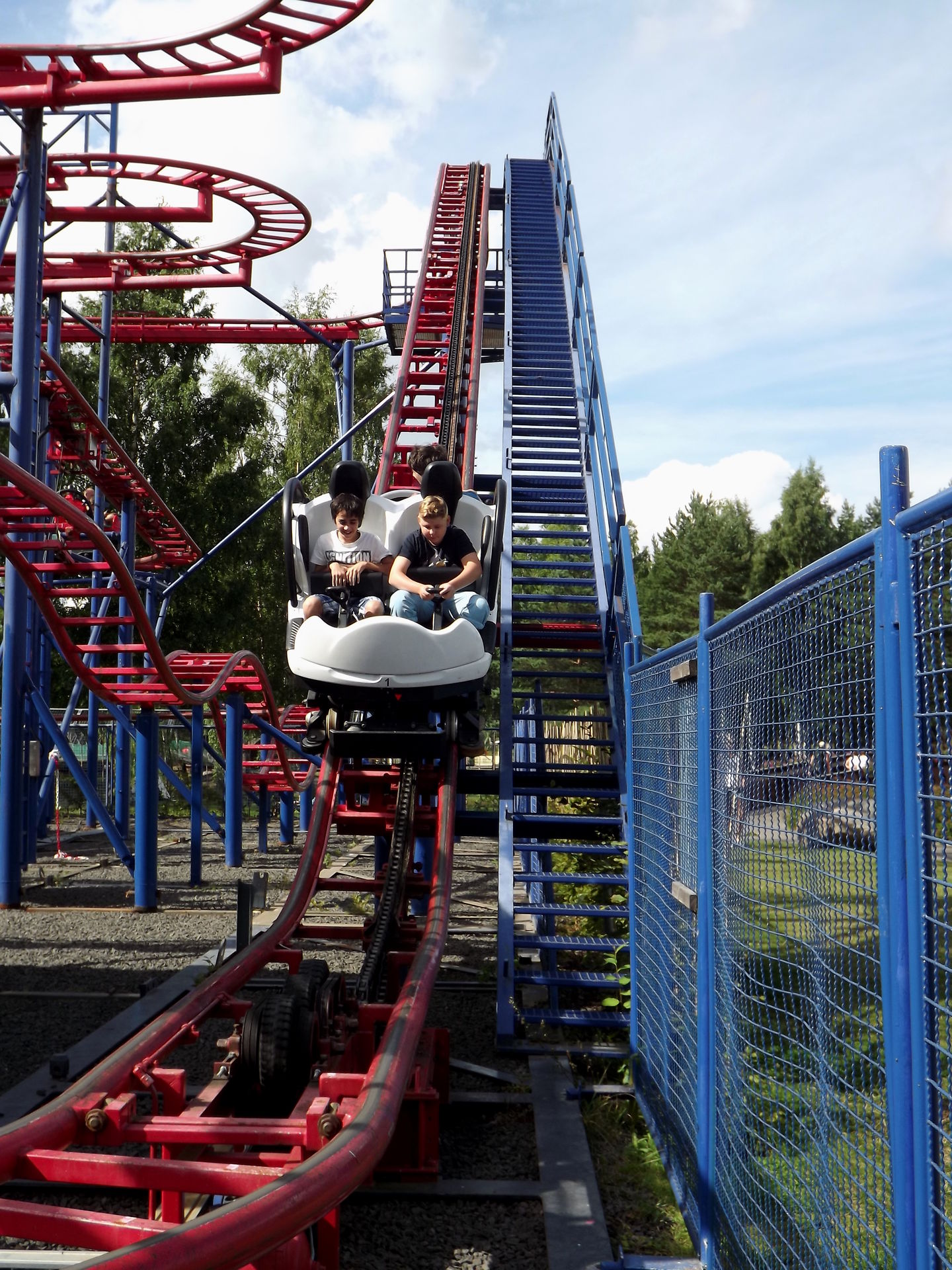 Geräusche hat die schon immer gemacht, das liegt in der Natur der Sache von einer Bahn mit so einer Spannweite wo derartige Hebelkräfte wirken. Waren ja mit dem FKF erst im Juni dort gewesen und hatten auch Riesenspaß. Die Mutprobe liegt darin, die Bahn "freihändig" zu fahren.